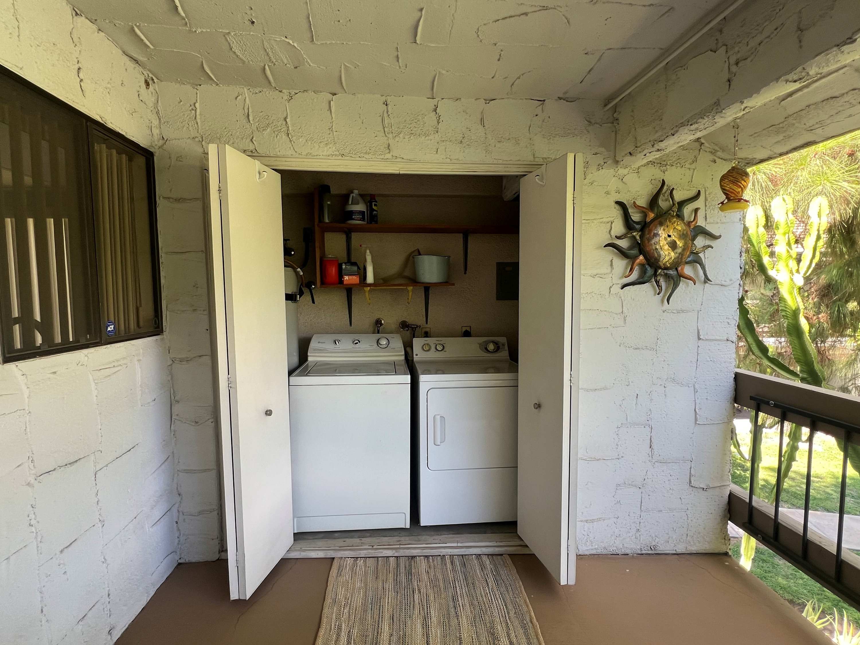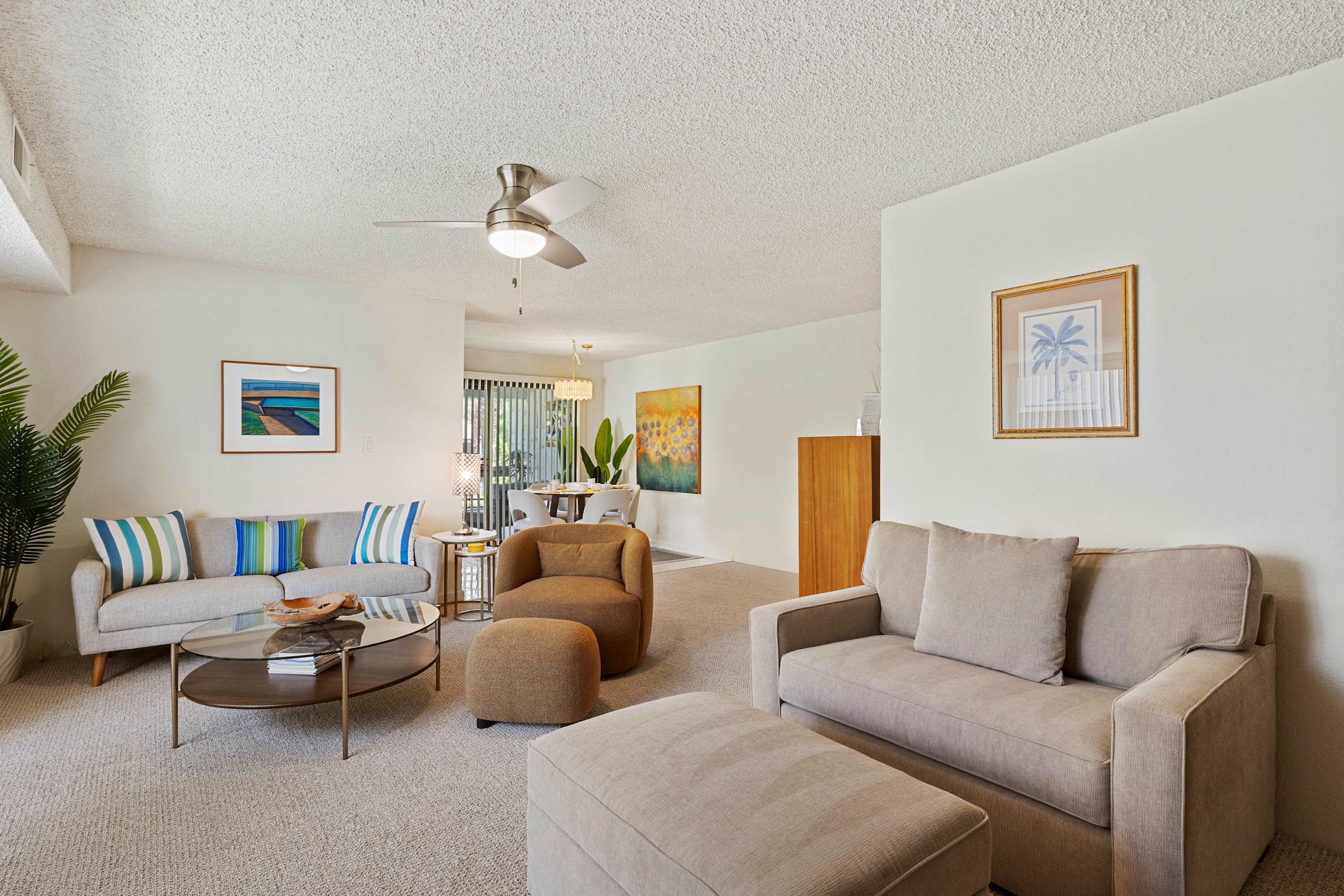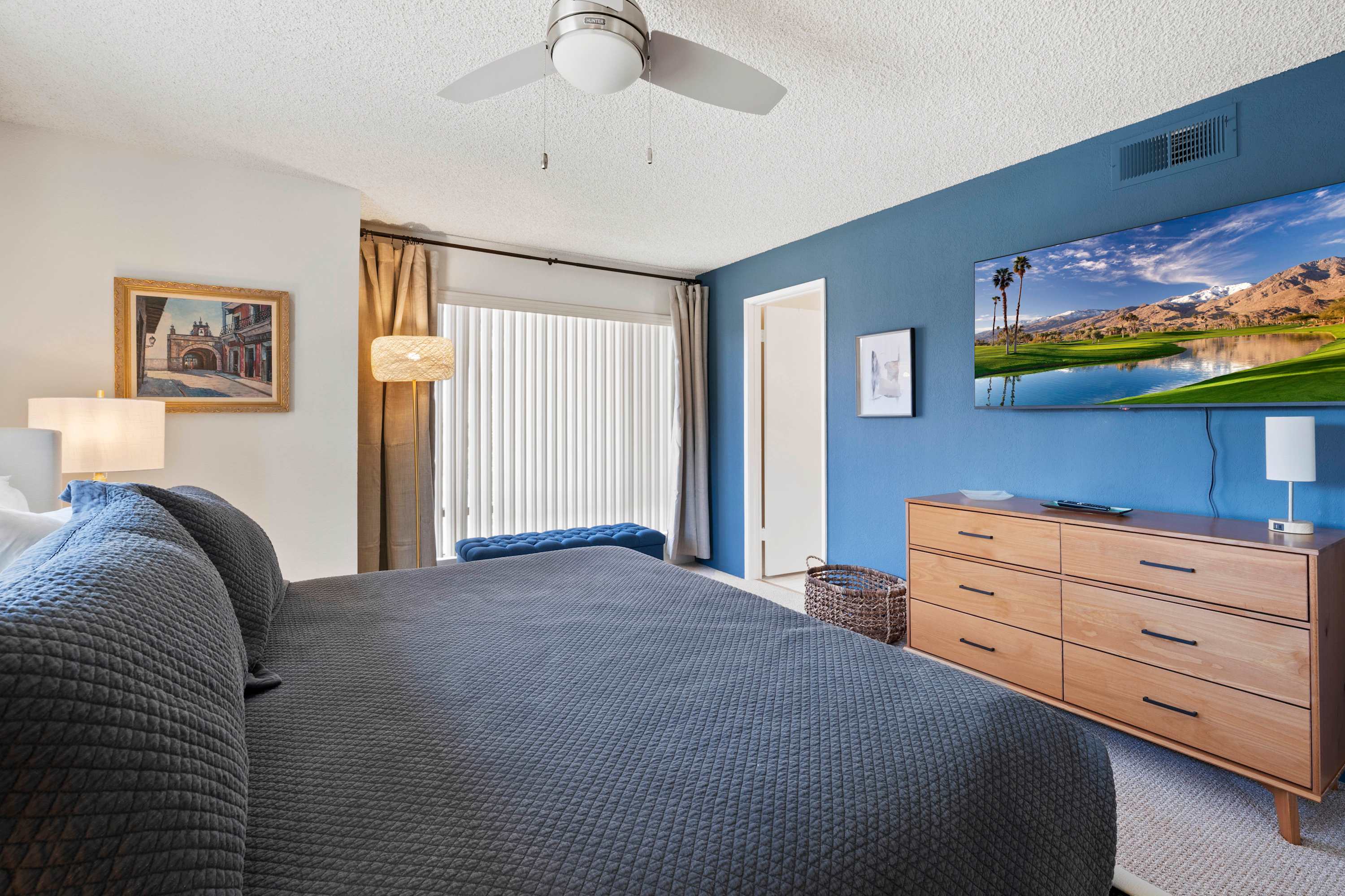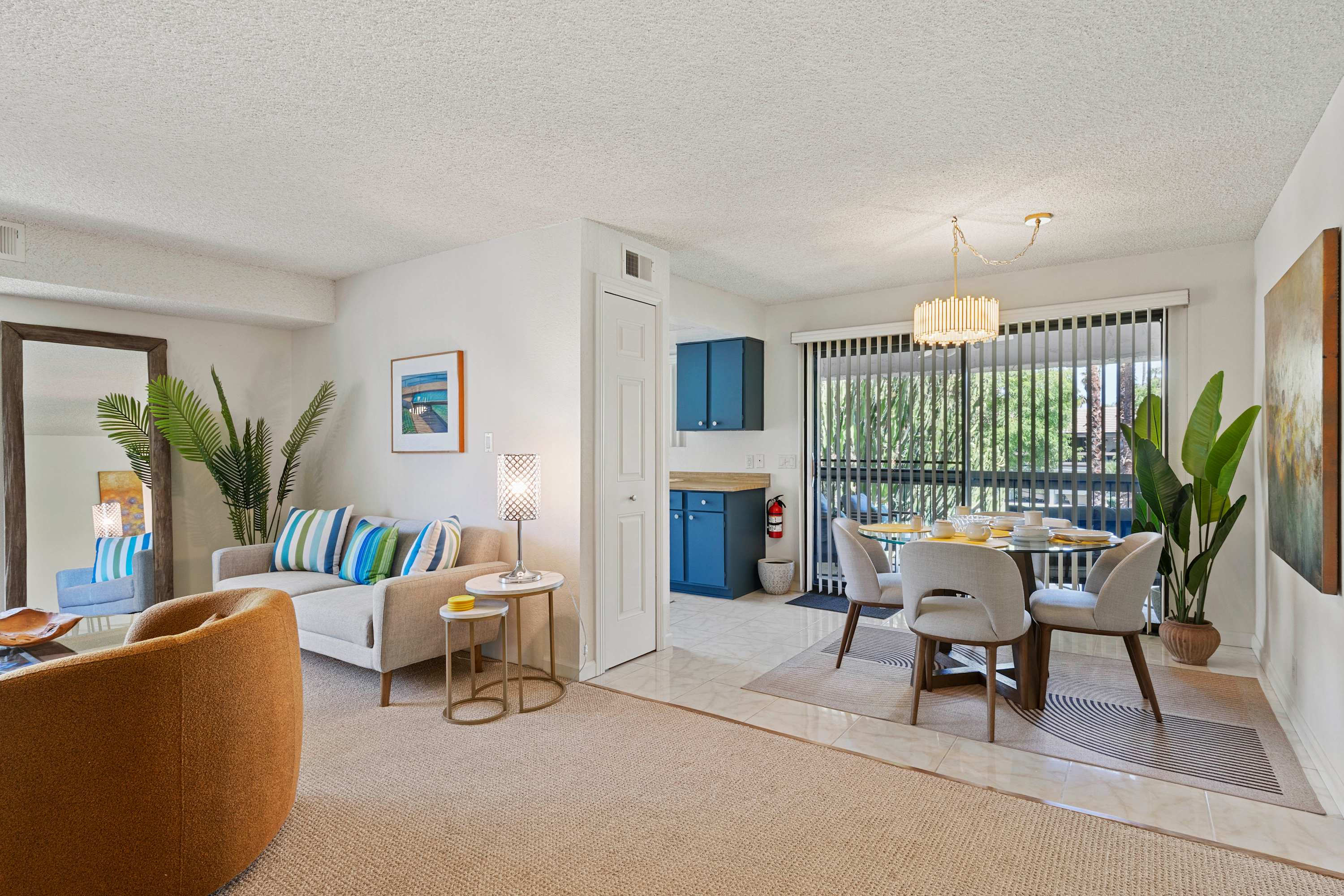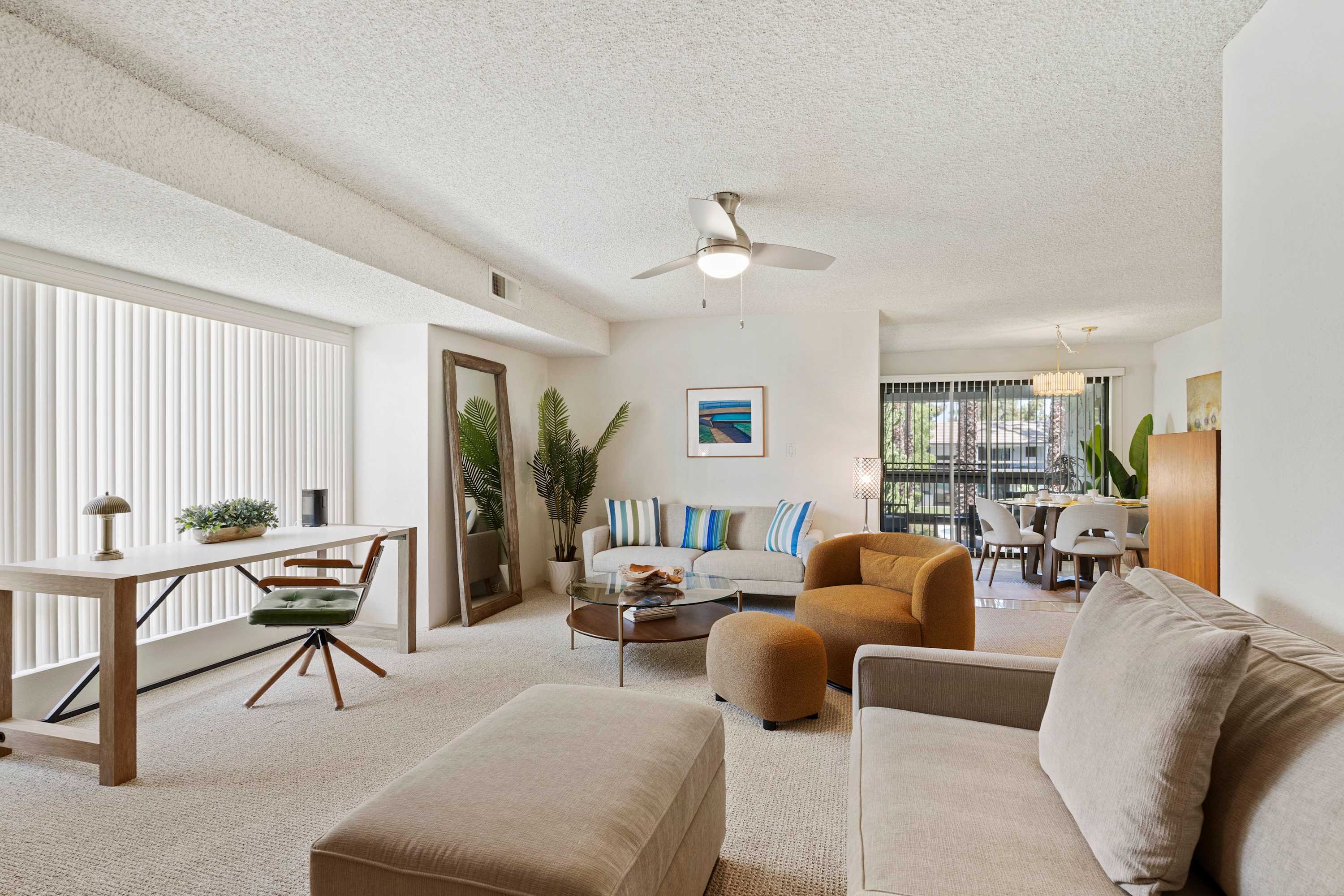 Welcome to your sun-kissed escape at Palm Canyon Villas, a resort-style oasis in Palm Springs designed for relaxation and connection. Whether you're planning a romantic getaway for two or a cozy retreat for three, this upper-level condo offers comfort, charm, & access to top-tier amenities. Spend your mornings lounging by the sparkling pool or unwinding in the spa, then challenge your partner to a game of tennis/pickleball just steps from your door at Sunset Palmar.