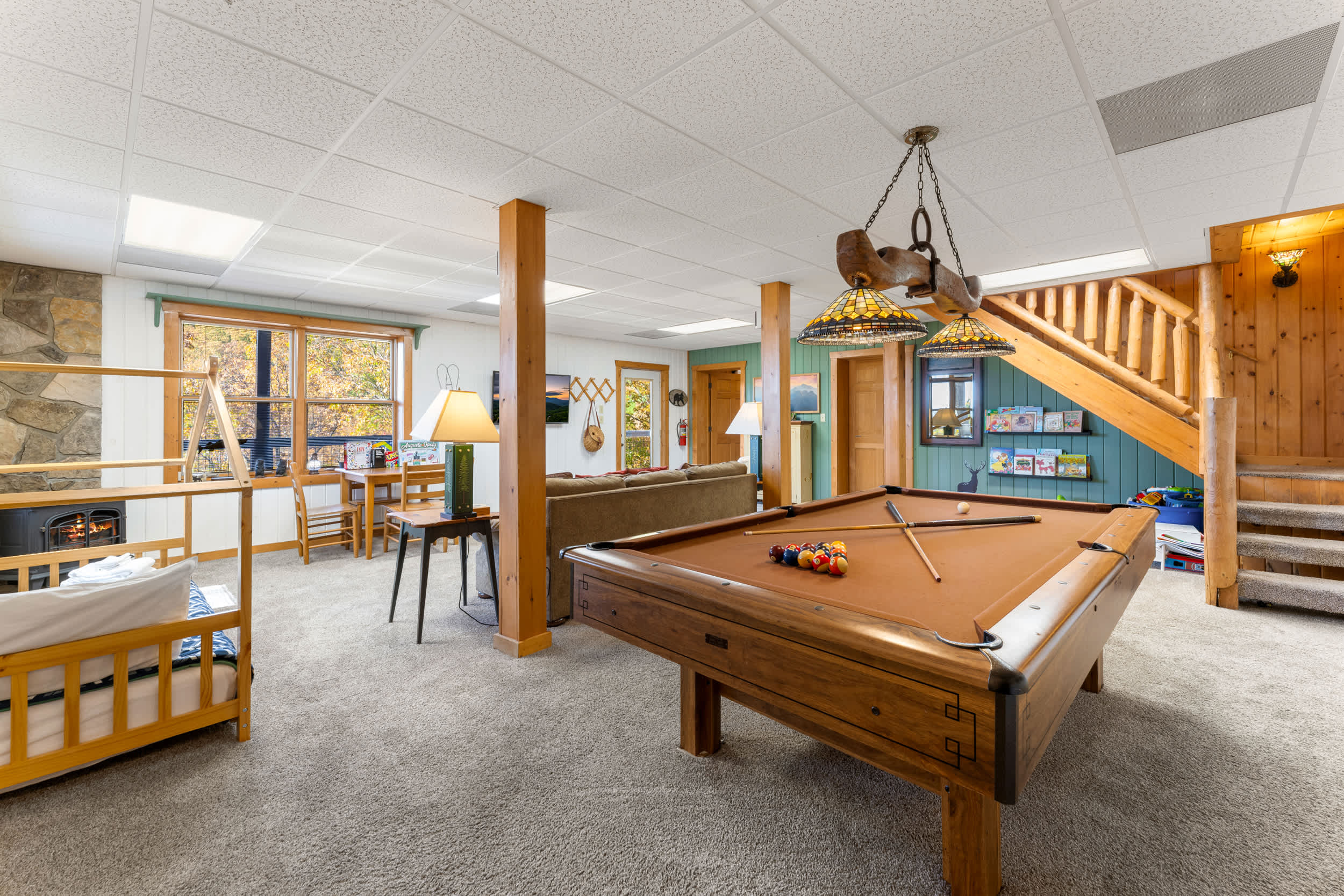 Settle into a relaxed, family-friendly home base with room for groups up to 11 across 2 bedrooms, flexible sleeping spaces, and 3 full bathrooms. The main living areas are designed for downtime—gather in the lounge with a Smart TV, rack up a game of pool in the basement game room, or kick back in the loft.