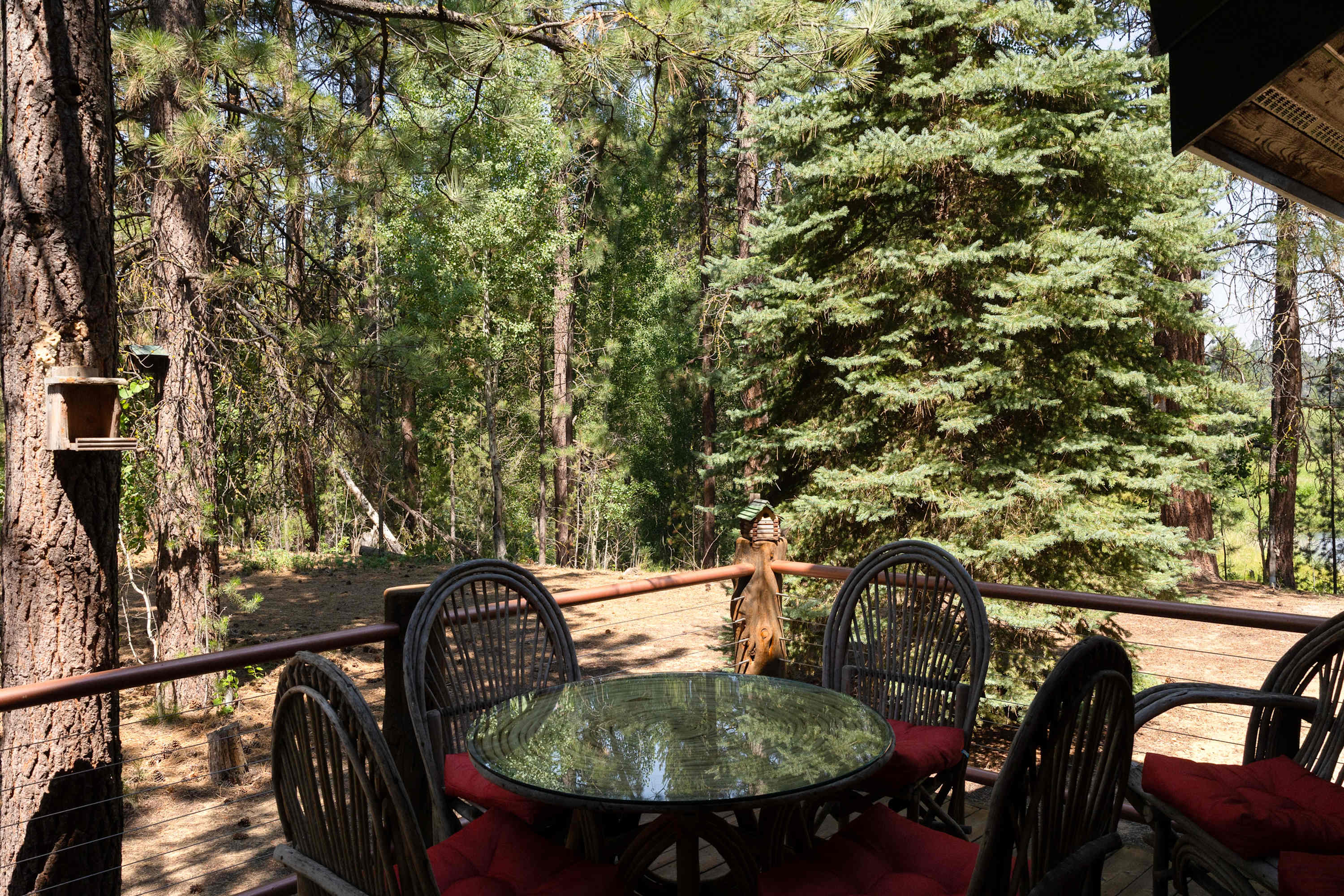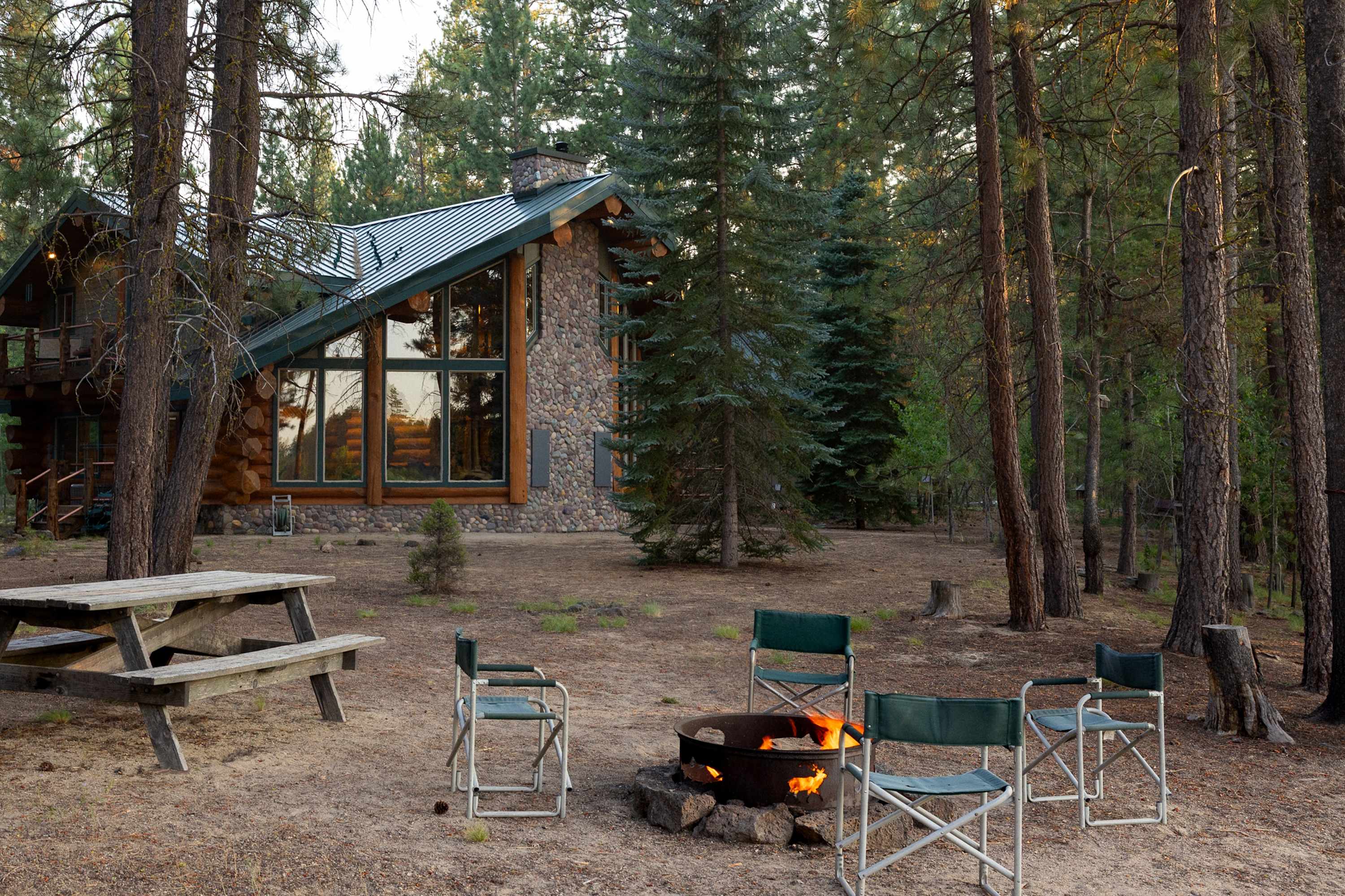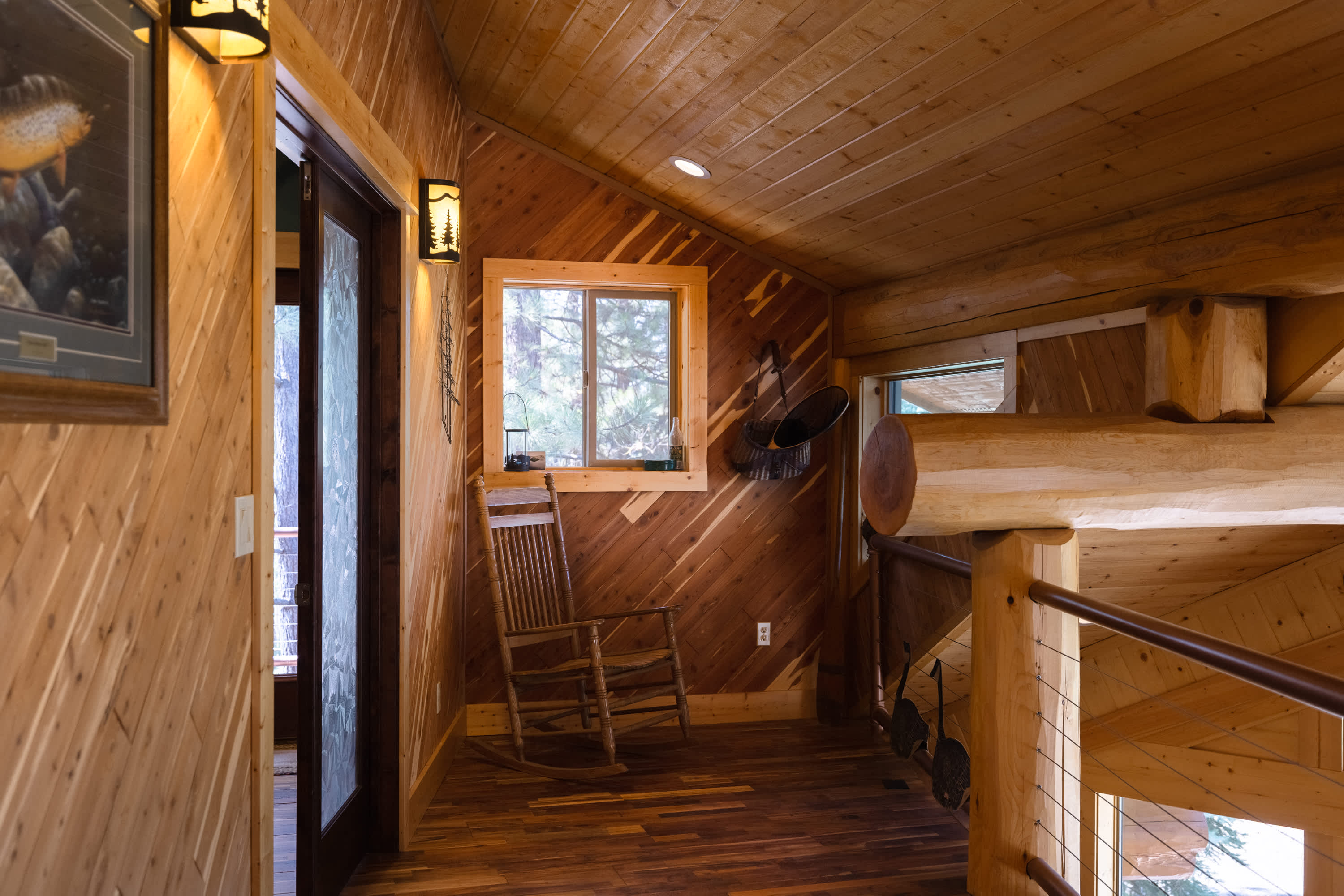 Little Deschutes Wildlife Lodge is a breathtaking sight! Take in the splendor, the intricate details, and the hand picked logs! Your experience here will be truly unique. Throughout the custom built cabin, you’ll find quiet nooks perfect for reading or sipping a glass of wine, and upstairs, both balconies offer peaceful spots to take in the fresh air and natural beauty. Downstairs, the deck provides outdoor dining for four and a grill for barbecues. Just beyond, a firepit and picnic table sit beside the river—an unforgettable spot for evening s’mores or morning coffee with mountain views. When the sun sets behind the mountains, you'll be treated to star-filled skies unlike anywhere else. Whether you're seeking connection, solitude, or scenic exploration, this cabin is the perfect place to recharge and reconnect with nature.