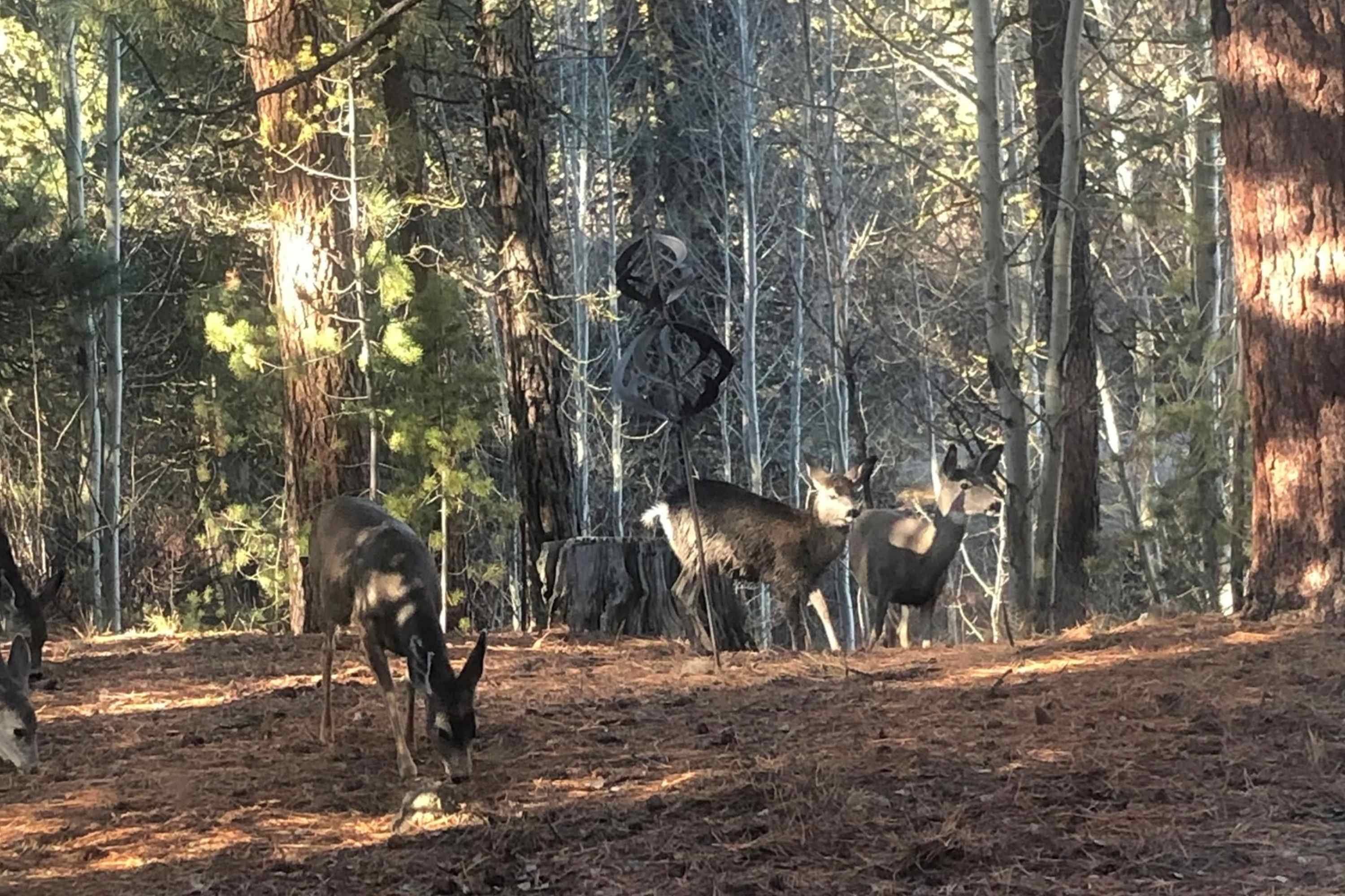 Wild turkey, deer, squirrels, chipmunks, beavers, birds of all kinds and more frequently visit. There is no shooting or hunting on the property.
