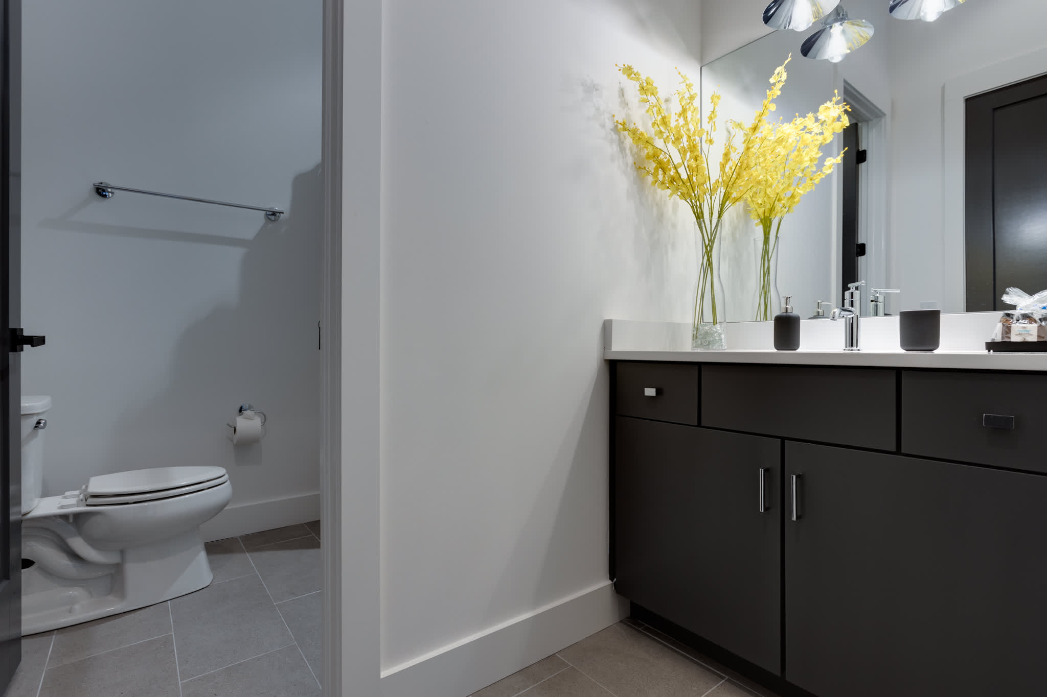 This home also includes an additional half bathroom and a full bathroom with a single vanity and a shower/tub combo.