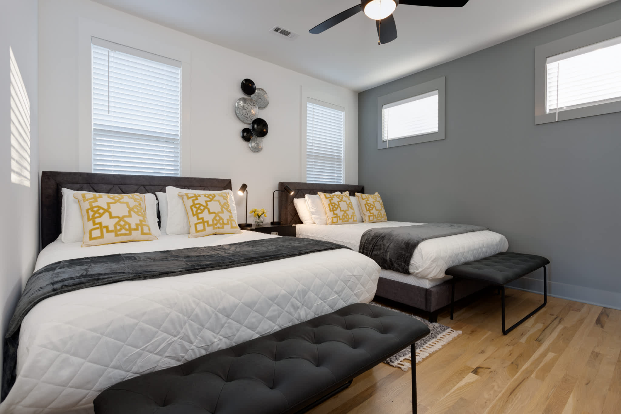 Experience the best of Nashville in this spacious 3-story townhome, perfect for large families or groups. With 4 stylish bedrooms, 3.5 bathrooms, and a bonus area featuring two queen beds and a lounge, this home comfortably sleeps up to 12 guests. Enjoy an open-concept living area, a fully equipped kitchen, private garage, laundry, and a third-floor balcony ideal for relaxing after a day exploring the city. Conveniently located near the heart of downtown, music venues, and local hot spots.