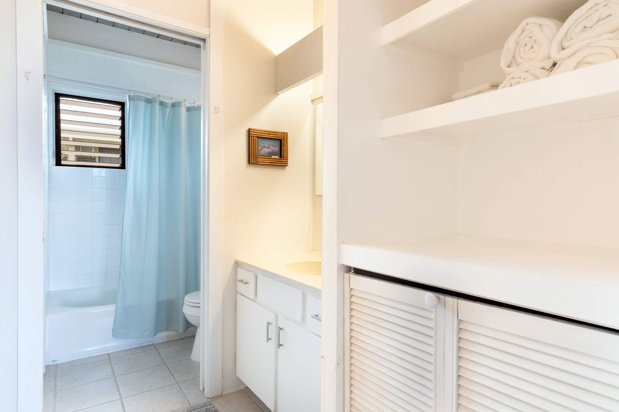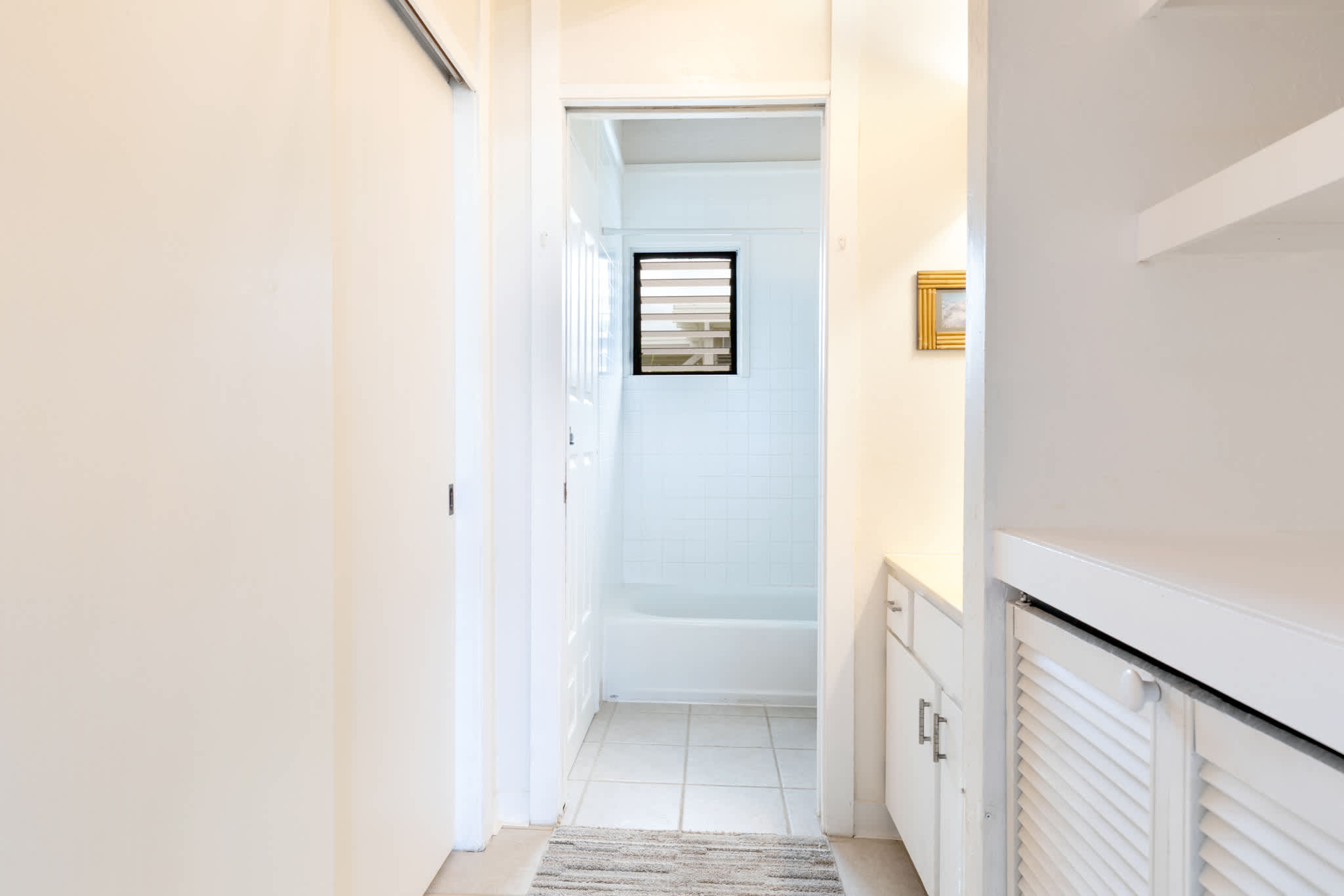 This home also includes a bathroom with a single vanity and a shower/tub combo.