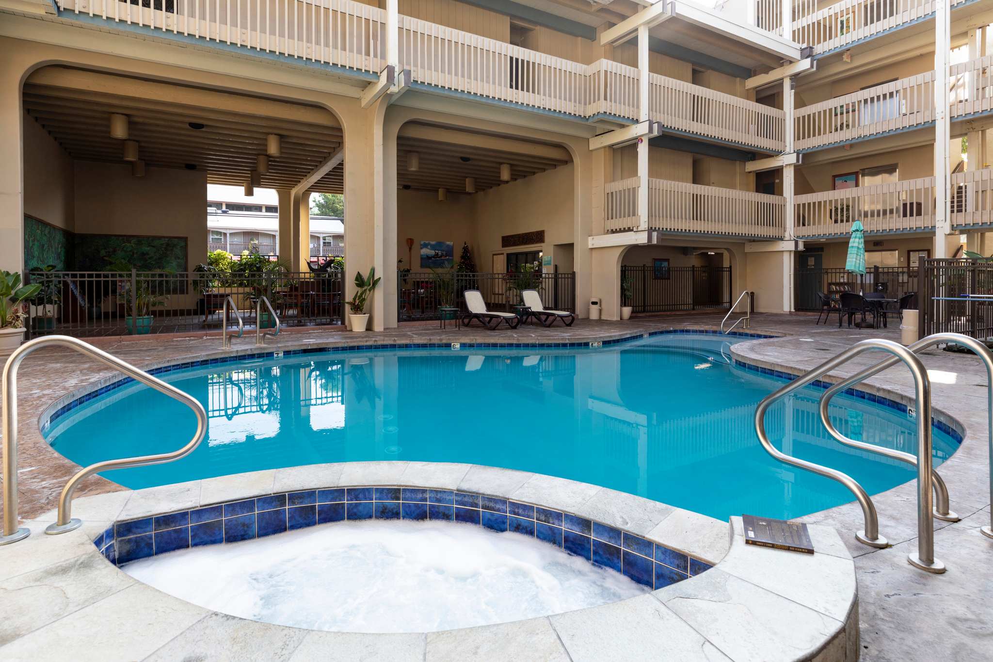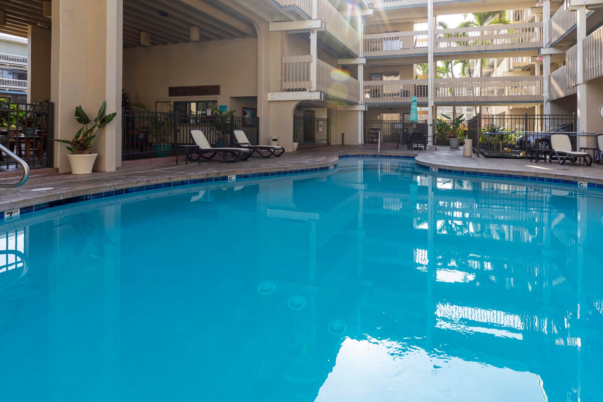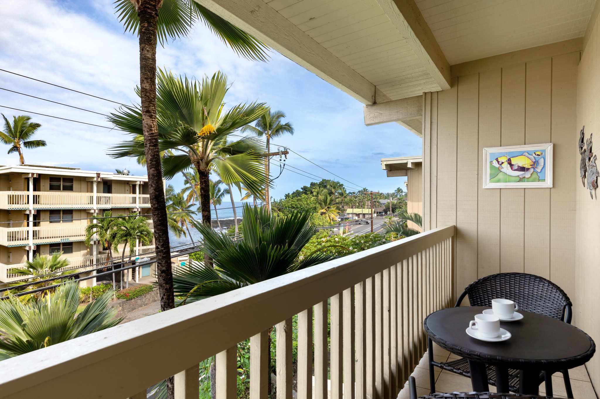 . You’re just steps from a picturesque local beach, popular with surfers and perfect for sunset strolls. Kona Bali Kai is a favorite among travelers.