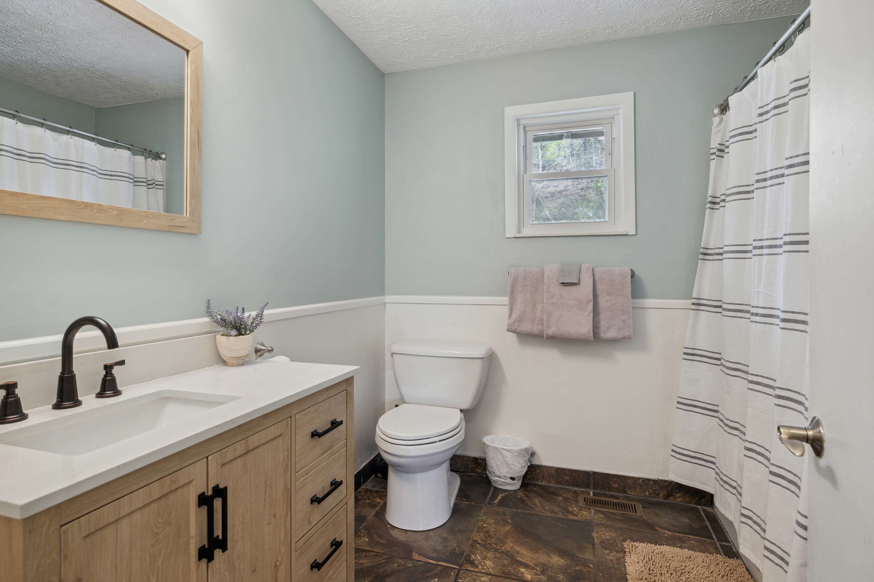 The home also includes an additional full guest bathroom with a single vanity and shower/tub combo.