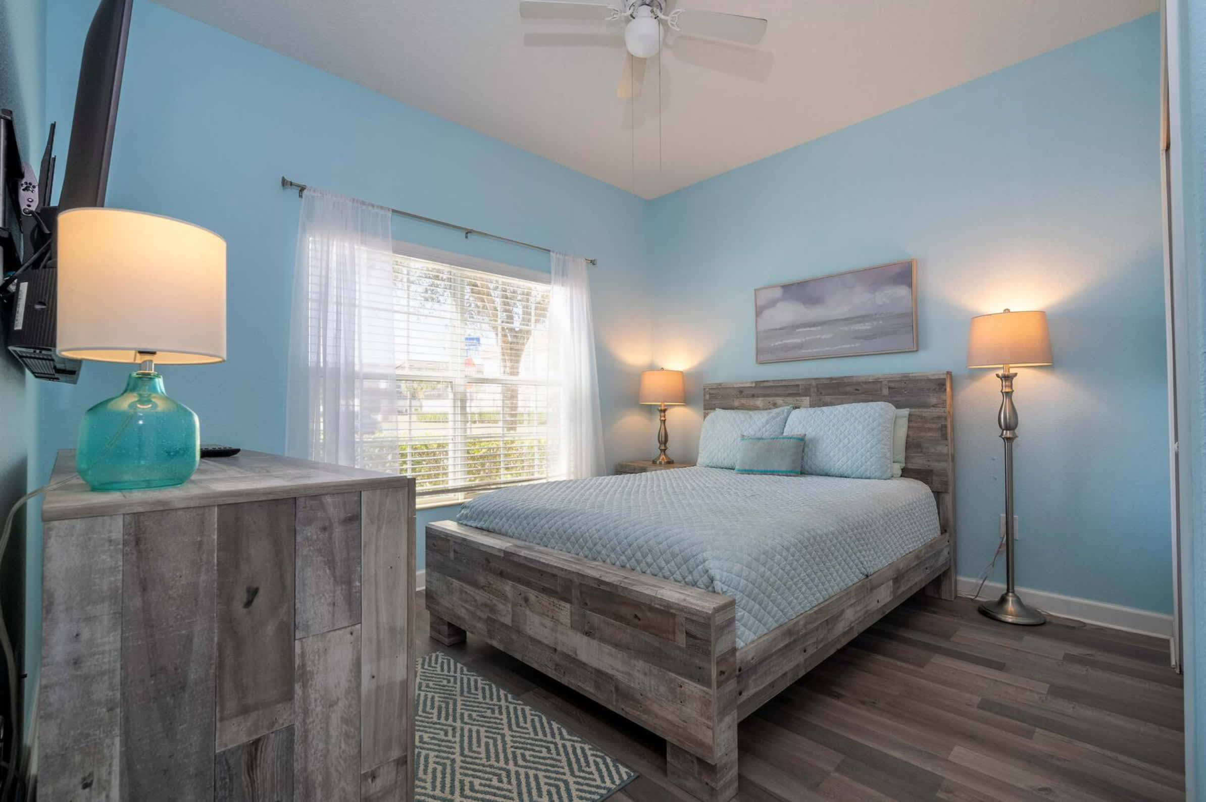 Bedroom #2 includes a queen size bed and a smart TV.