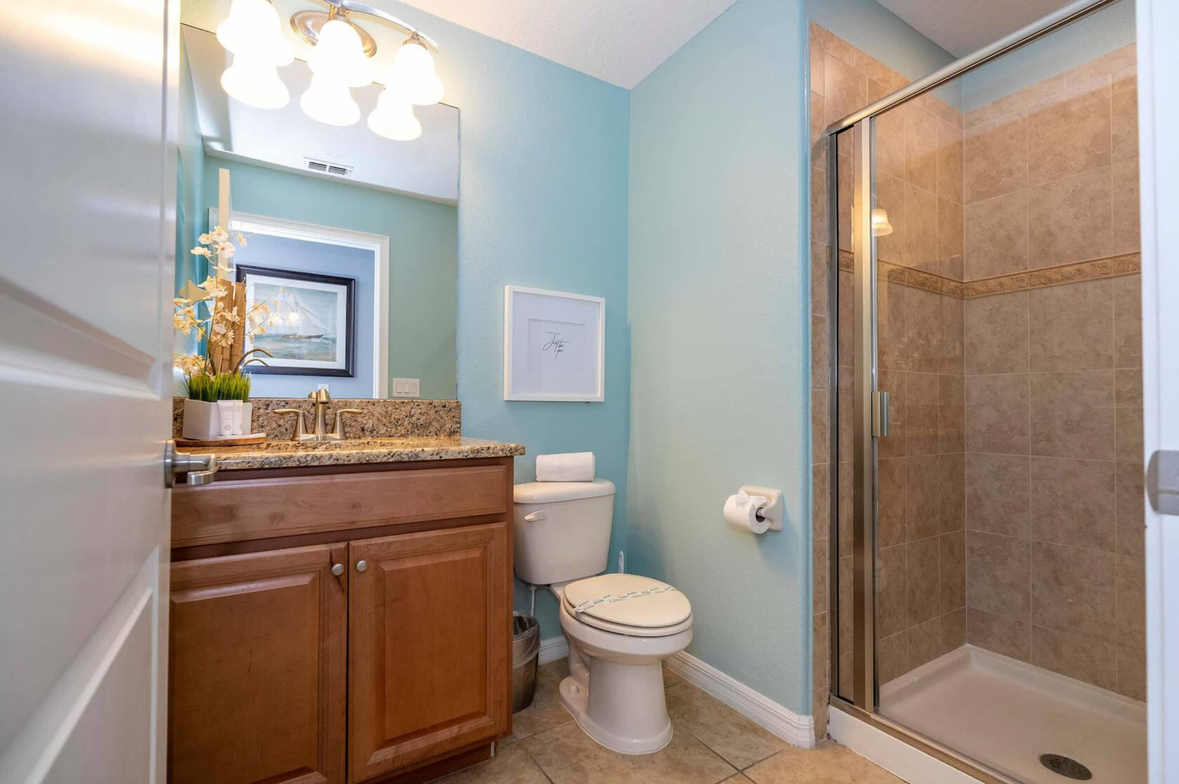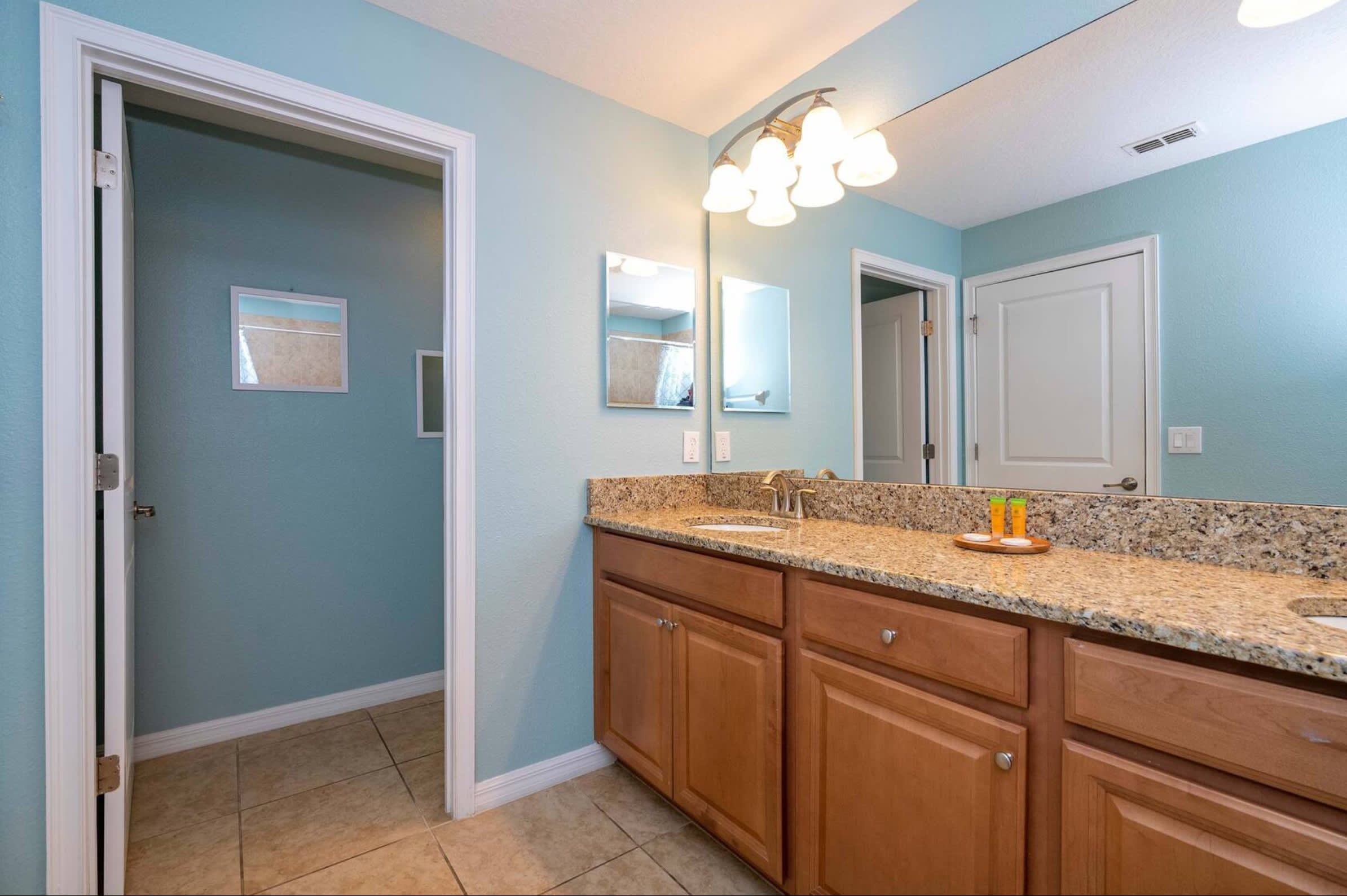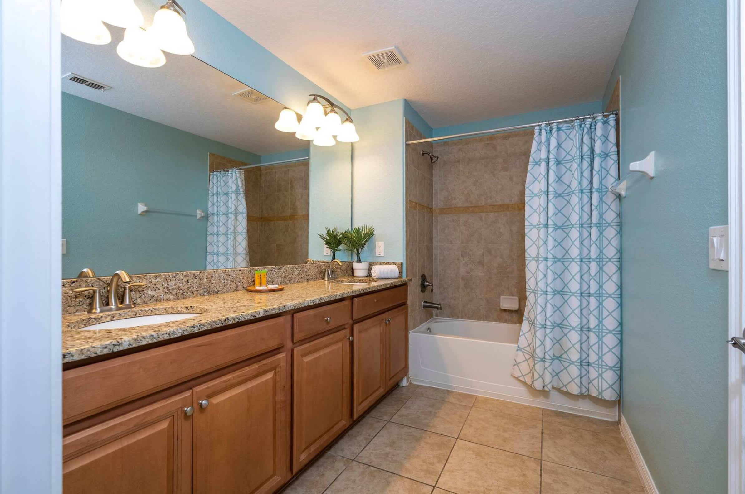 This home also includes 2 additional full guest bathrooms, one with a dual vanity and a walk-in shower, and another with a single vanity and a walk-in shower.