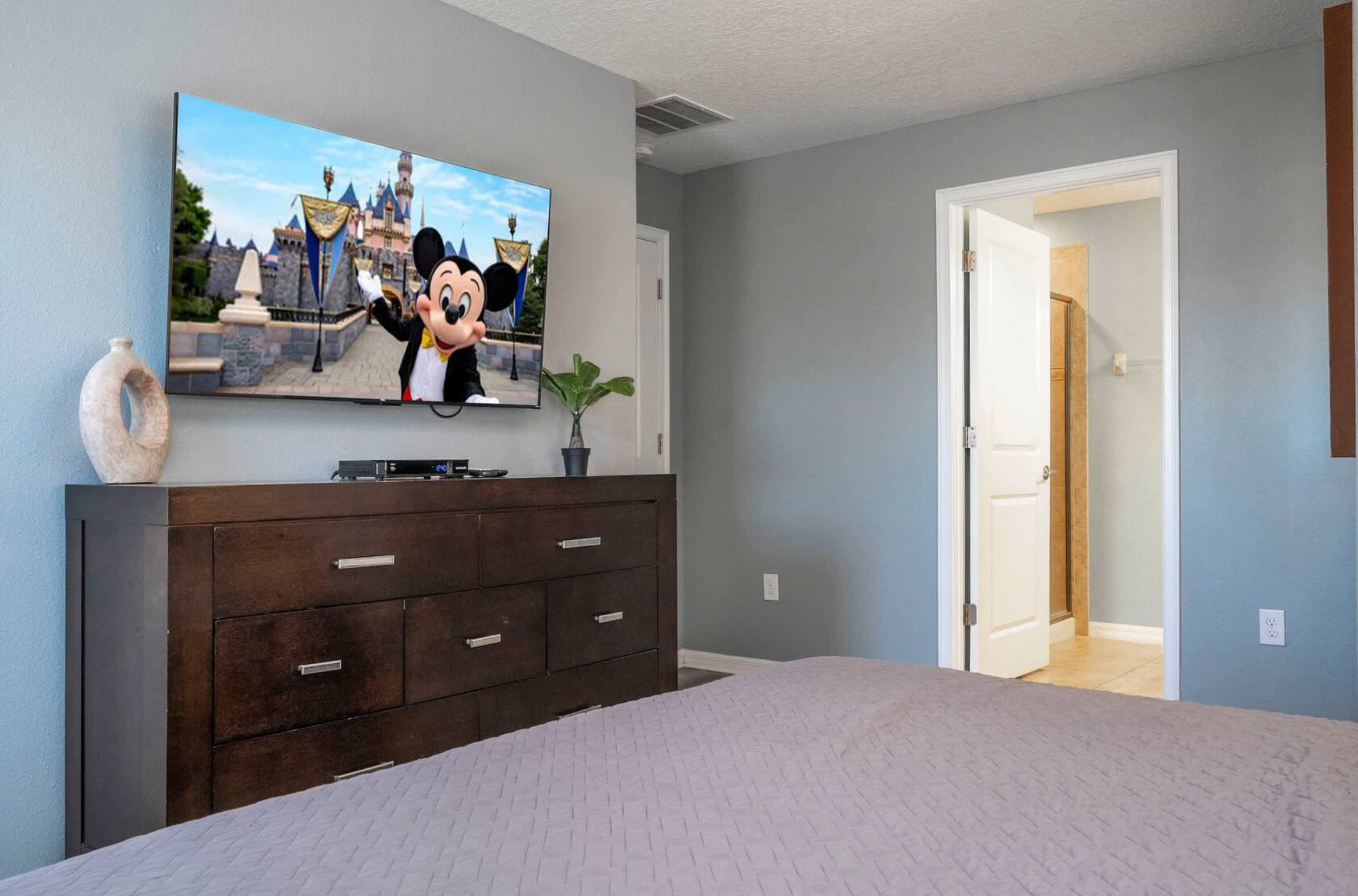 Bedroom #4 is Mickey-themed and includes 2 twin size beds and a smart TV.