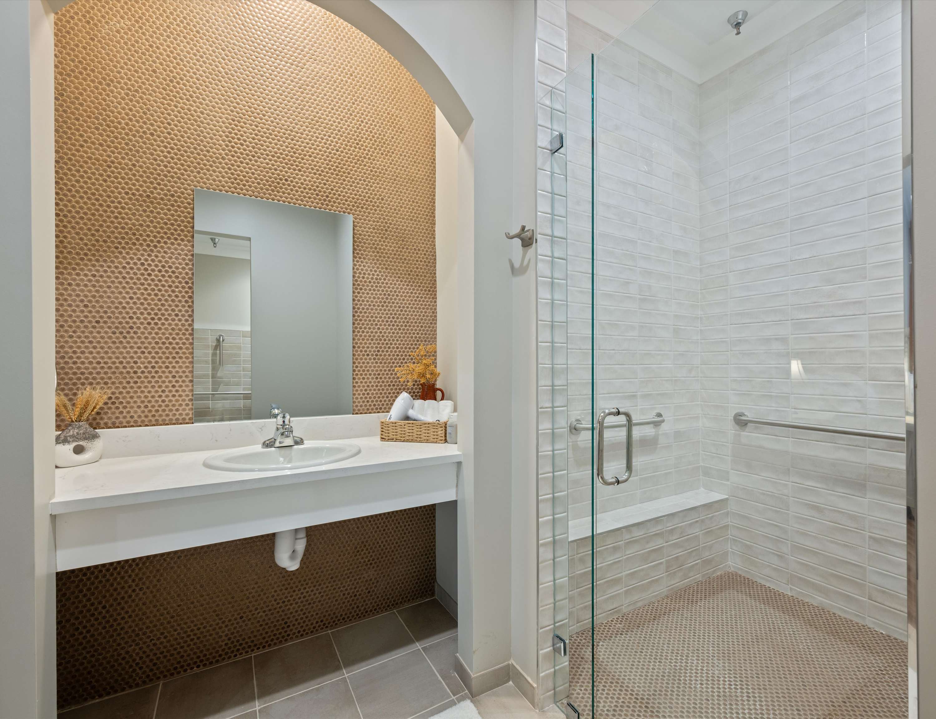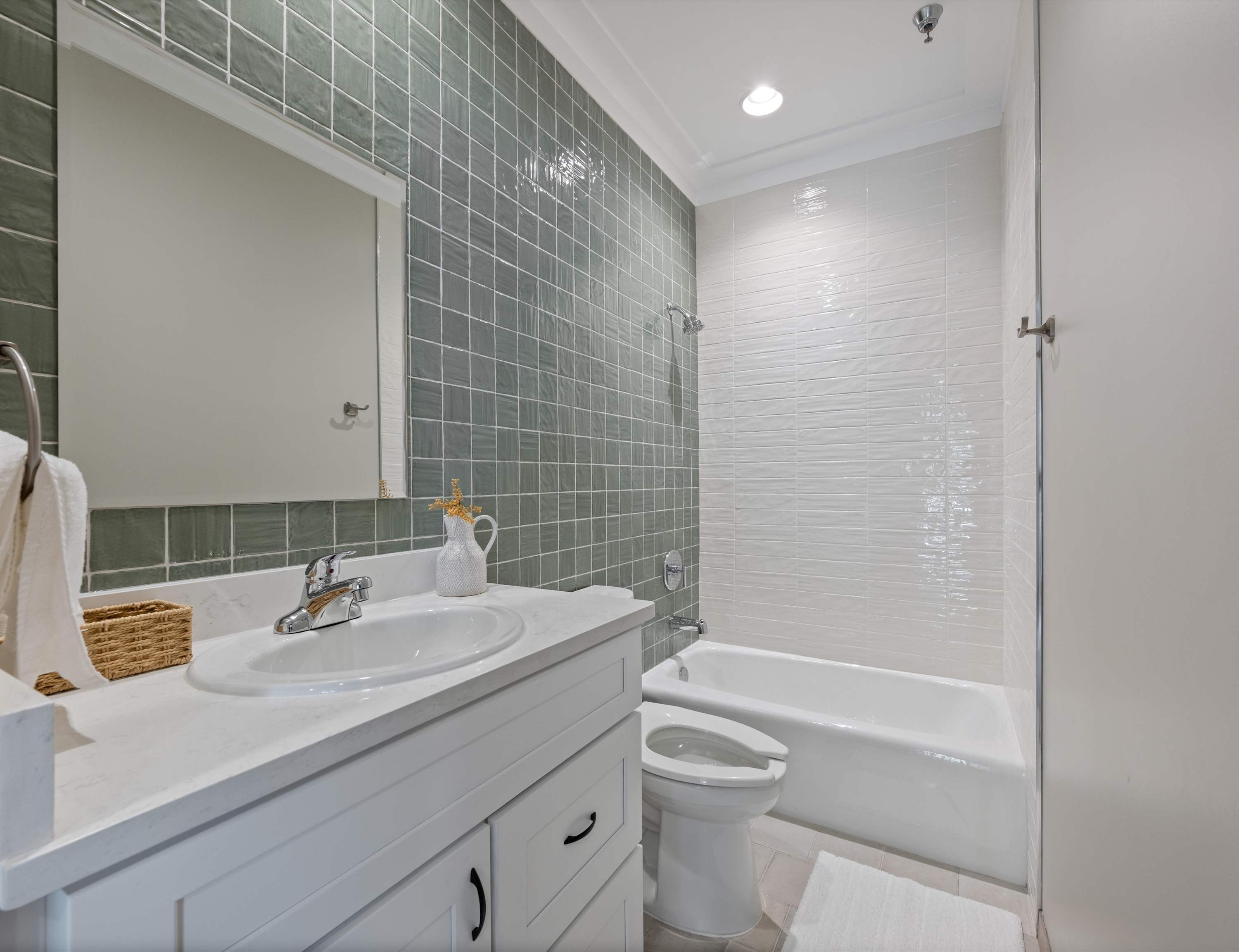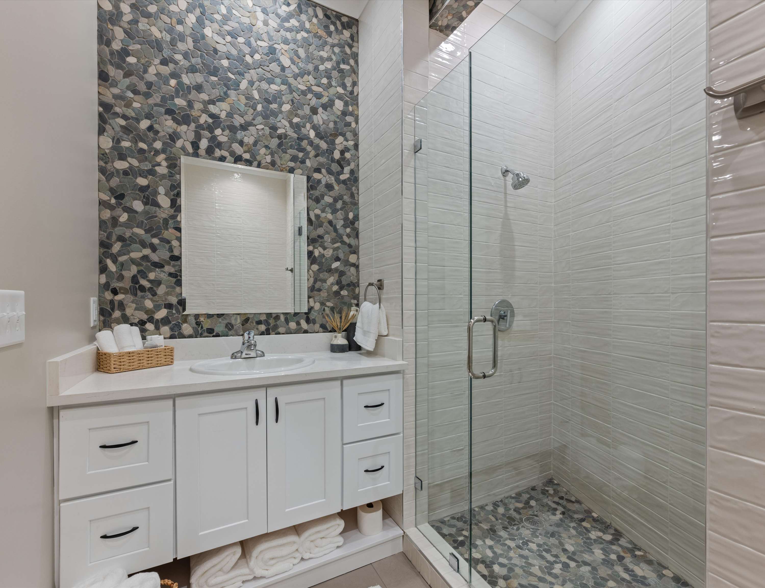 The home also includes a full guest bathroom with a single vanity and a shower/tub combo.