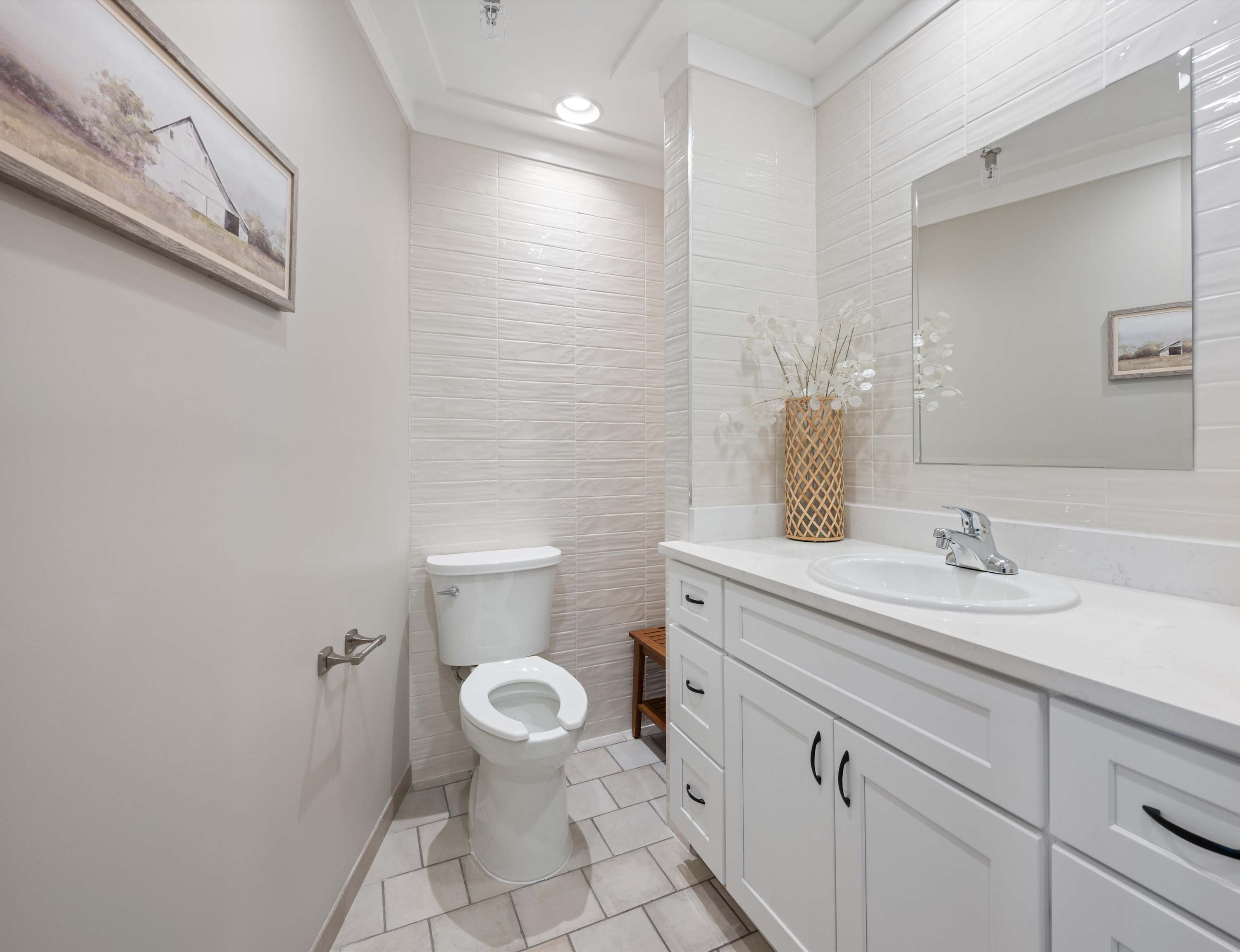 This home also includes a half bathroom and an additional full bathroom with a dual vanity and a walk-in shower.