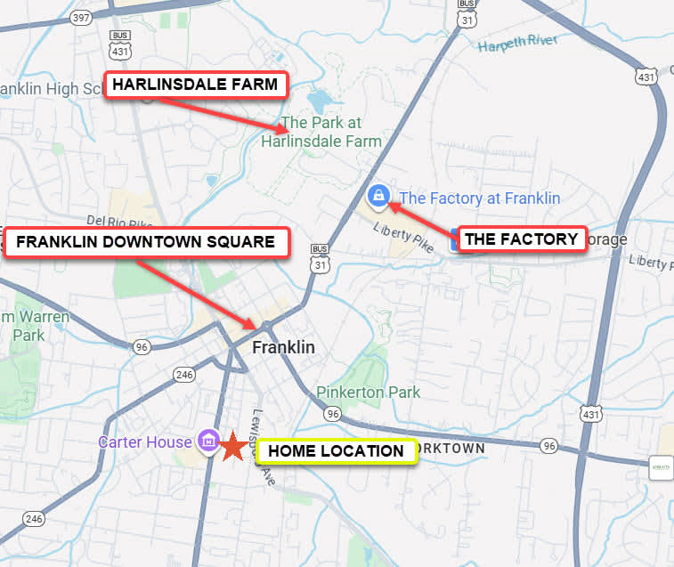 Franklin is a charming town located just south of Nashville, a great place to visit if you're looking for a relaxing weekend getaway or an exciting family vacation. Franklin is known for its beautiful scenery, historic sites, and friendly people. Visit historic sites like the Carter House, the Carnton Plantation, and the Lotz House, or enjoy the outdoors by hiking, biking, fishing, or taking a stroll through one of the many parks. Try out some of the great food that Franklin has to offer, from Southern cuisine to international fare, and shop at the many boutiques, antique stores, and art galleries. If you're looking for a great place to visit, Franklin is the perfect choice!