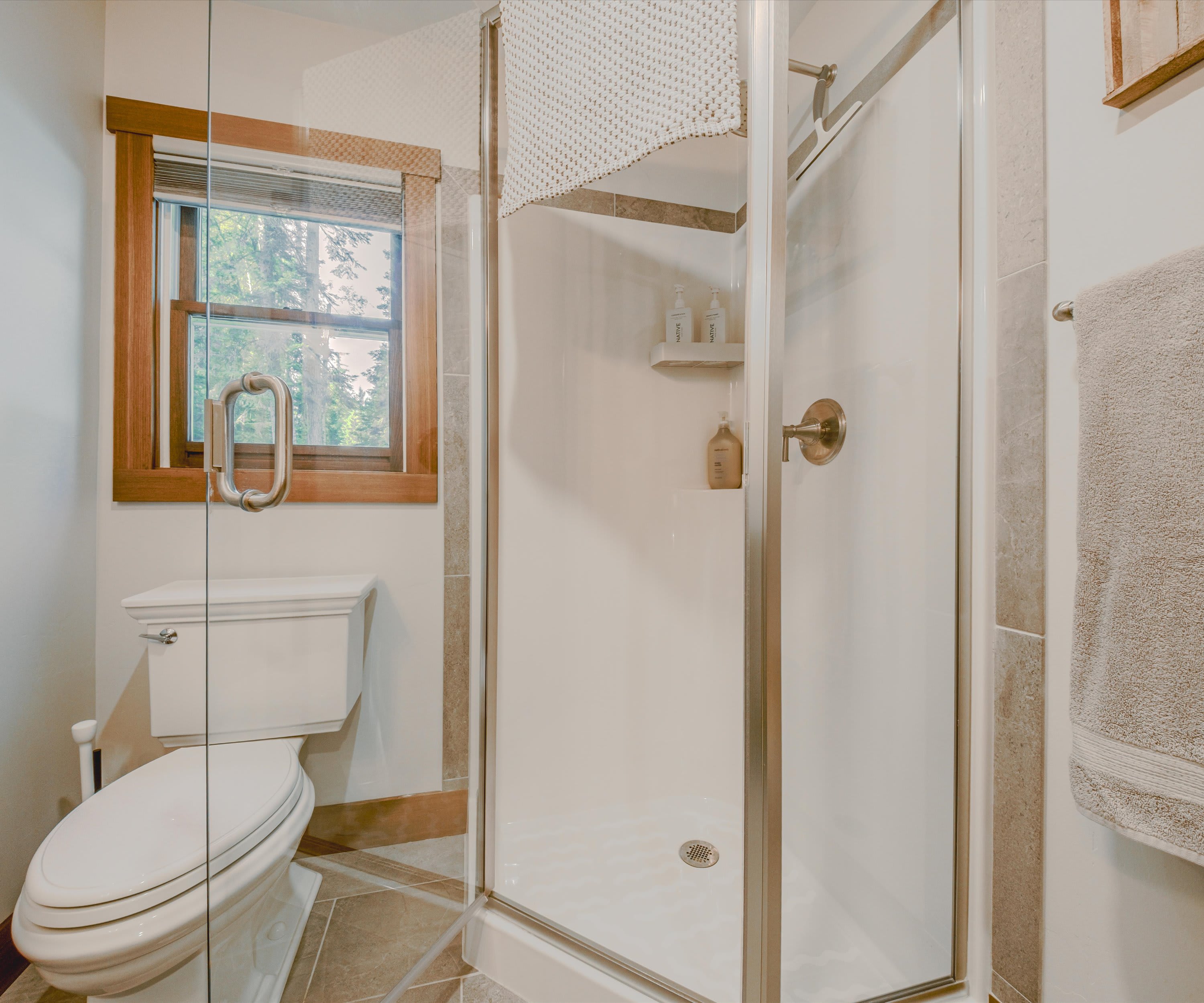 This home also includes an additional full bathroom with a single vanity and a walk-in shower.