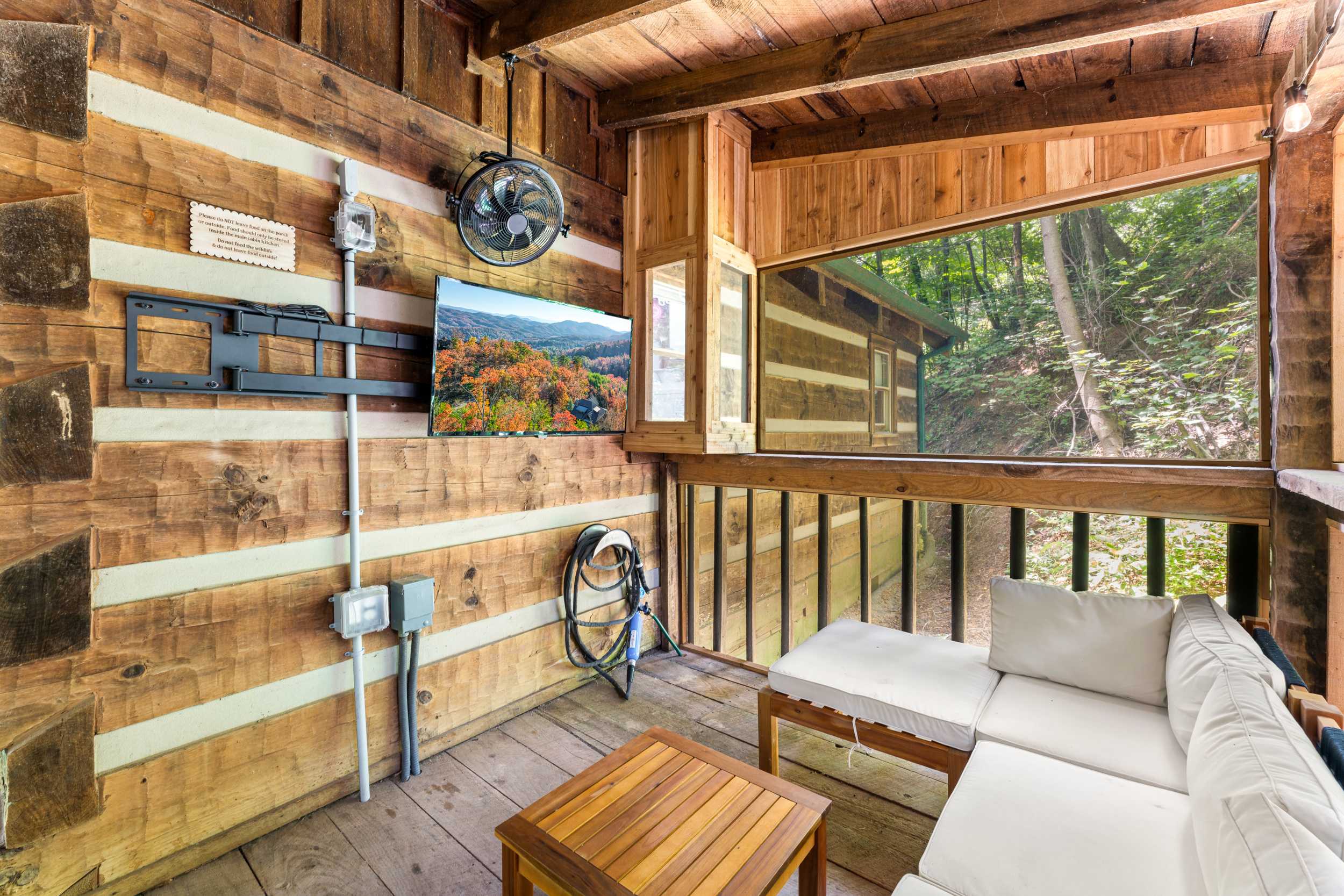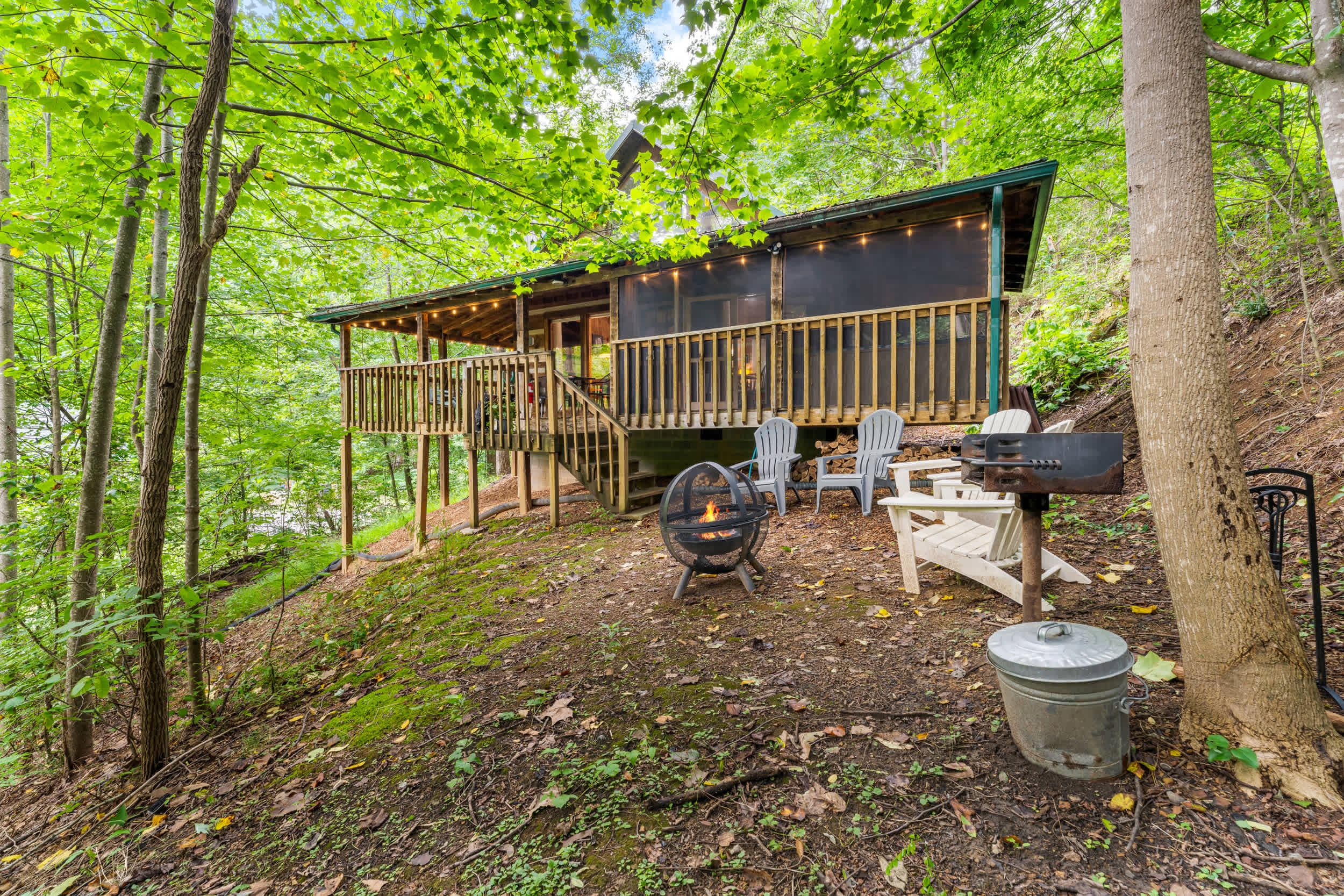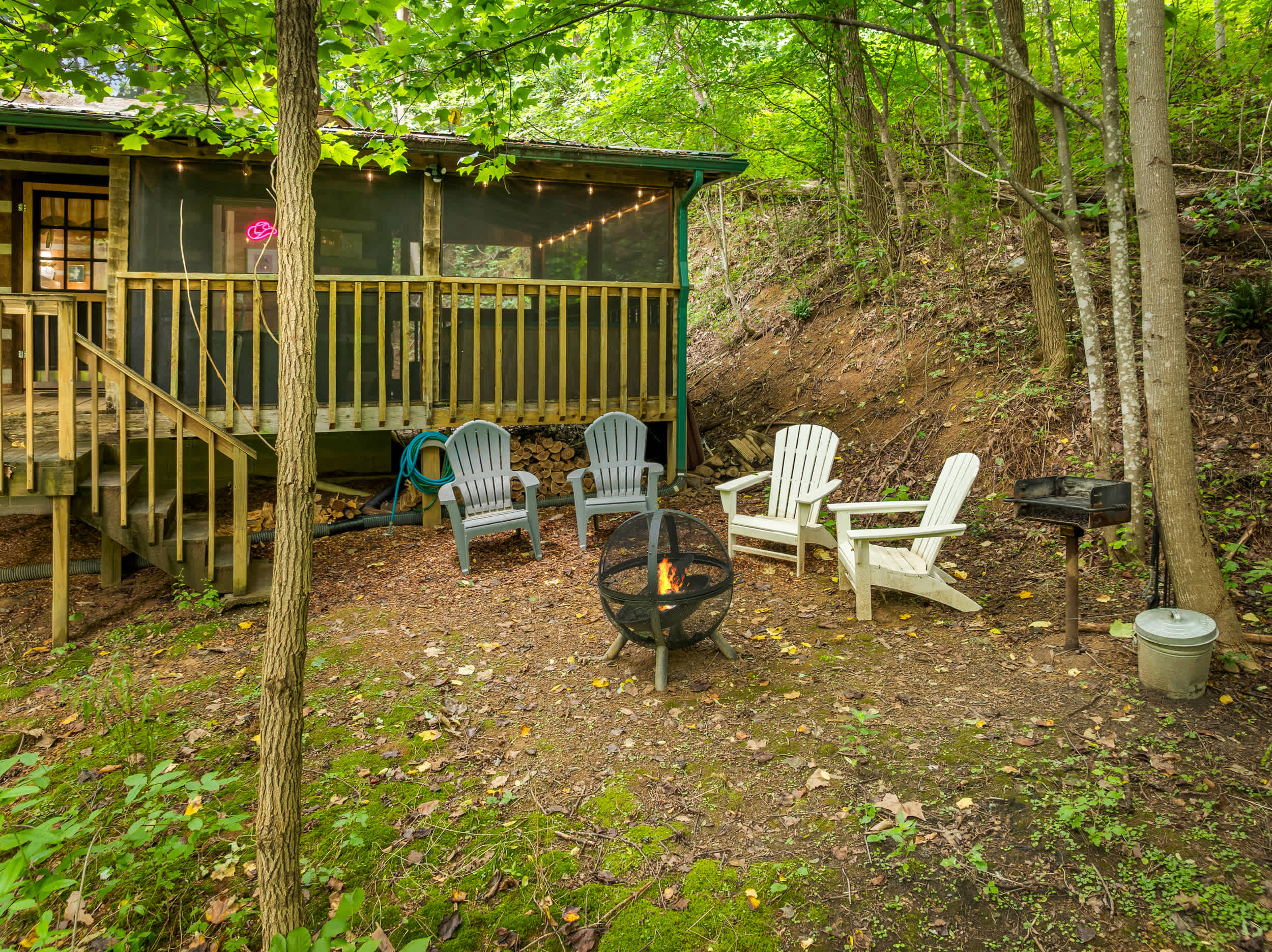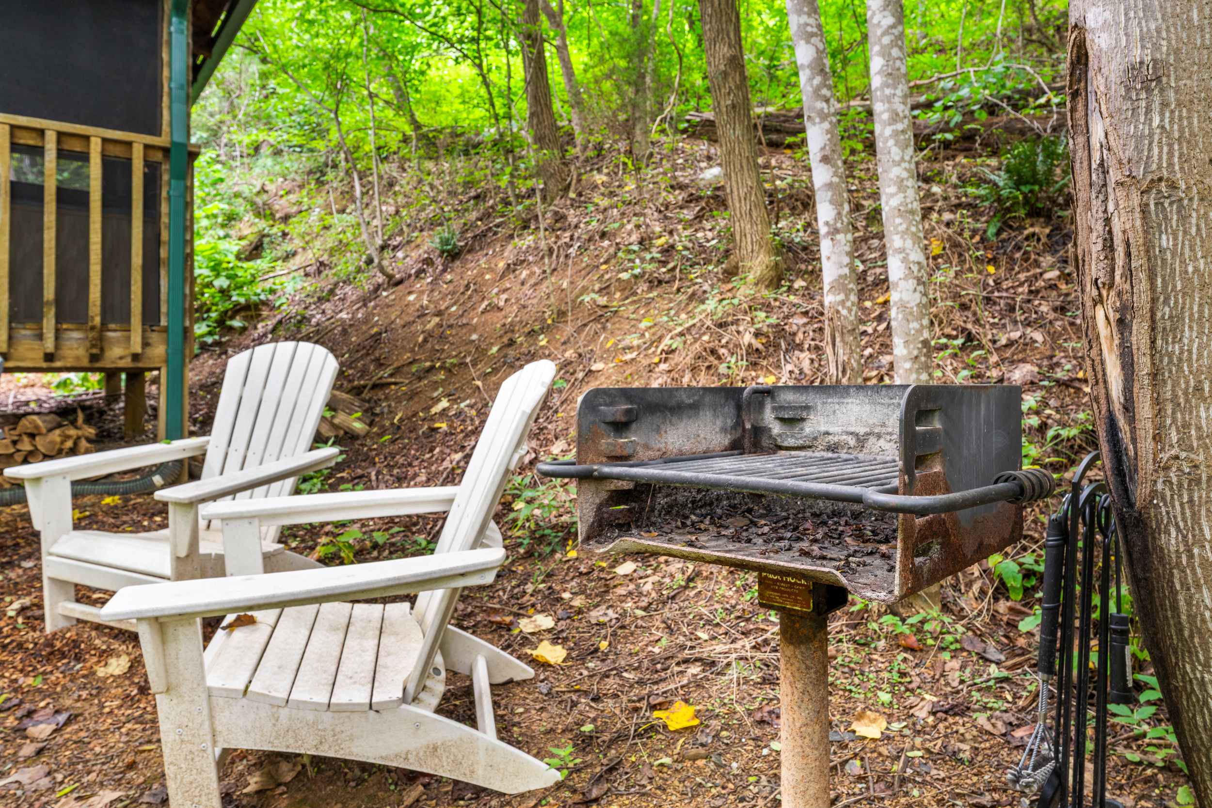 Step inside and you’ll find yourself wrapped in the warm, playful spirit of Dolly herself—bright accents, cheerful décor, and thoughtful touches that make every corner feel special. The open-concept living area offers plenty of seating for relaxing after exploring the Smokies, with big windows bringing in natural light and treetop views. The retro-style kitchen is stocked with smaller-scale appliances—perfect for making morning coffee, preparing snacks, or whipping up a home-cooked dinner without the fuss. Enjoy your meal indoors at the dining table for four, or head outside to dine al fresco on the spacious wraparound deck.