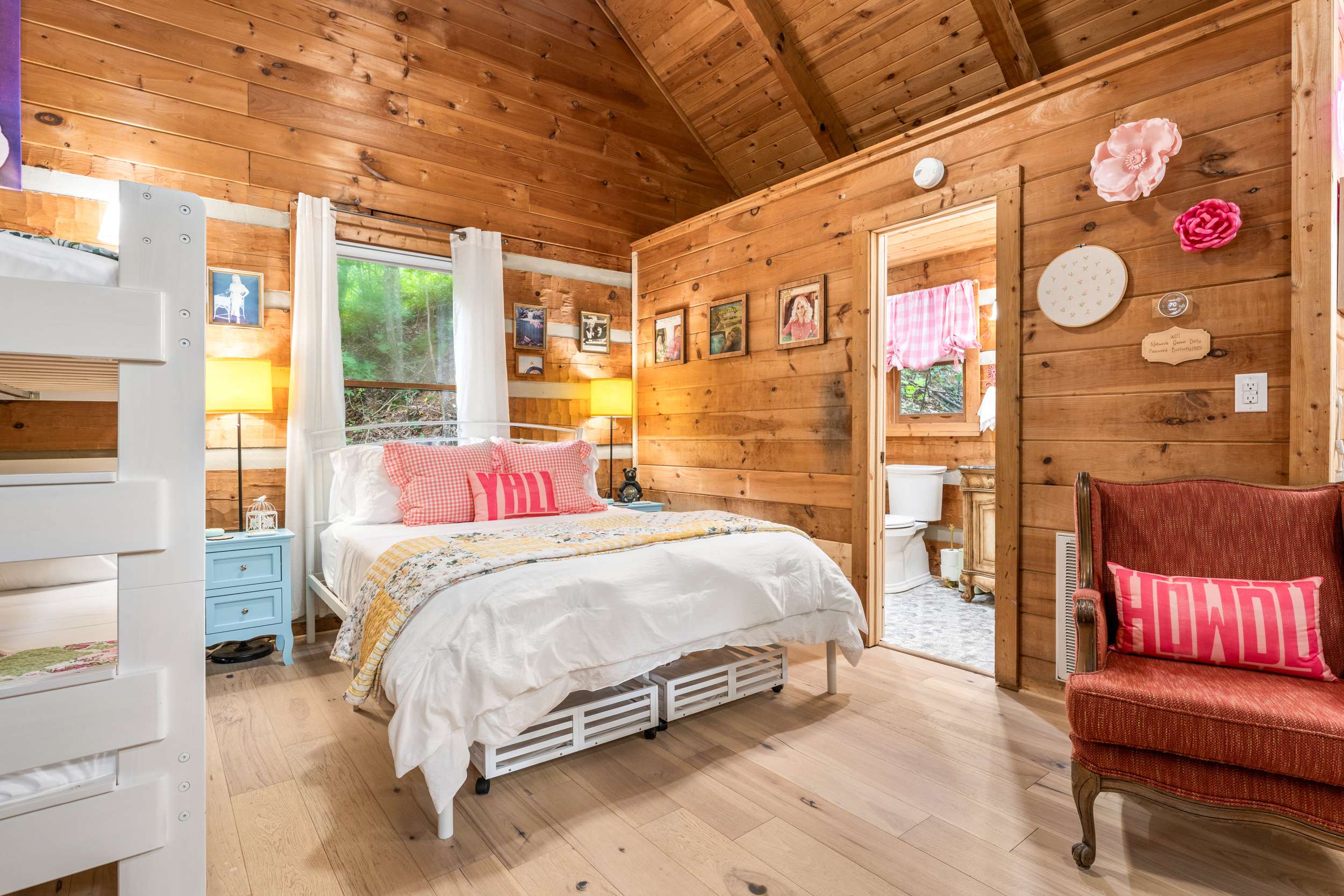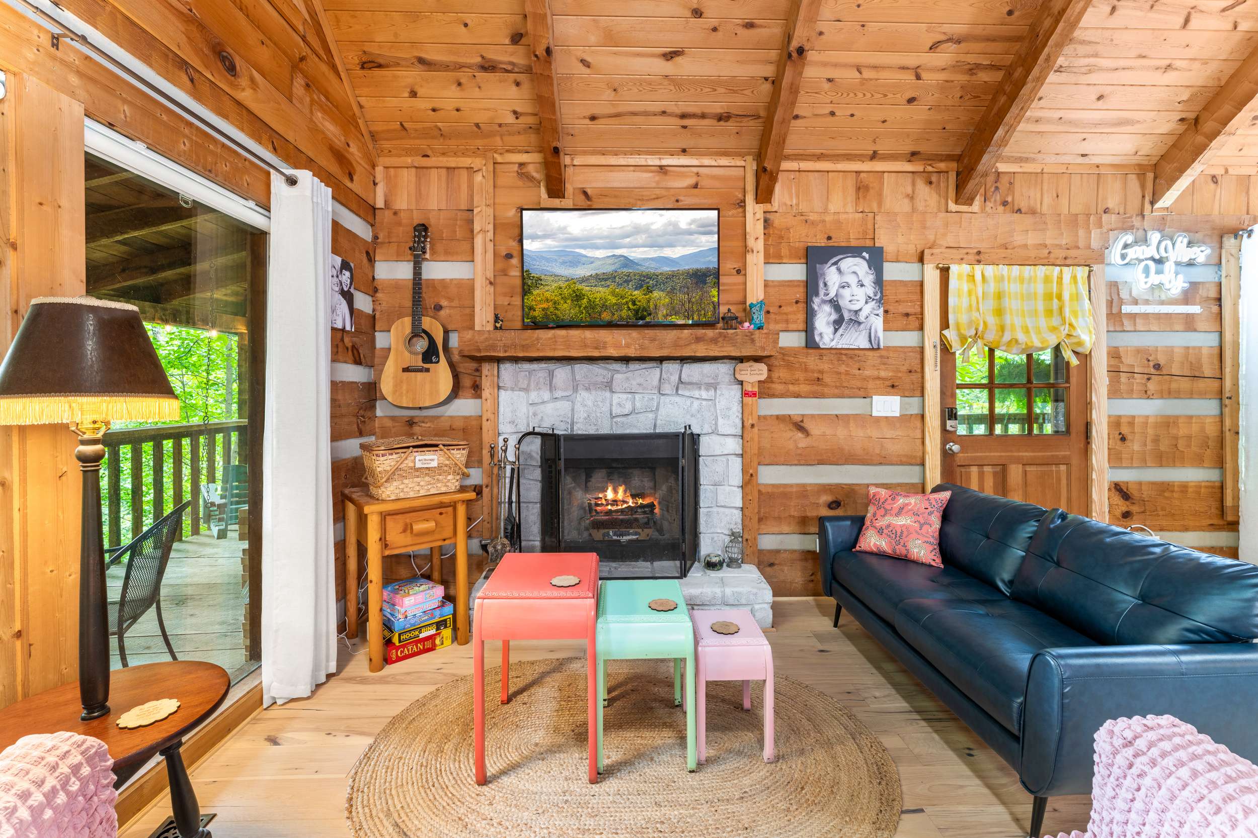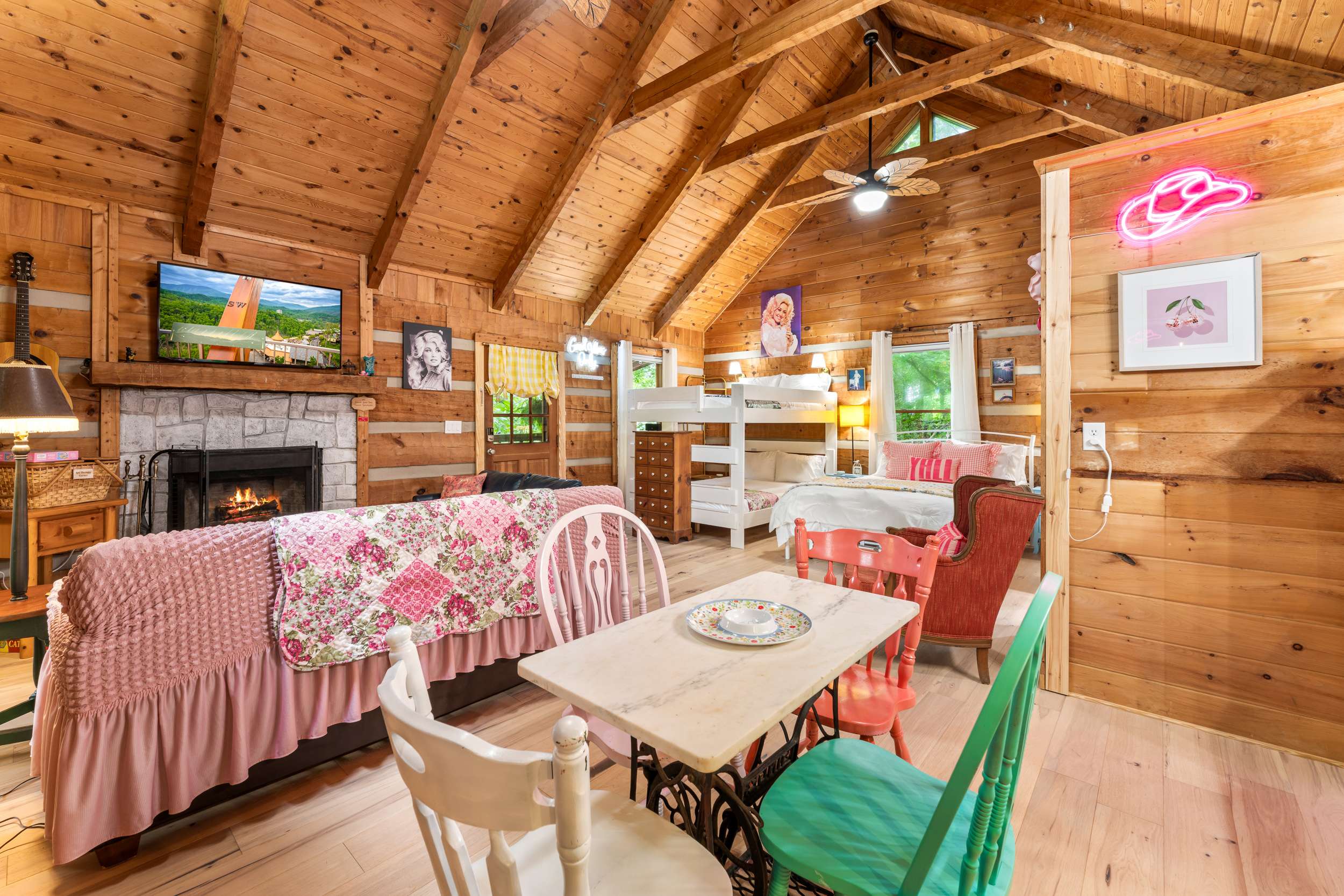 Welcome to Little Sparrow Cottage, a Dolly Parton–inspired Smoky Mountain hideaway perfect for girlfriends’ getaways and bachelorette fun. This cheerful studio features a cozy stone fireplace, smart TV, and a fully equipped retro-style kitchen for cooking up memories. Relax on the wraparound deck, soak in the hot tub, or gather at the fire pit under the stars. Close to Dollywood, shopping, and mountain adventures, it’s the perfect blend of charm, comfort, and convenience.