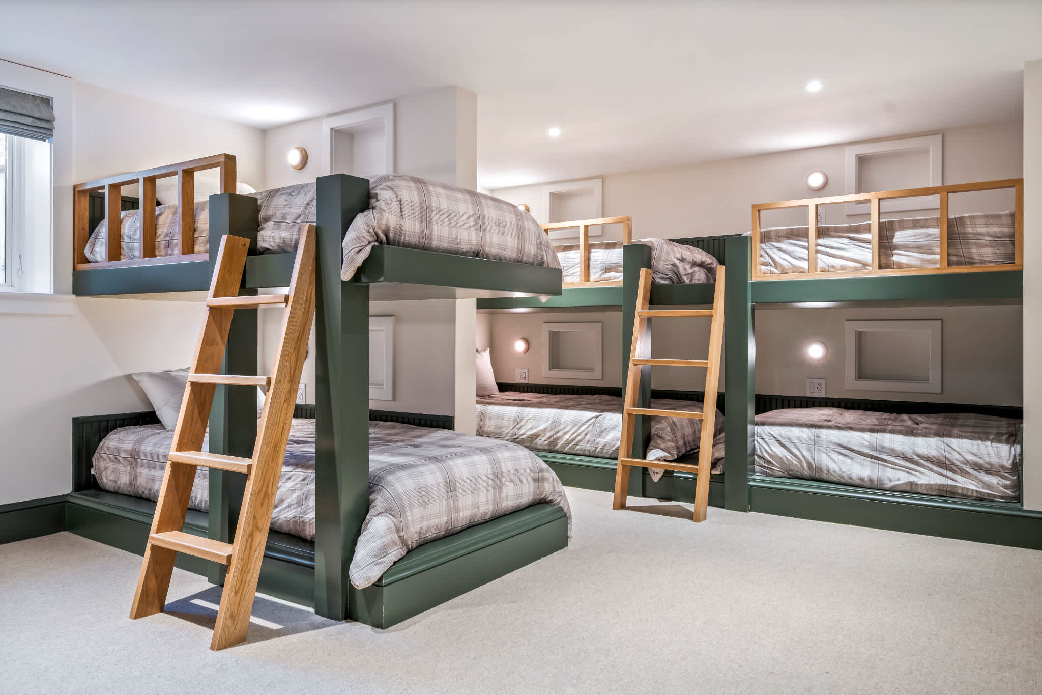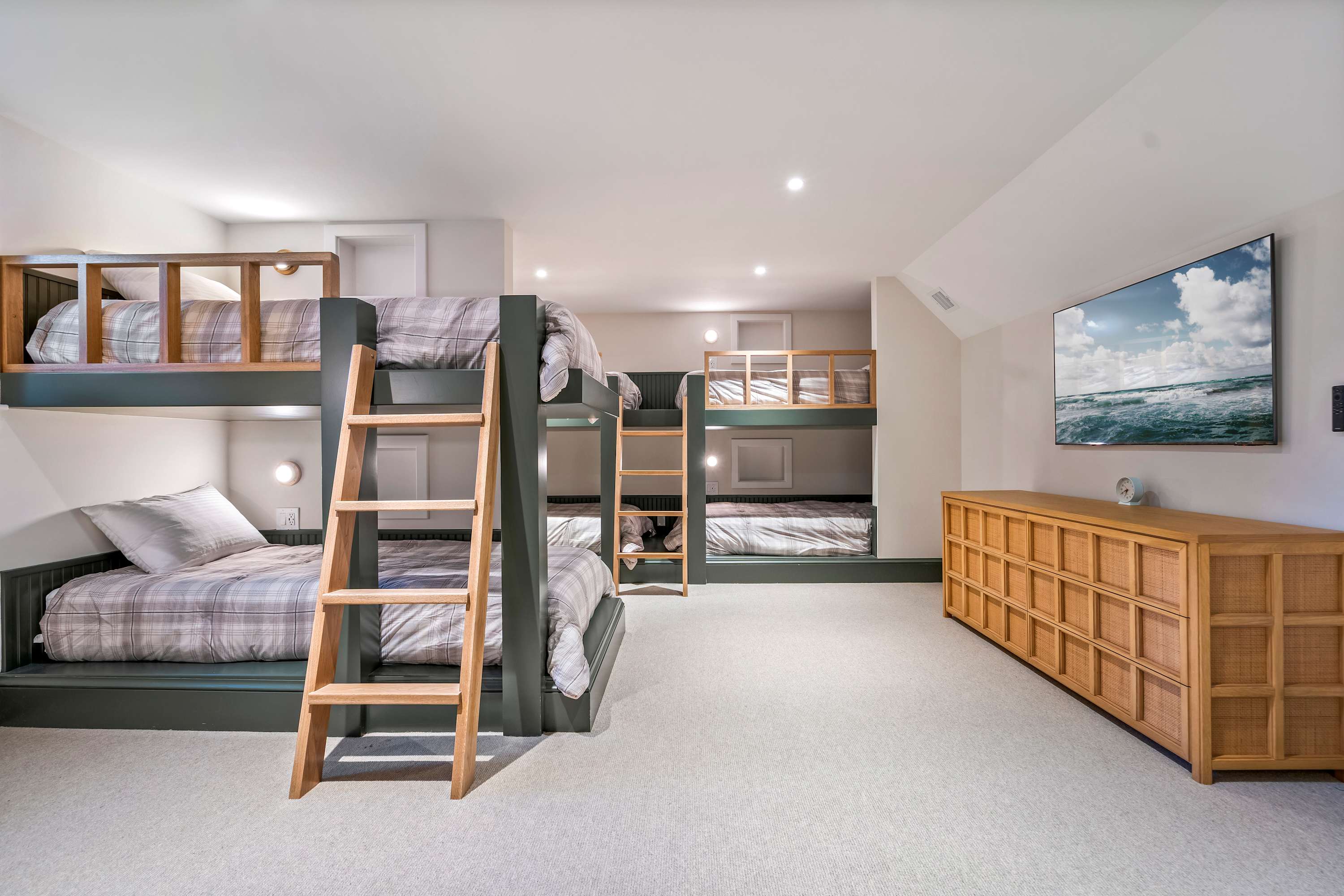 • Bedroom #6: Three twin XL-over-twin XL bunk beds, ensuite with trough sink & walk-in shower