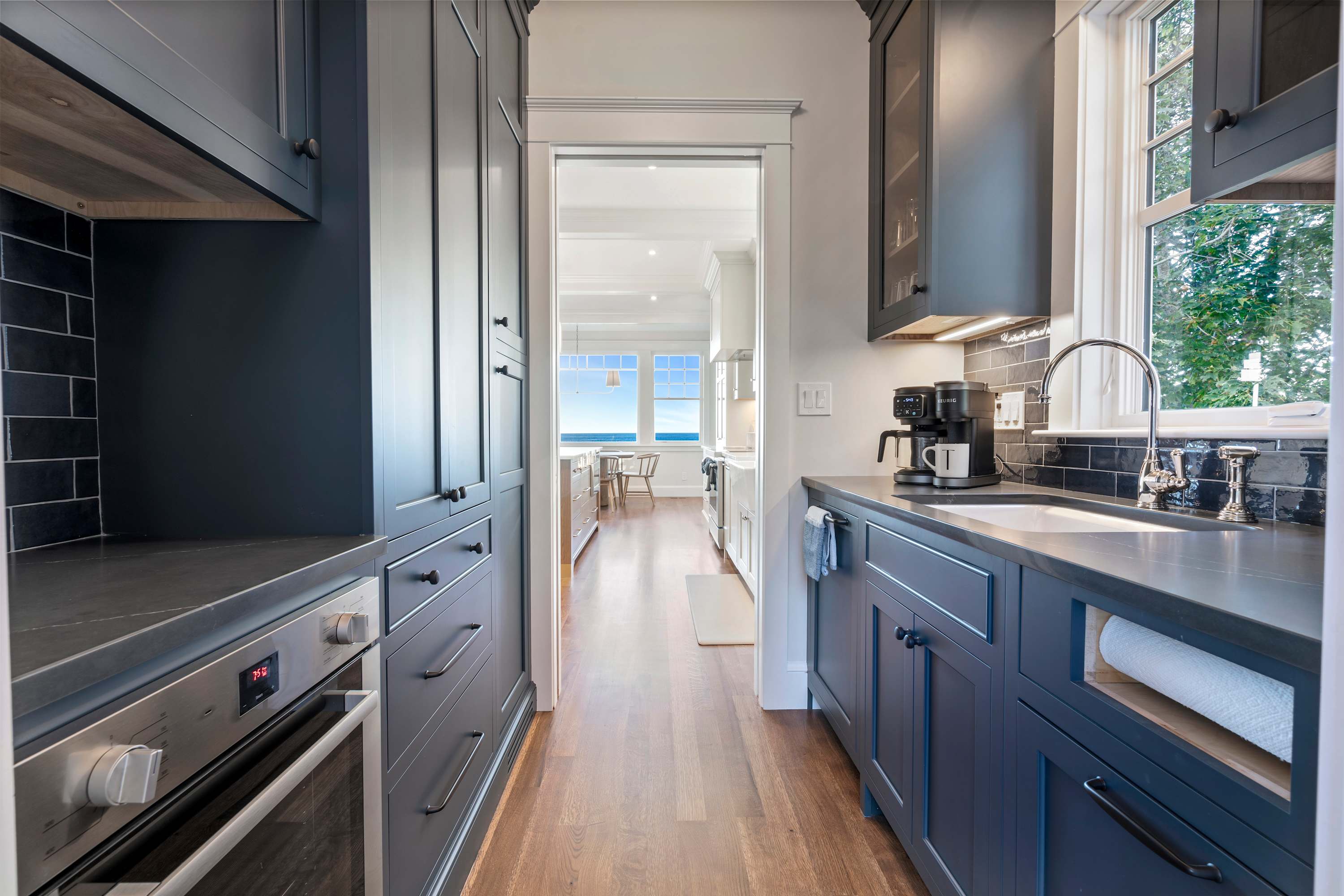 🌊 This newly built oceanfront home showcases sweeping views of tide pools and the open sea from the moment you arrive. Just beyond the backyard, you’ll find a quiet, semi-private pebble beach with tide pools to explore, or walk just ½ mile to Short Sands Beach for a classic sandy beach day. Afterward, gather for family dinners in the top-of-the-line, chef-level kitchen designed for groups, featuring SubZero refrigeration, Wolf appliances, double islands, and generous prep space—perfect for lobster nights and shared meals with an ocean view.