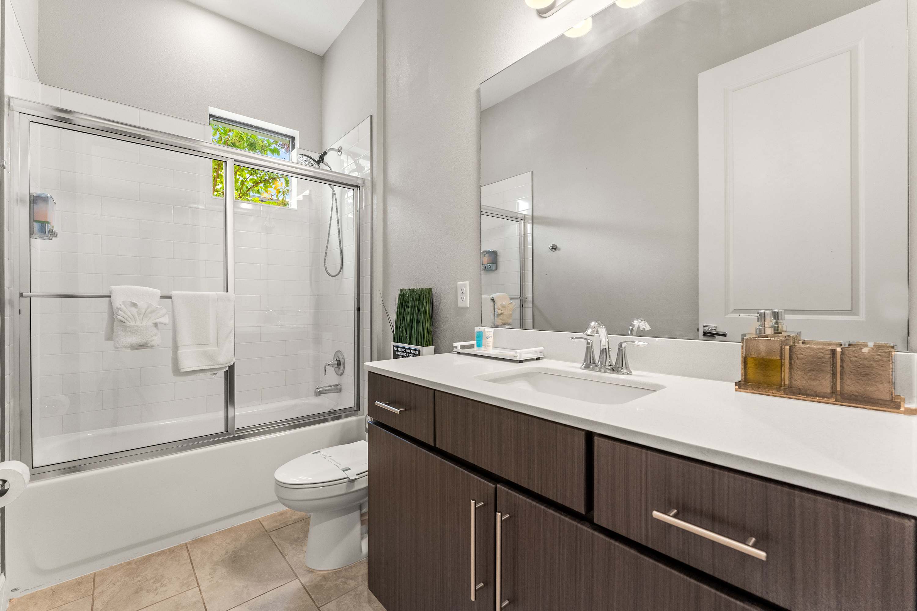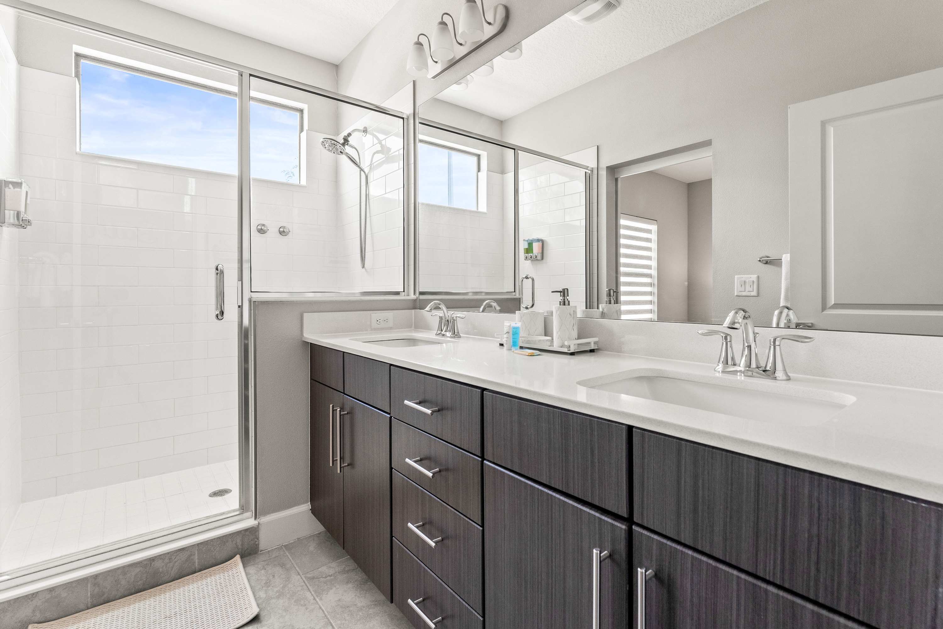 This home also includes 2 additional full bathrooms, one with a single vanity and a walk-in shower, and one with a single vanity and a shower/tub combo.
