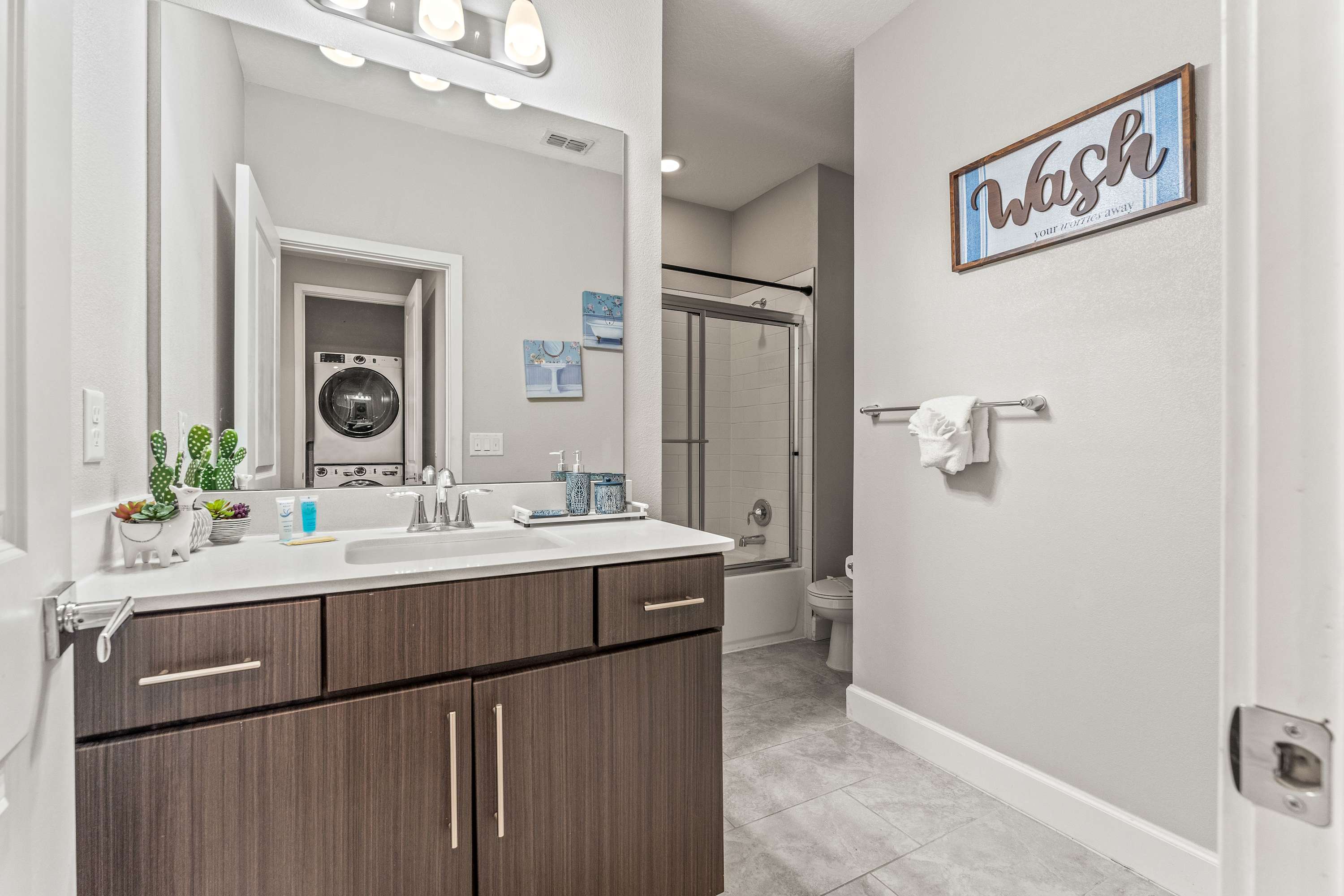 • Washer and dryer in home.