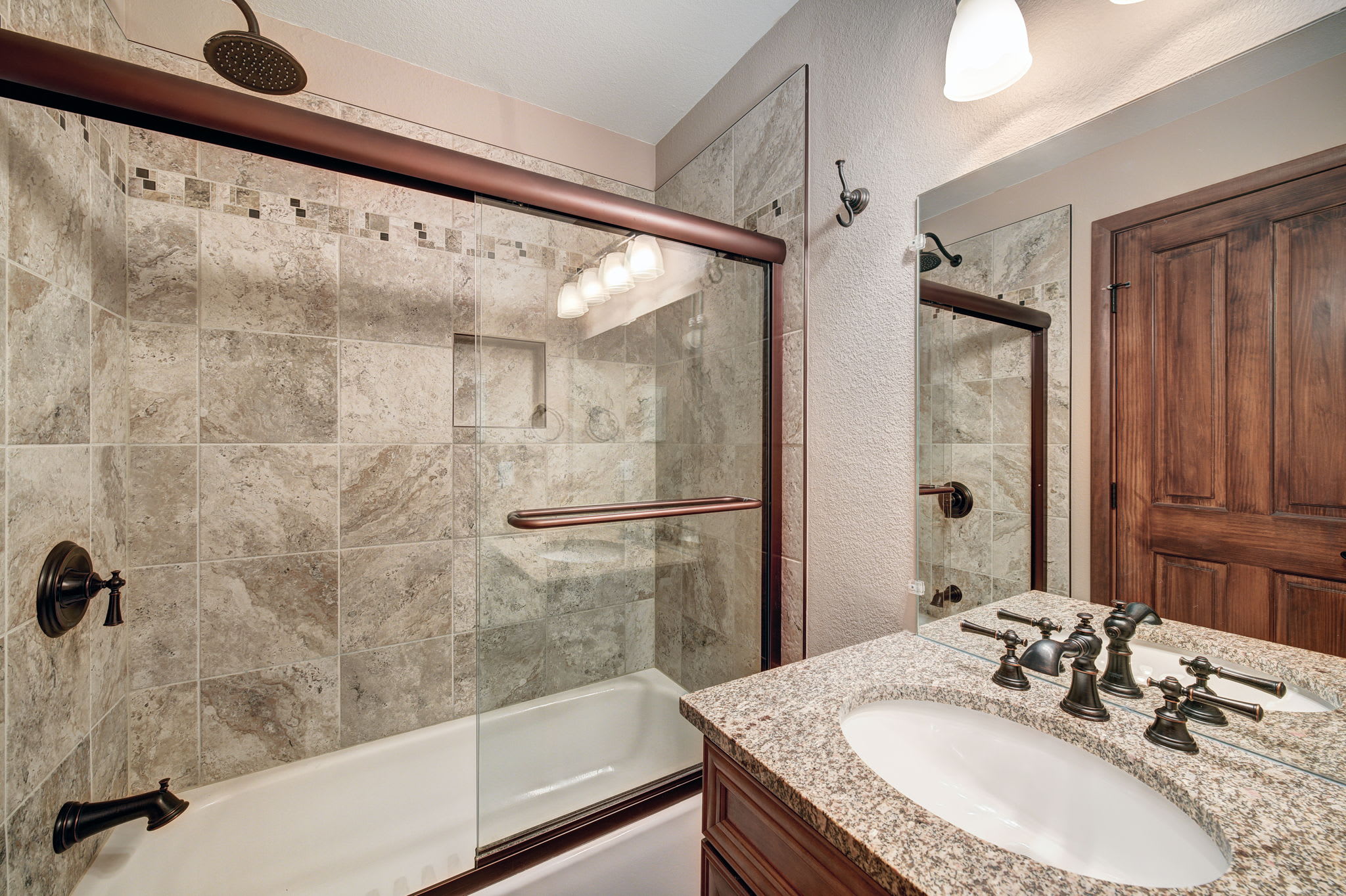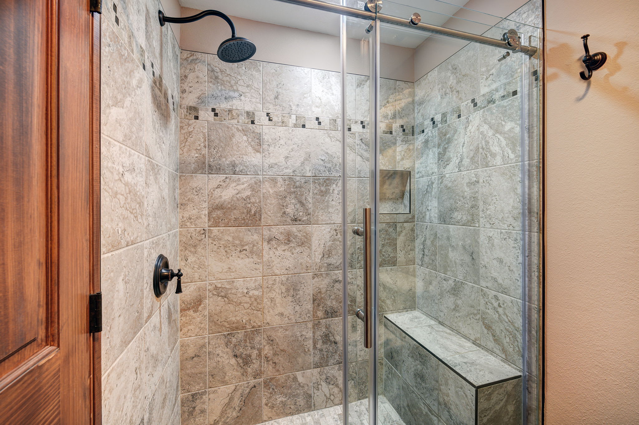 • Bathroom 1: Ensuite to primary; walk-in shower with built-in bench.