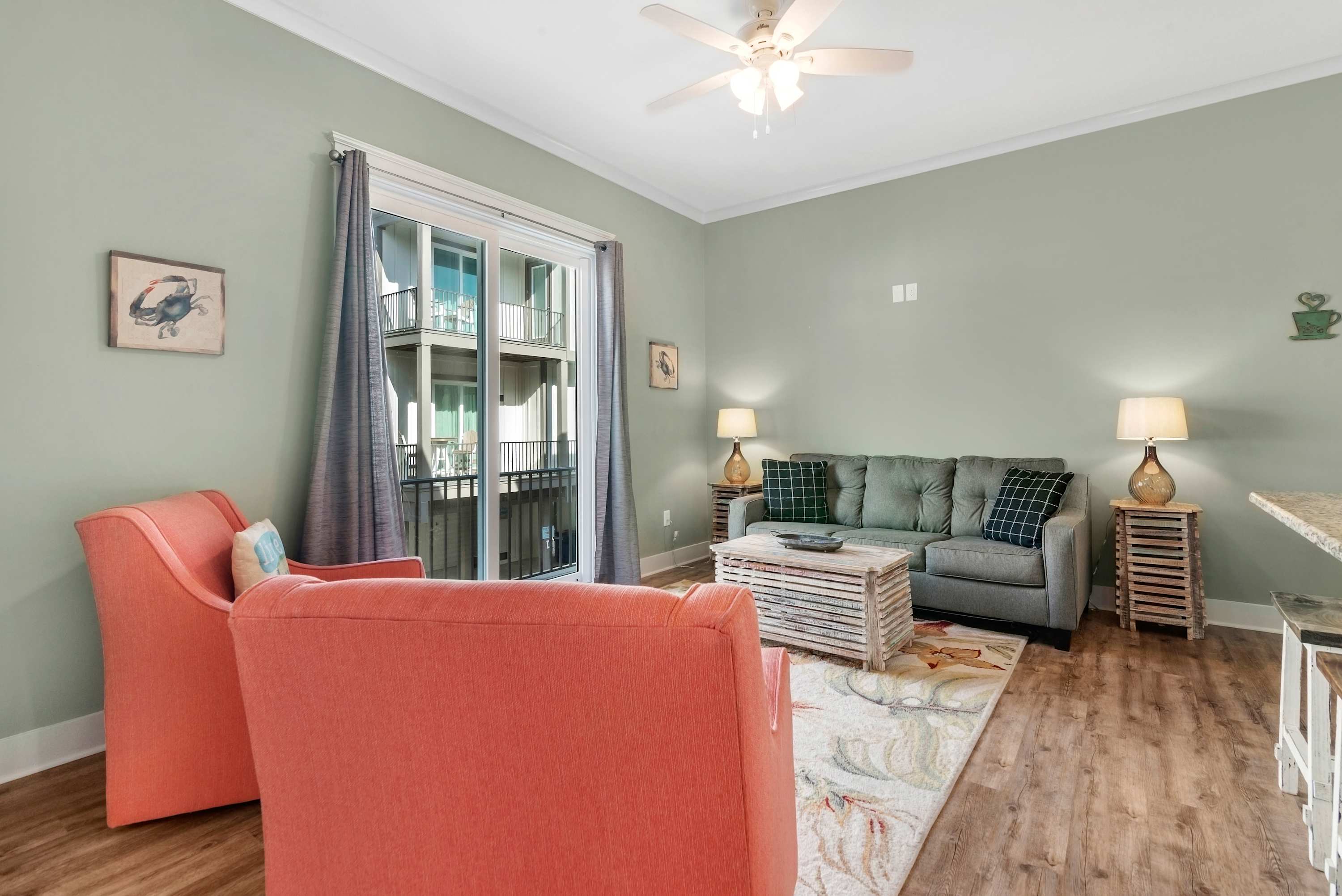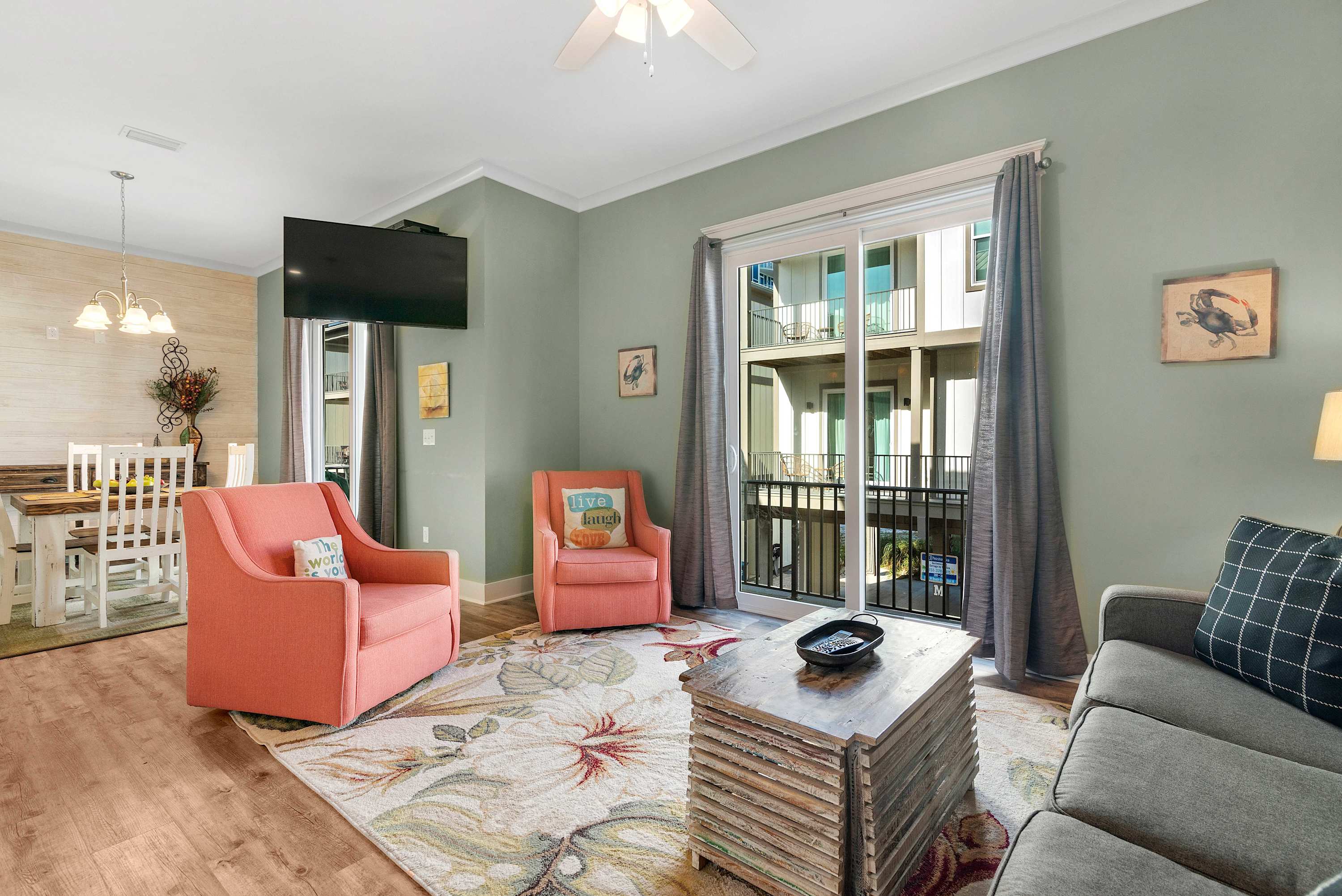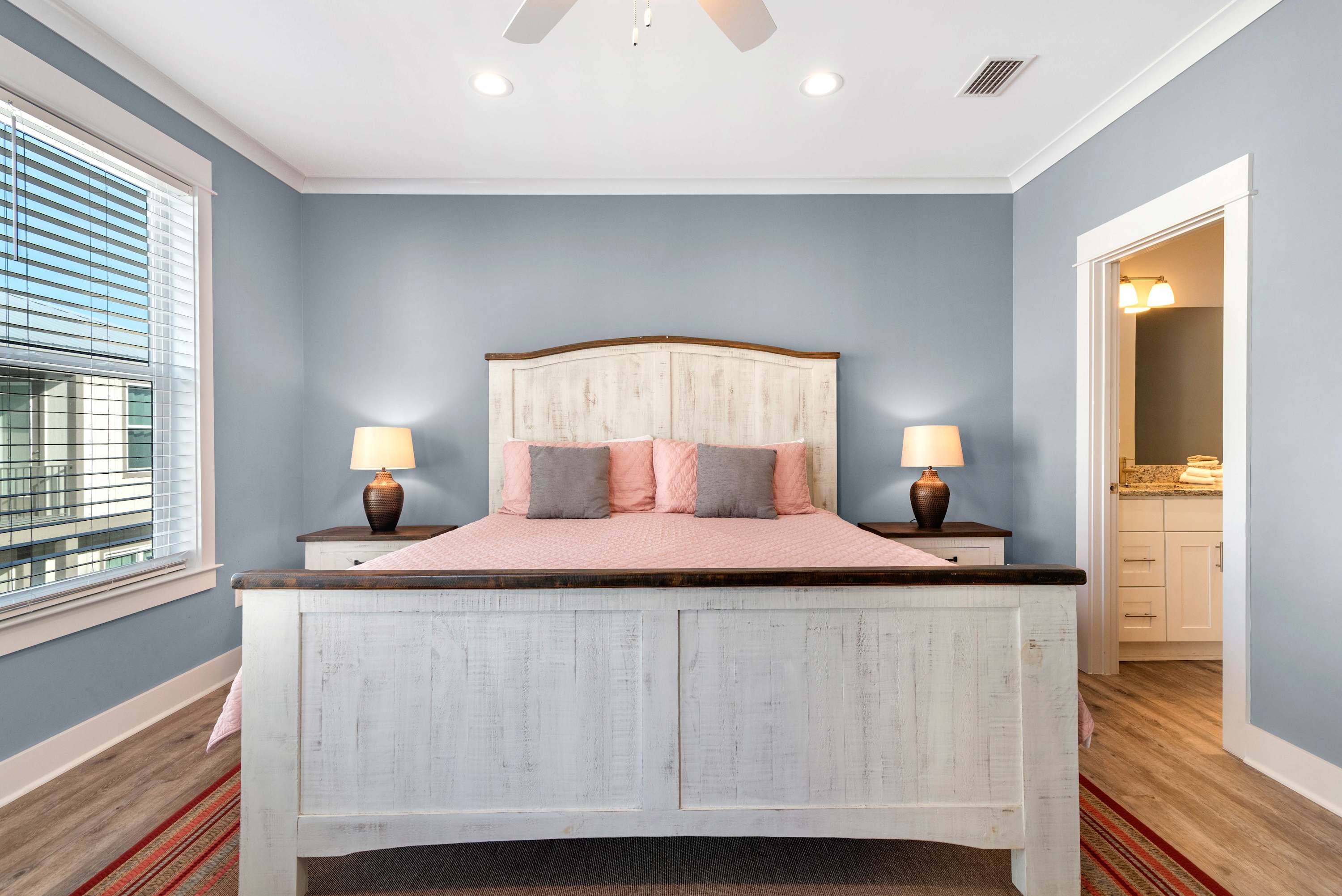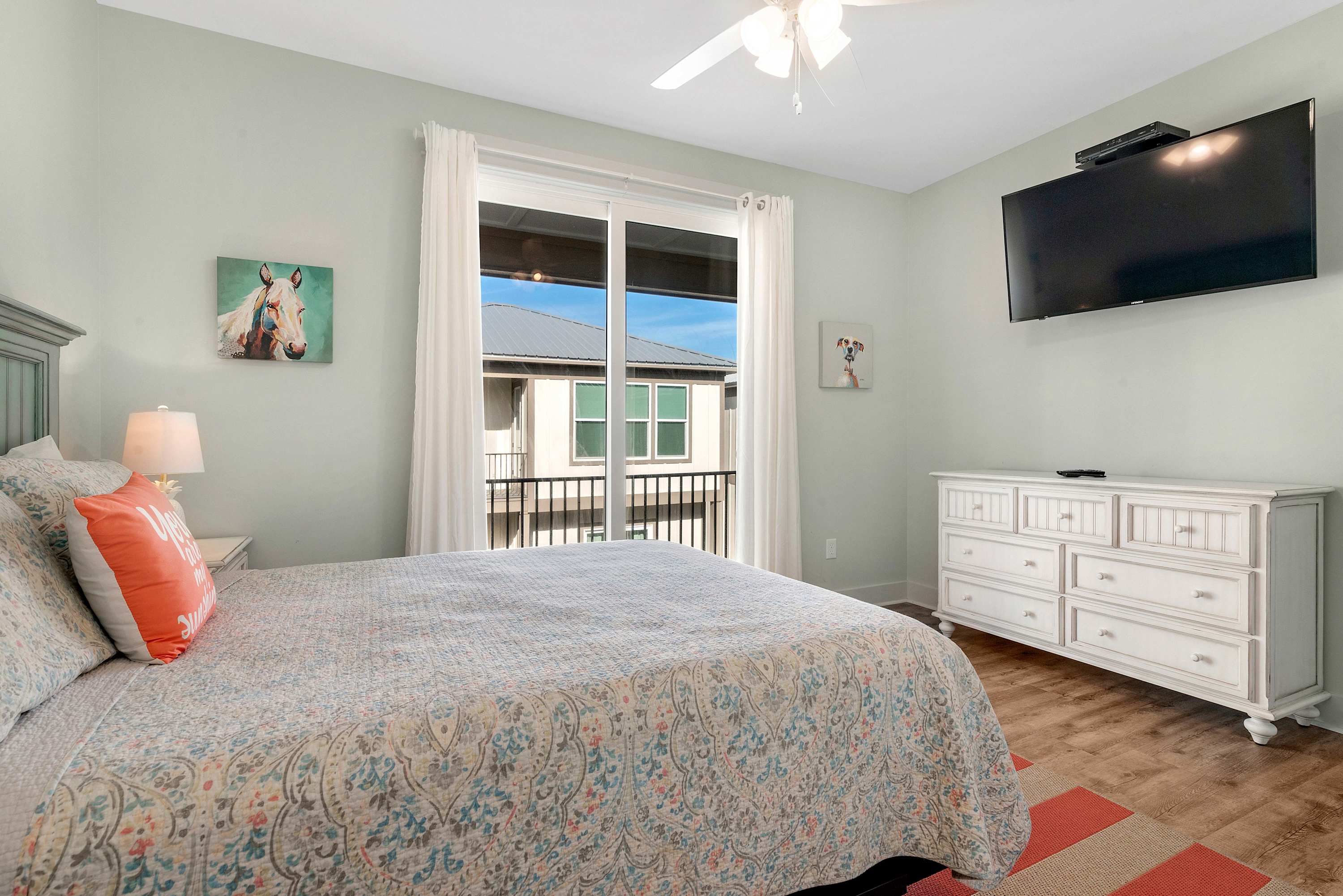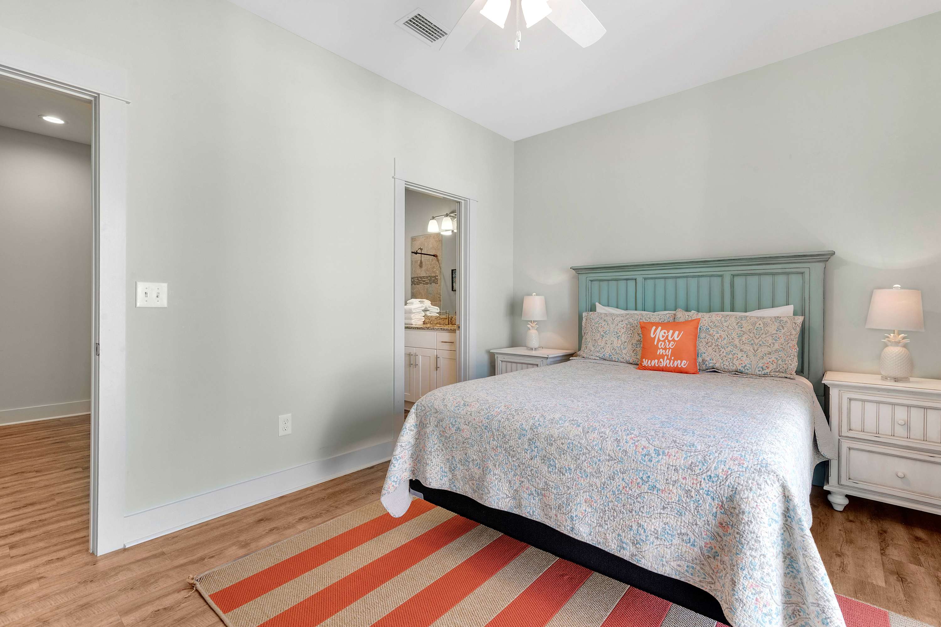 Step inside Little Lagoon Cottage to an open, airy living space where a plush couch, two armchairs, and a smart TV invite you to relax after a day in the sun. Surrounded by luxury coastal décor, the fully equipped kitchen features sleek stainless steel appliances, generous counter seating for four, and an easy flow into the dining area with seating for four more. Whether you’re sipping coffee while the sun rises over the Gulf or winding down on the balcony with ocean breezes, every corner of this home is made for memorable moments.