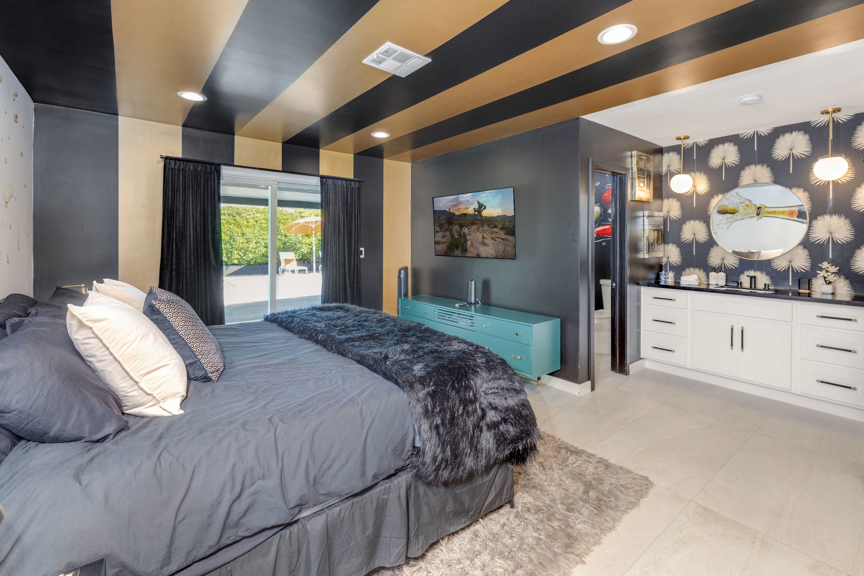 Bedroom #4, The Marilyn Room, includes a king size bed and private patio access.