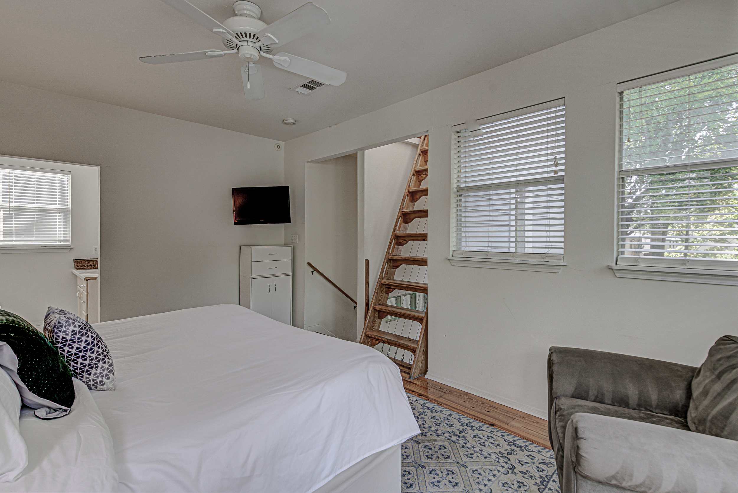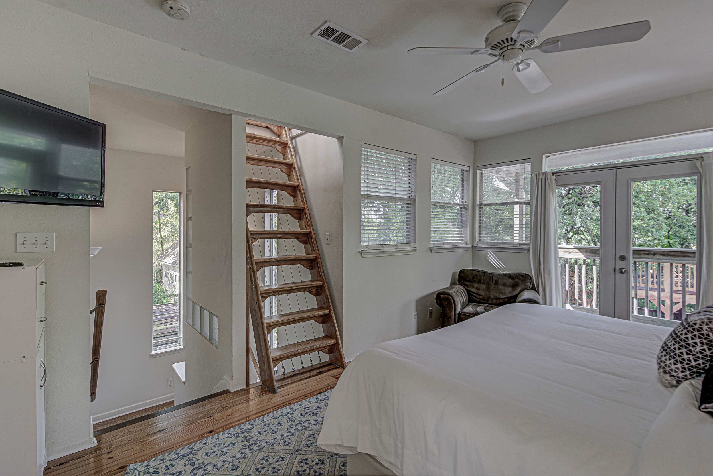 • Stairs: Stairs are required to access the primary loft suite. The attic reading nook is reached via a very steep ladder and is best for older kids or adults.
