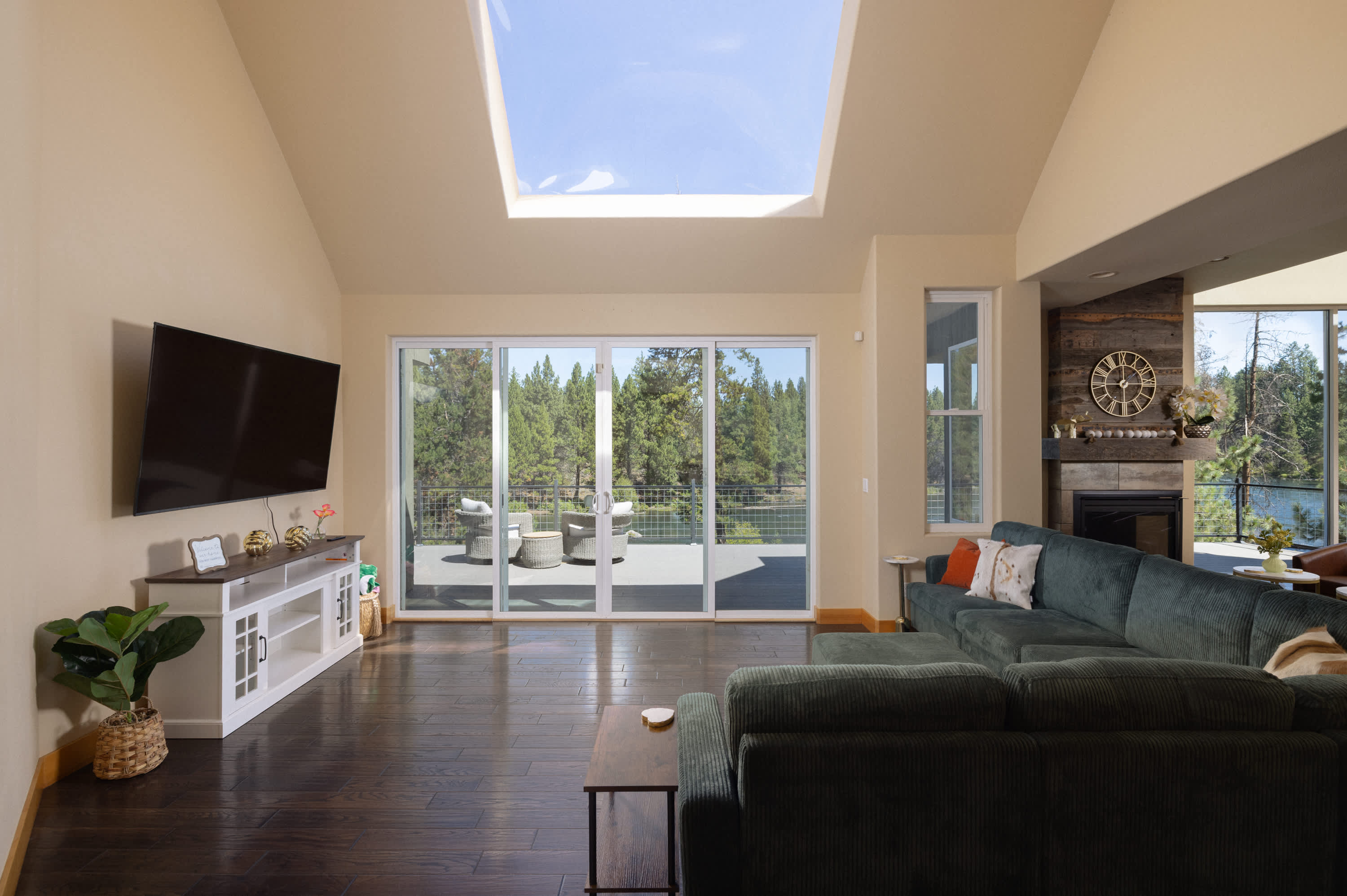Big Sky Bend continues to impress with spaces designed for fun and relaxation. The game room offers shelves of books, board games, a poker table, and a smart TV, perfect for evenings staying in. Downstairs, a unique loft retreat features a sauna and daybed, creating a spa-like escape. Outdoors, the natural beauty of the riverfront setting takes center stage. Gather around the firepit at the river’s edge, share meals on the deck with its comfortable seating and panoramic views, or enjoy quiet moments on the lower deck. Whether you’re seeking adventure, relaxation, or a bit of both, this home delivers an unforgettable Bend experience.