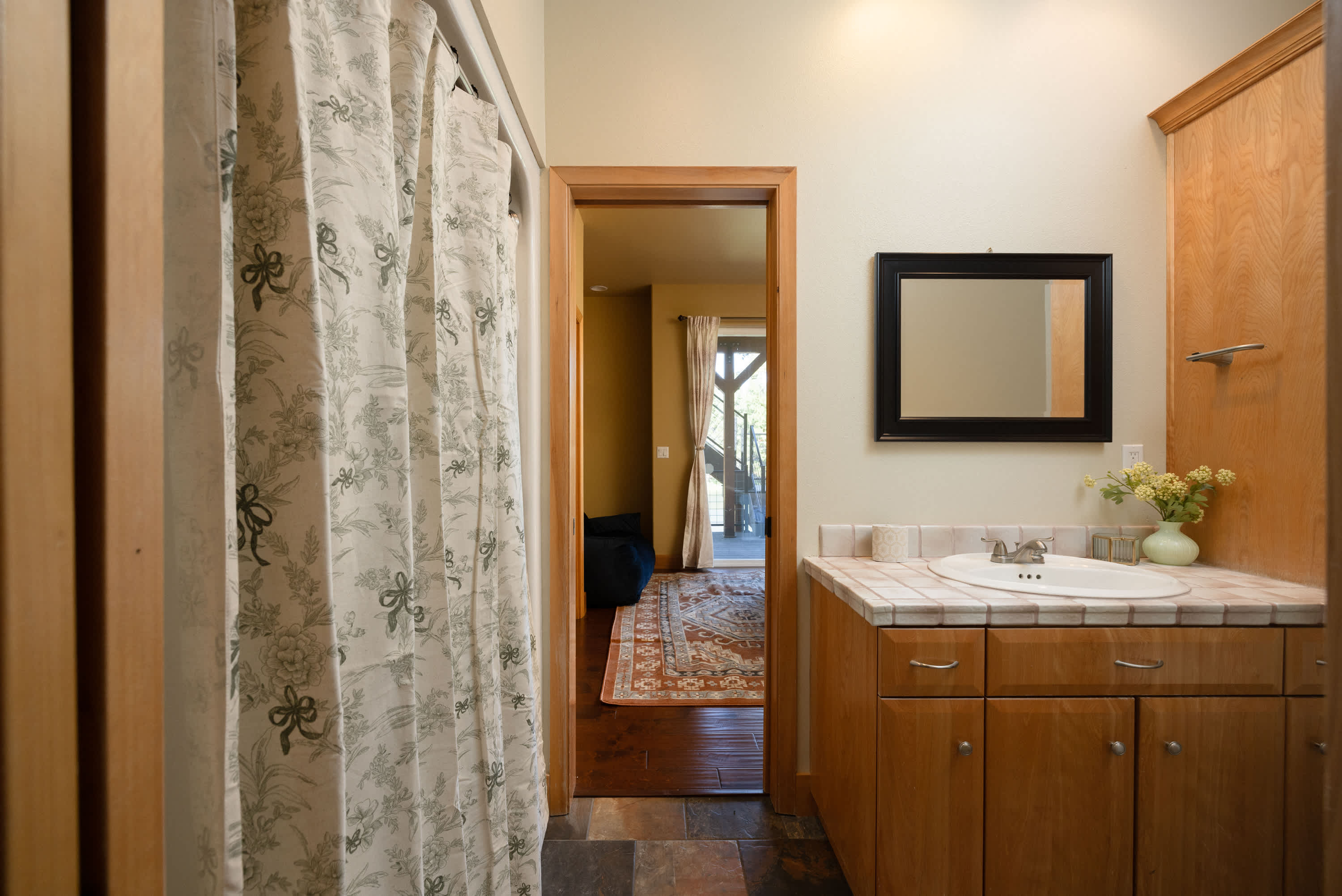 The home also includes a third full bathroom with a single vanity and a walk-in shower and an additional half guest bathroom.