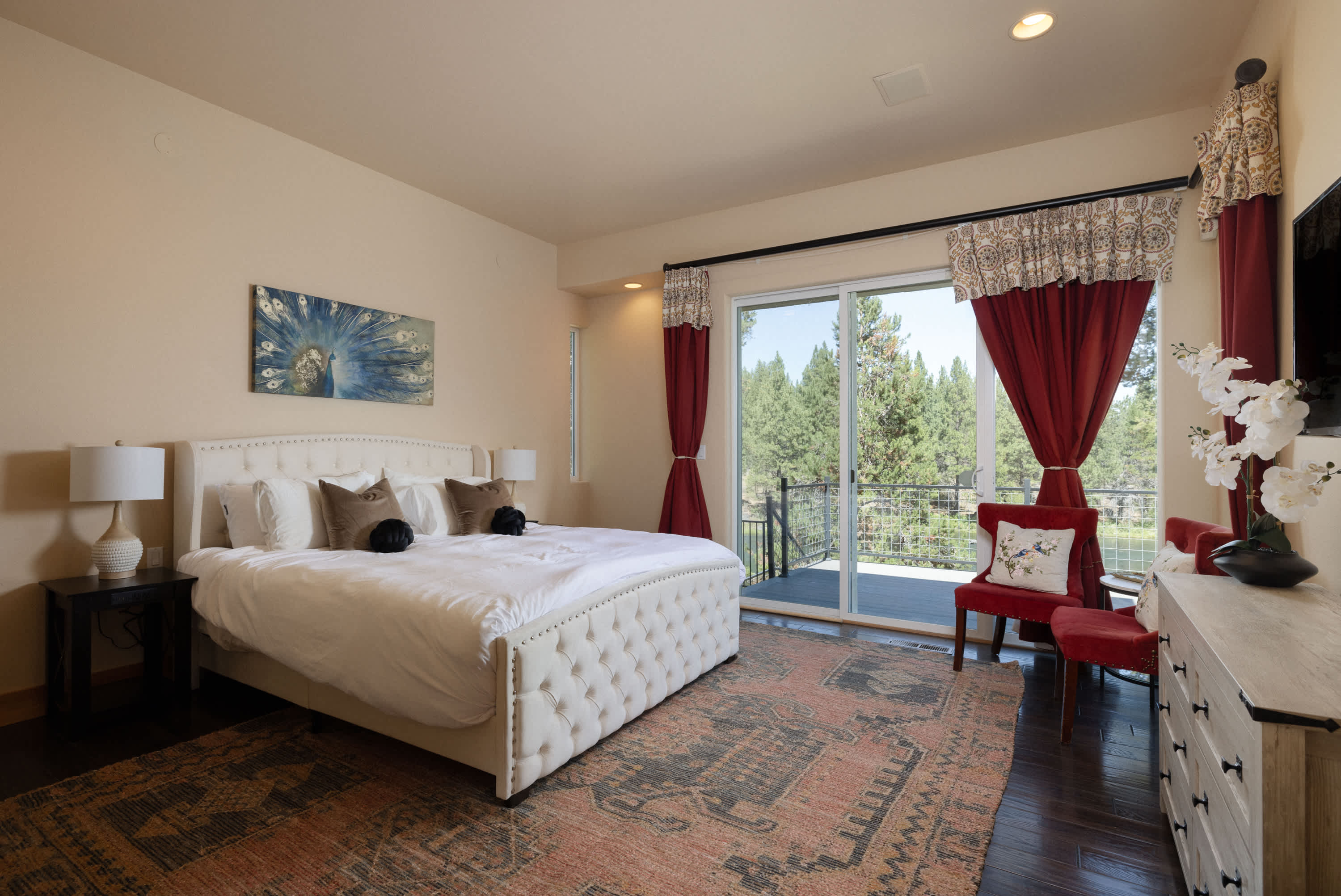 Bedroom #3 includes a king-size bed and deck access.