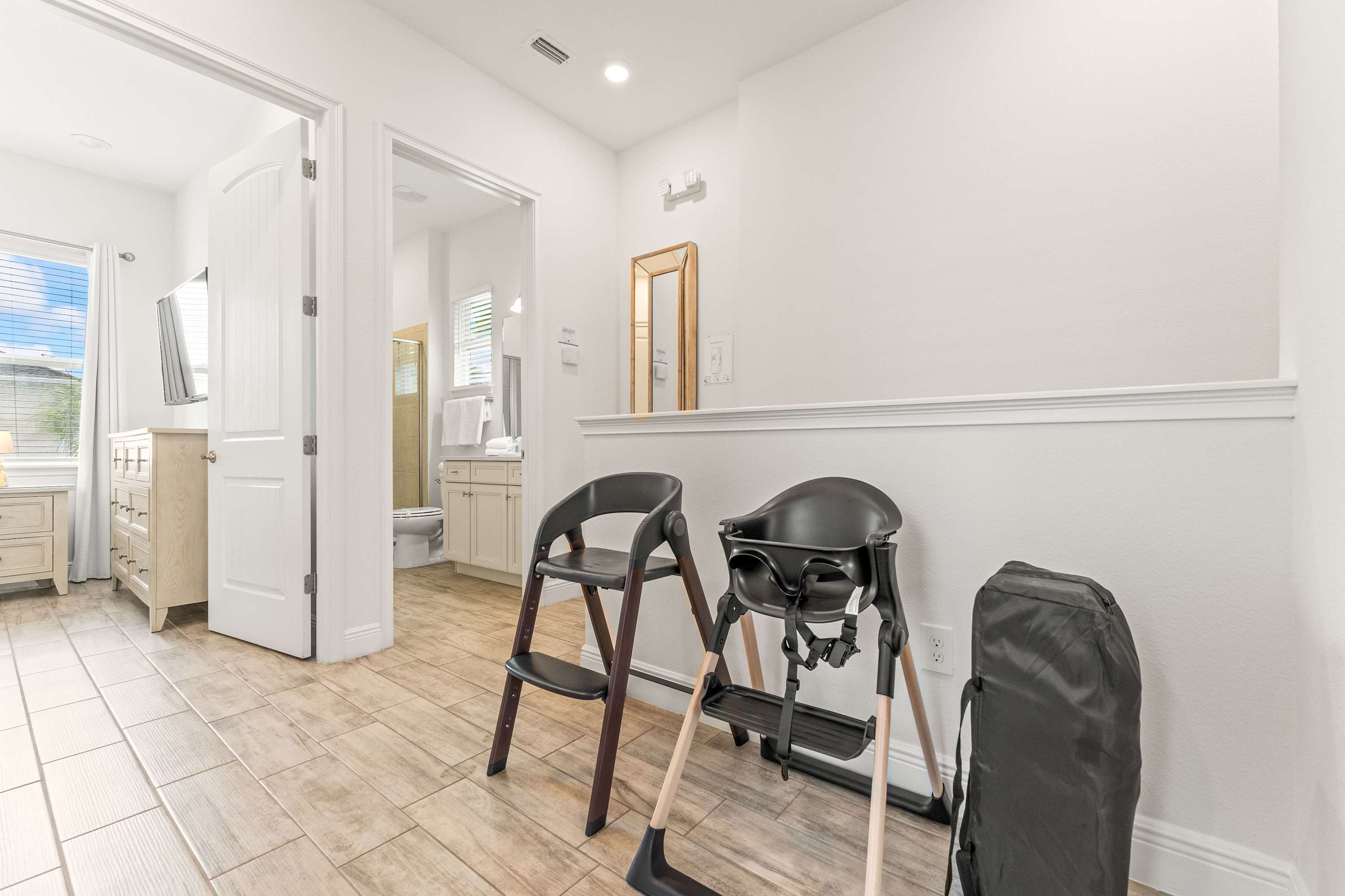 Kid-friendly touches make this home especially welcoming for families. Guests will find two high chairs, a play pen, a step stool, and a selection of children’s toys and books—everything you need to help little ones feel at home. With comfort, style, and location all in one, this cottage is the perfect home base for your unforgettable Orlando getaway.