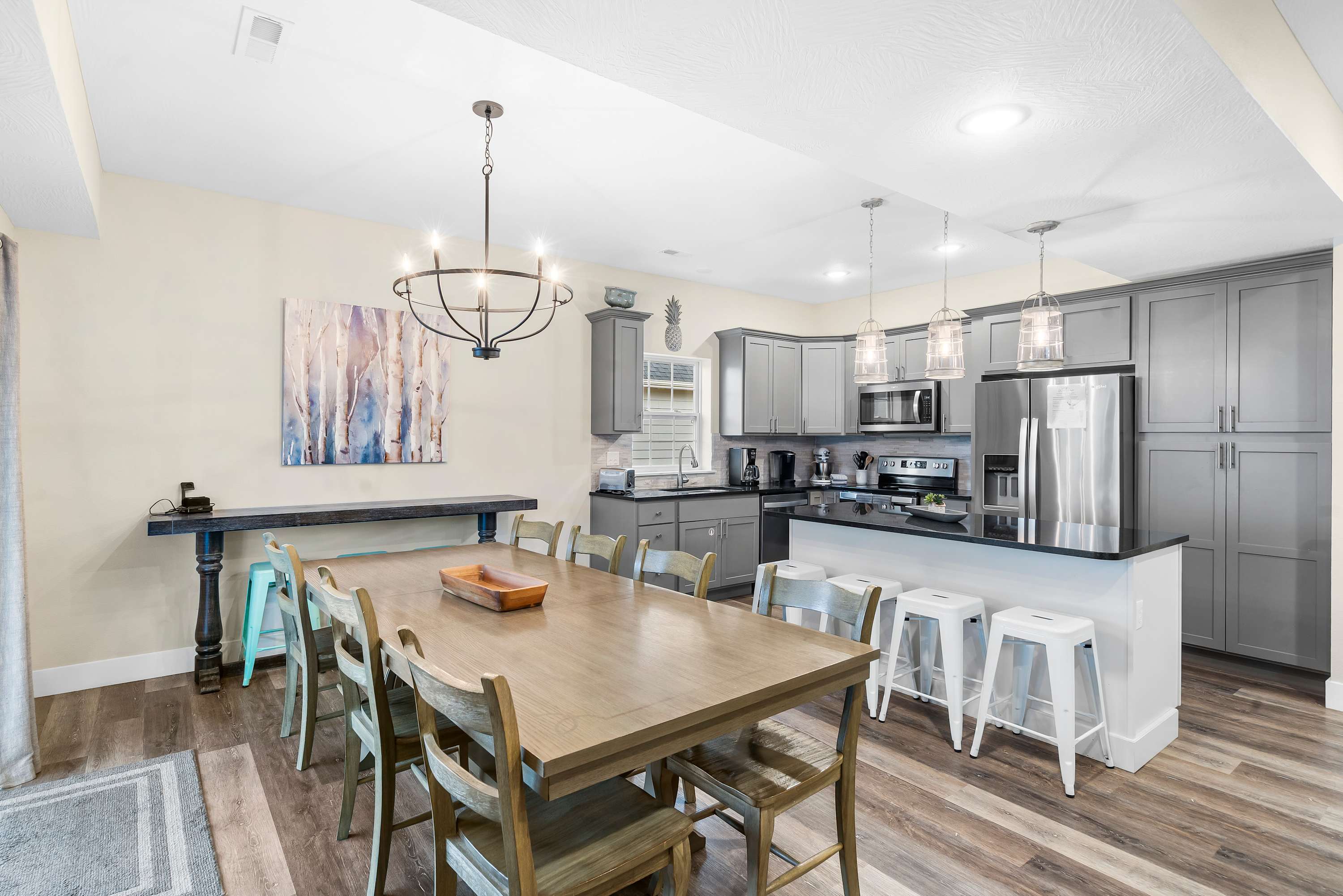 This home comfortably sleeps 14 guests between 4 private bedrooms and a queen-size sleeper sofa in the living room.