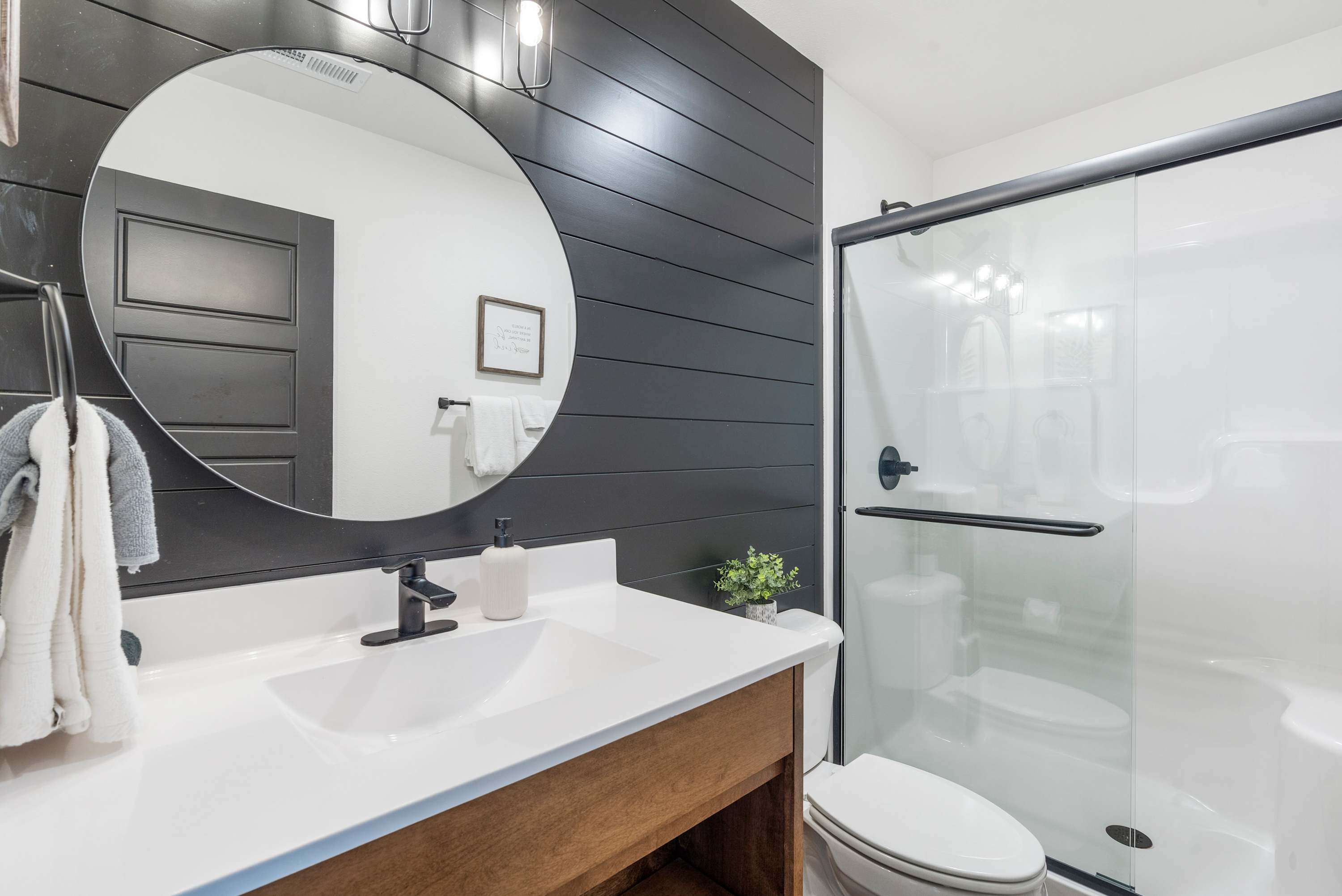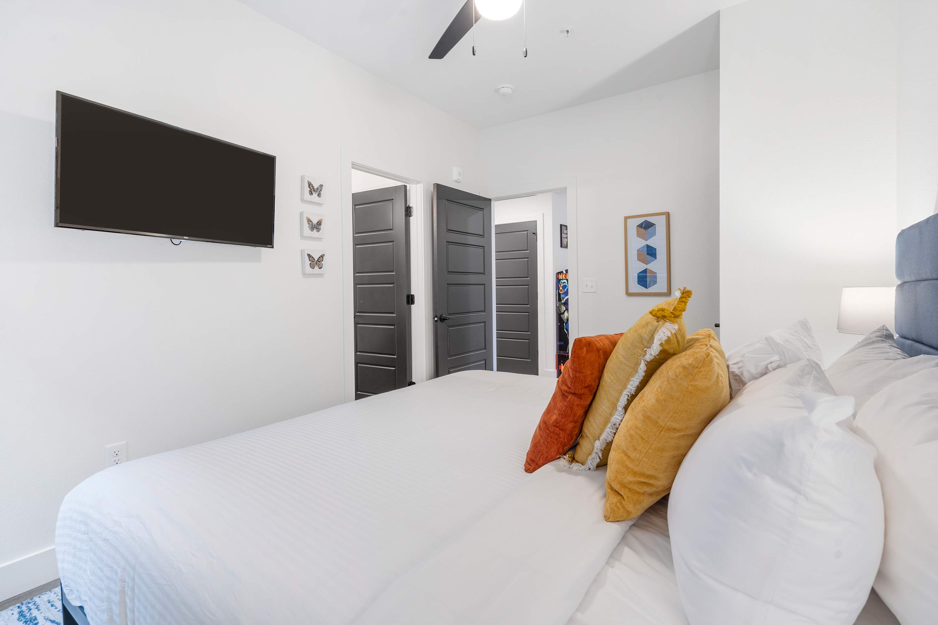Bedroom #5 includes a king size bed, a smart TV, and an ensuite bathroom with a single vanity and a walk-in shower.