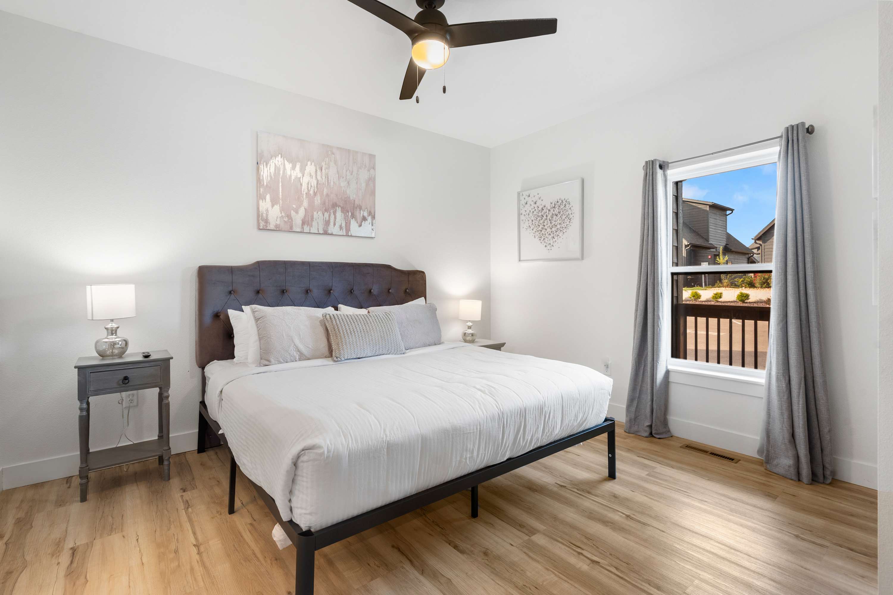 Bedroom #4 includes a king size bed, a smart TV, and an ensuite bathroom with a single vanity and a shower/tub combo.