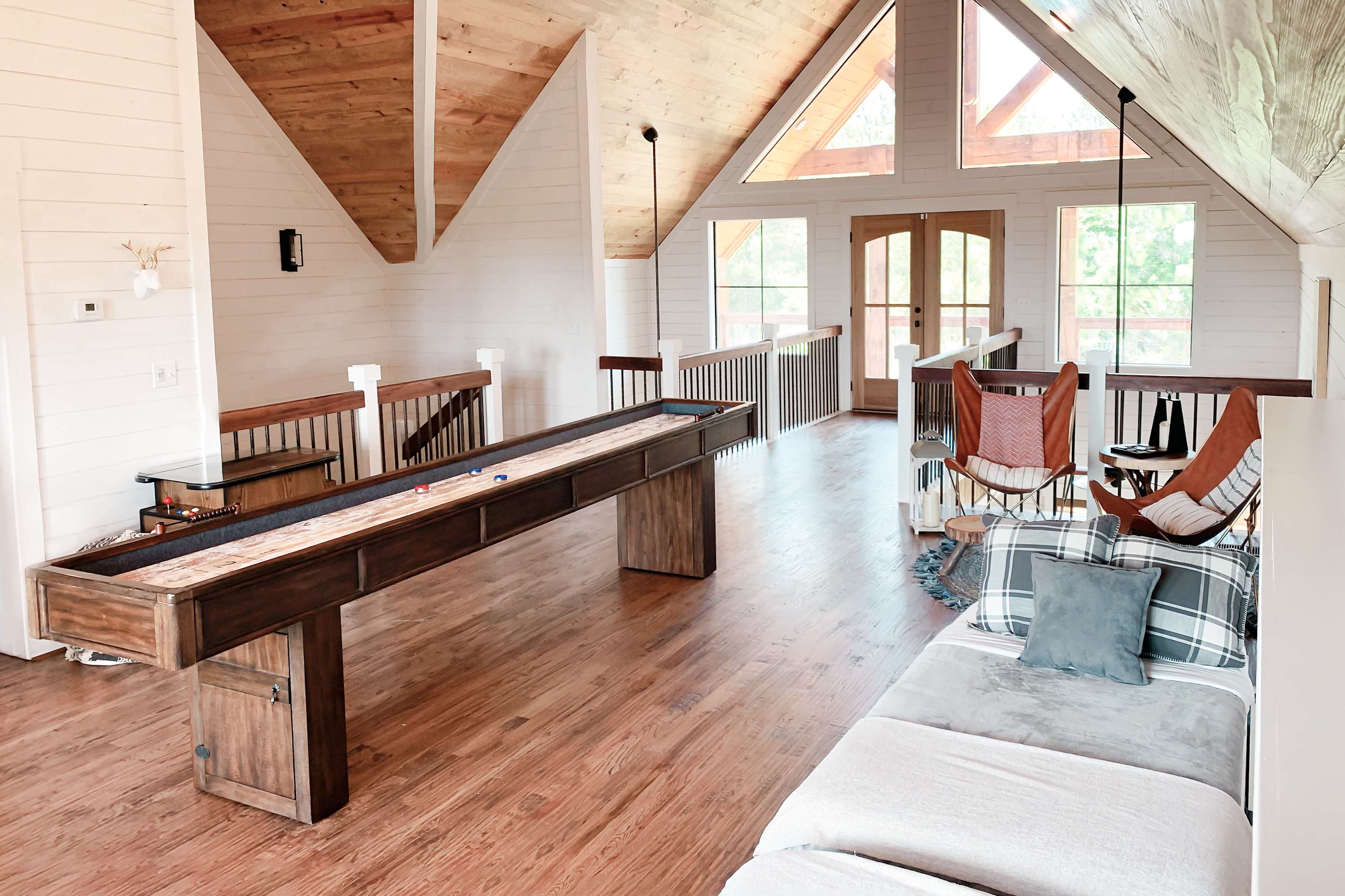 This home comfortably sleeps 10 guests between 3 private bedrooms and a loft/gameroom with 2 twin size murphy beds and a queen size sleeper sofa.