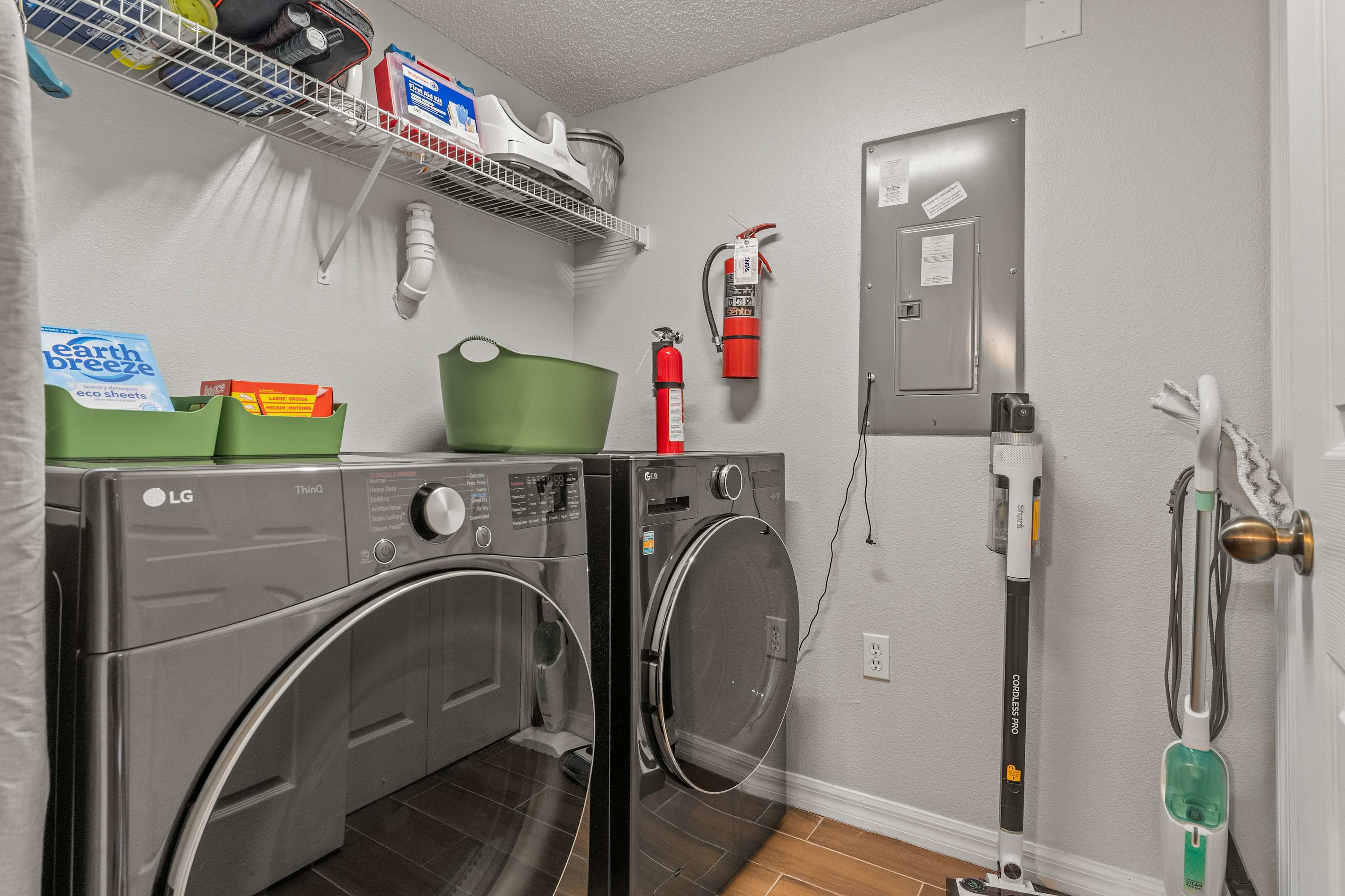 • Washer and dryer in home.