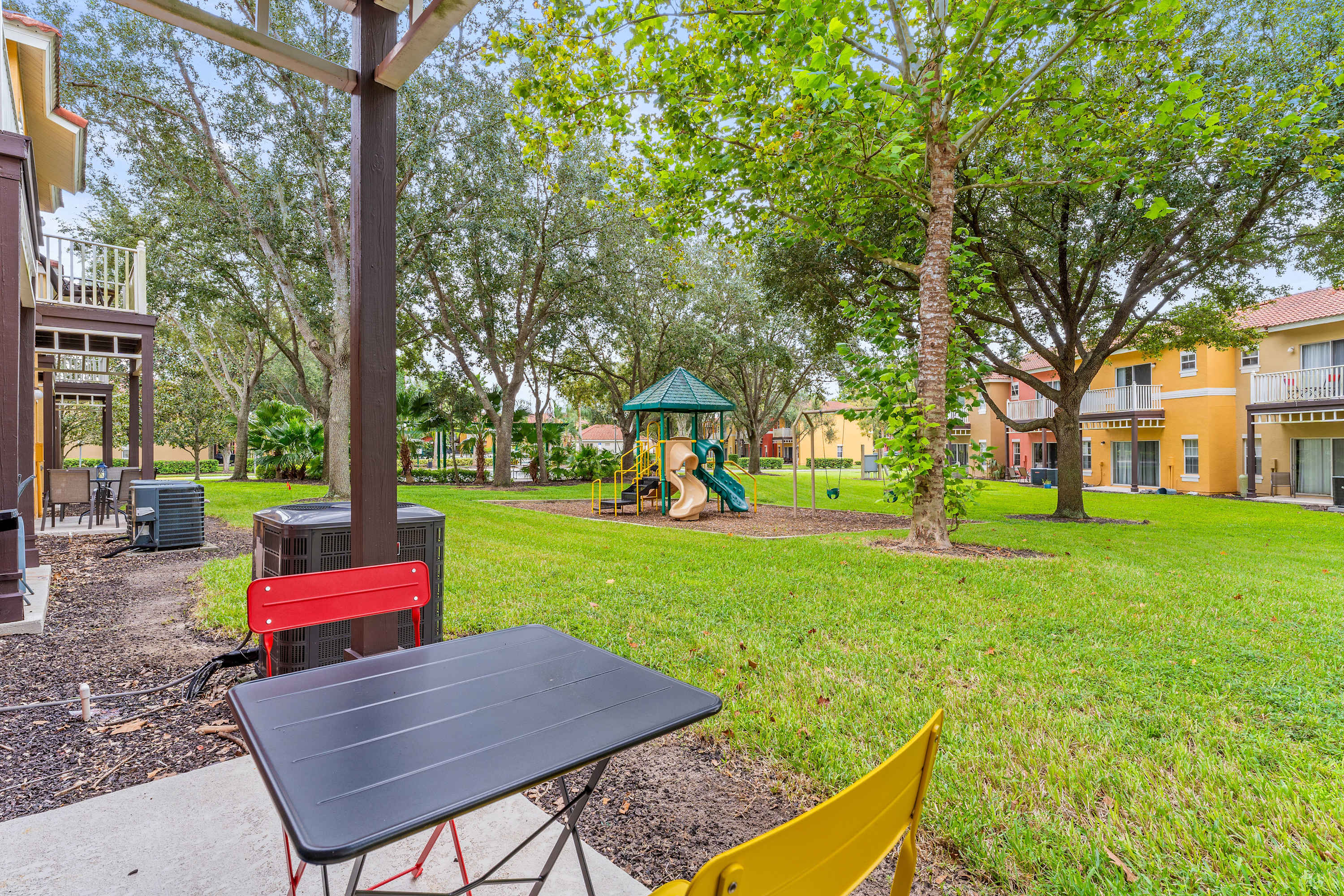 Step outside to enjoy a shaded overhang, grassy backyard, and even a playground just beyond for little ones to explore. Thoughtful extras like foam blocks and a bean bag toss in the children’s room, plus a collection of board games and puzzles, make this home ideal for families. With space to gather, play, and relax, this Emerald Island retreat is the perfect backdrop for your Orlando getaway.