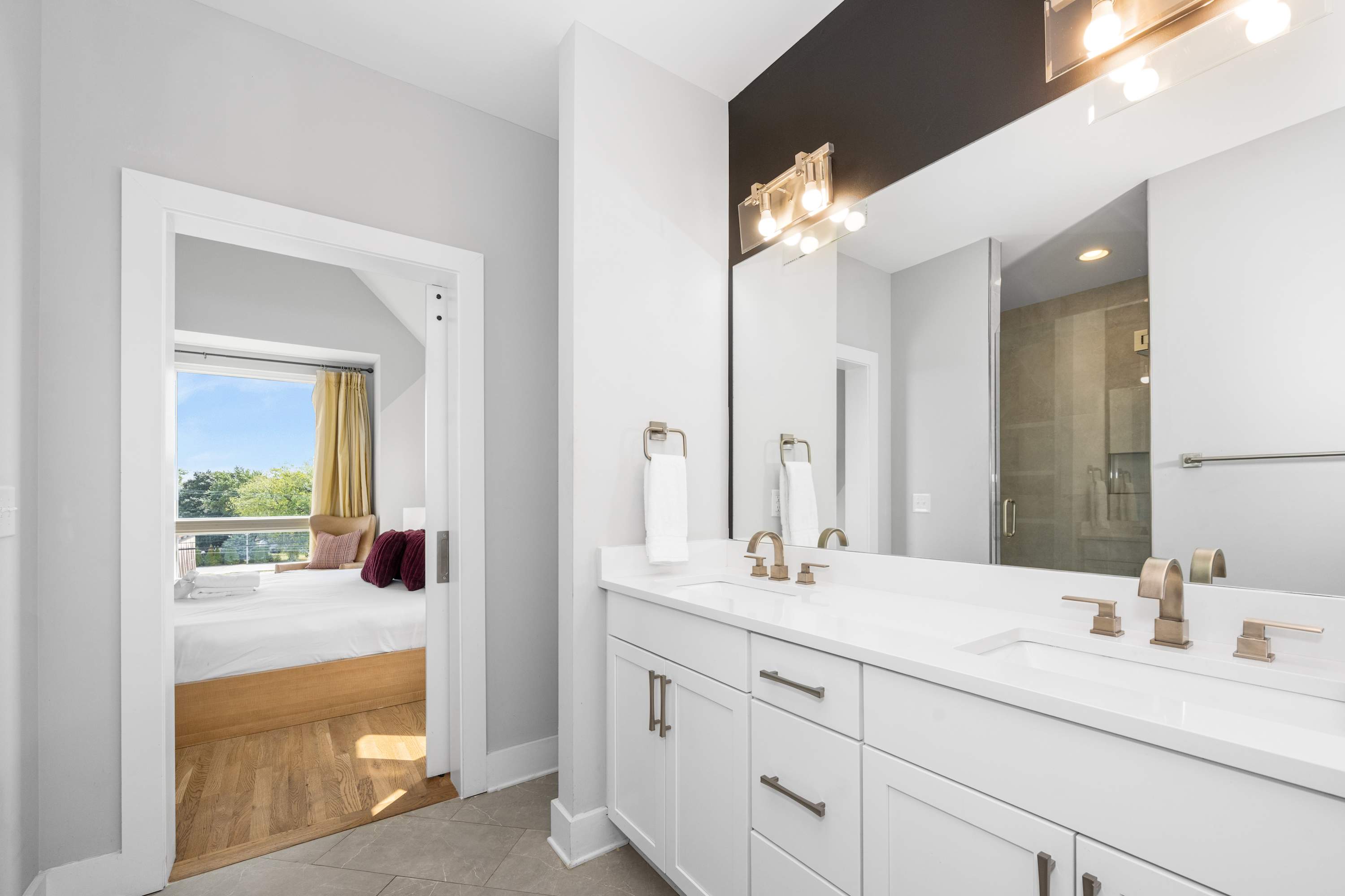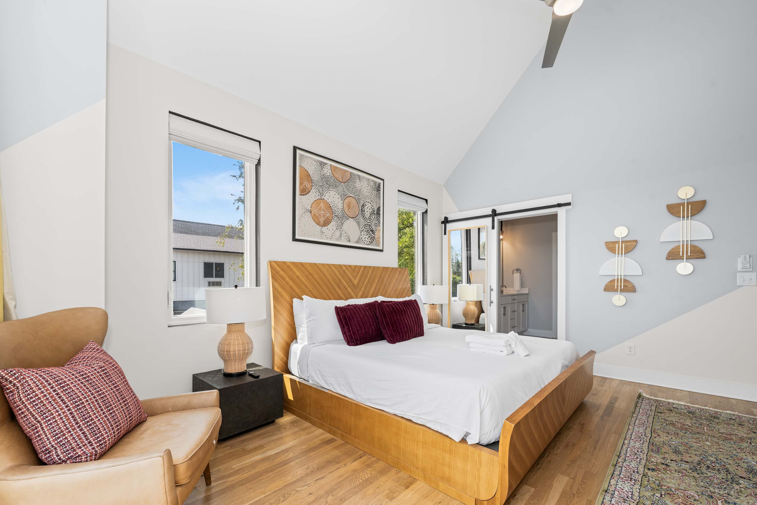 • Primary Bedroom: King bed, Smart TV, walk-in closet, en-suite with dual vanity + walk-in shower