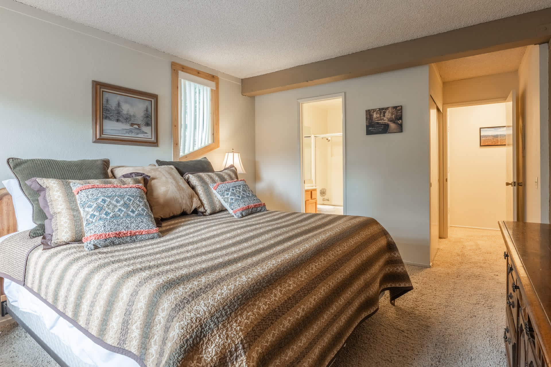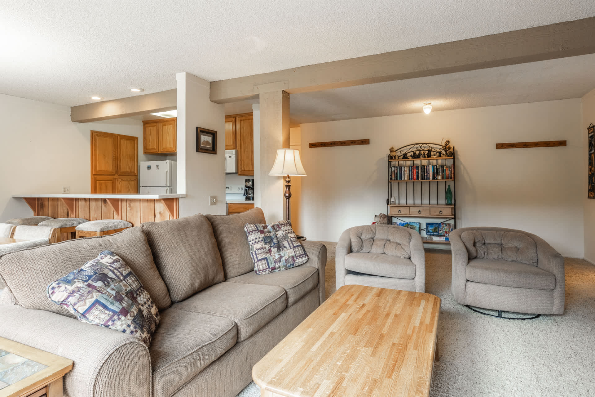 Settle into a comfortable, family-friendly condo designed for easy mountain getaways. The home sleeps 6 across two ensuite bedrooms plus a living room sleeper sofa, giving your group space to spread out.