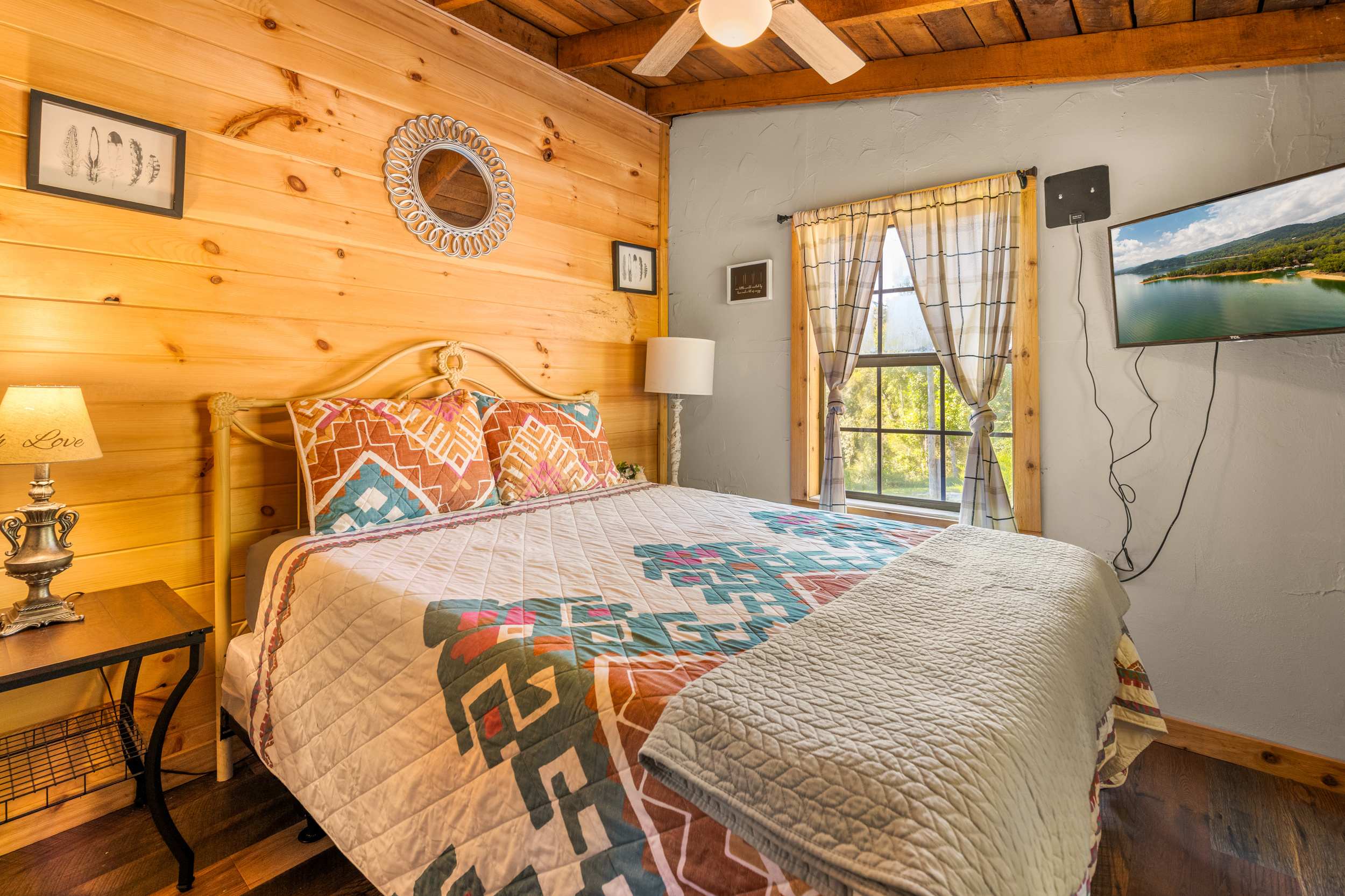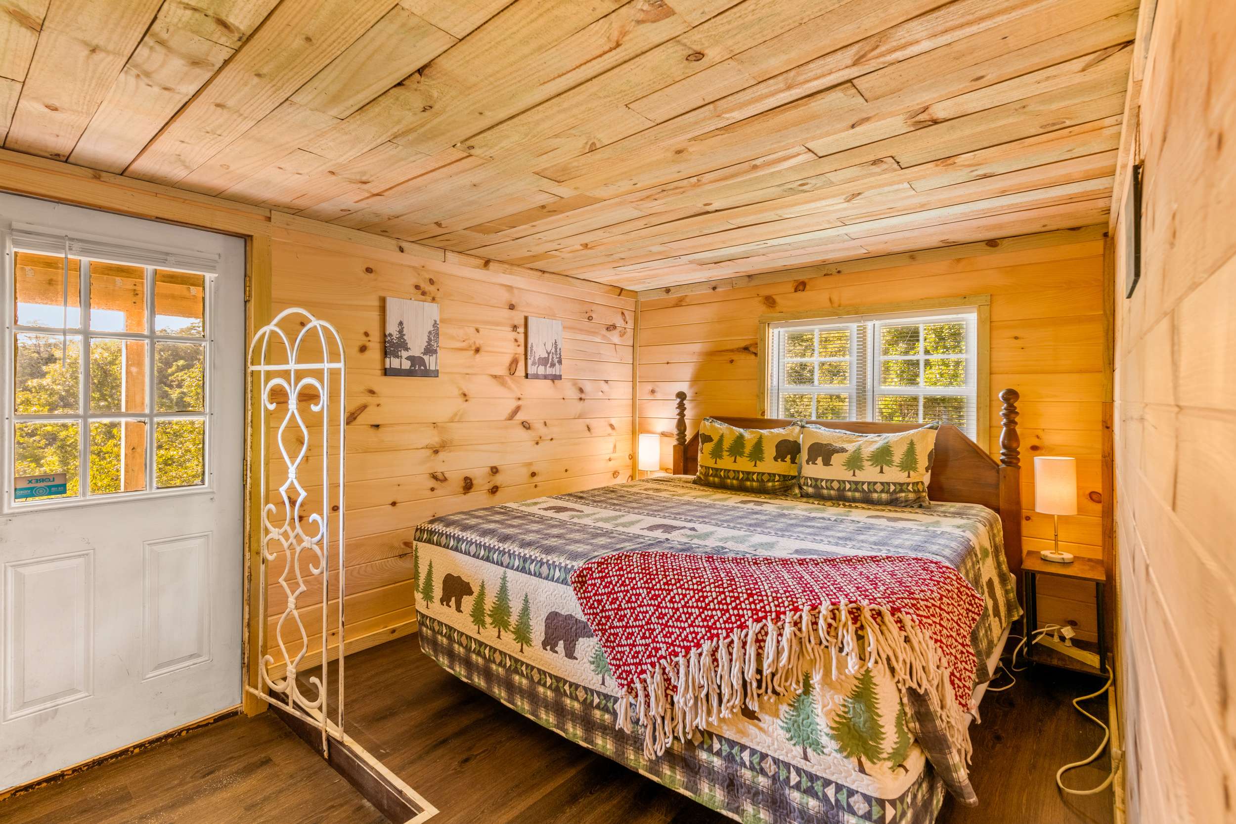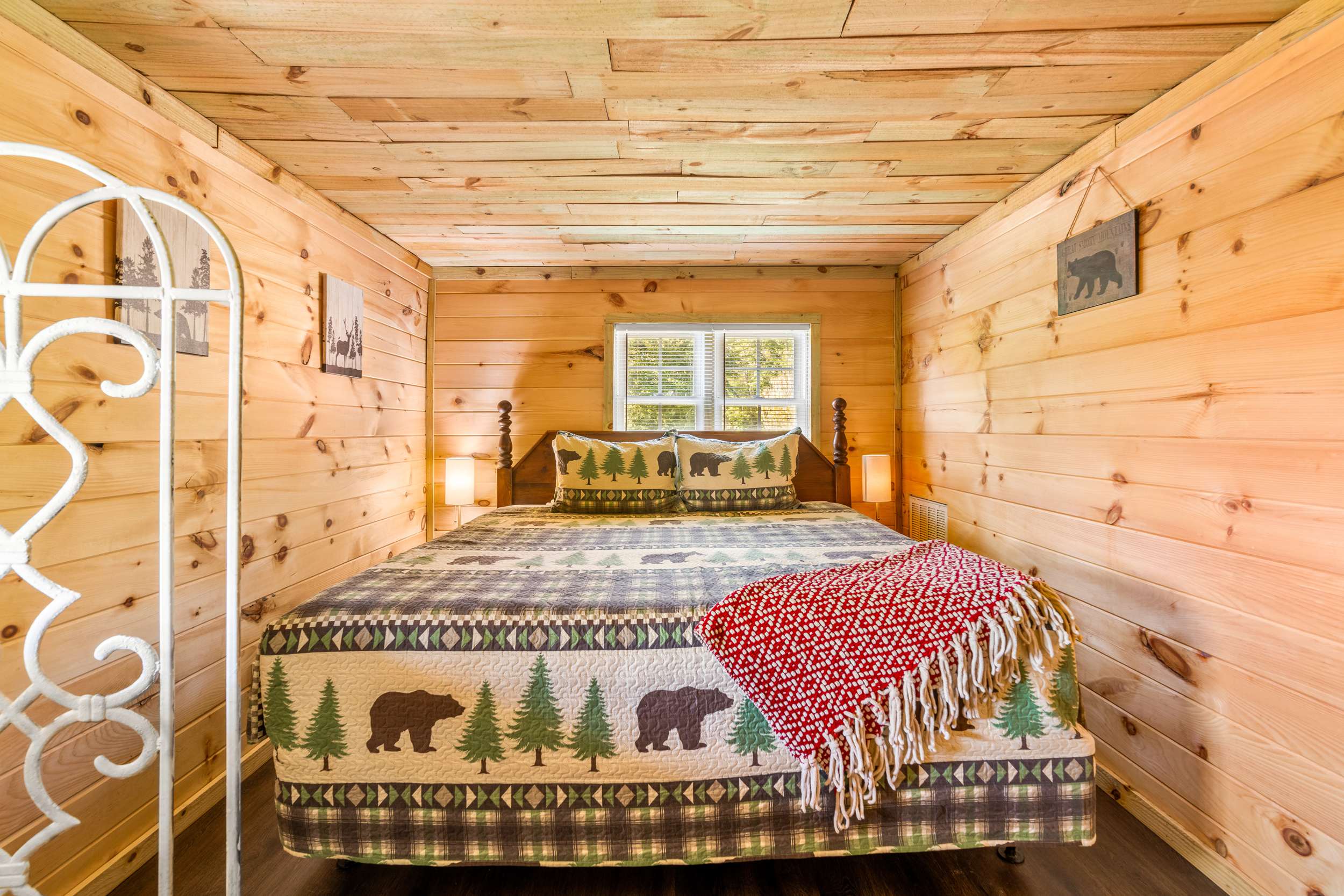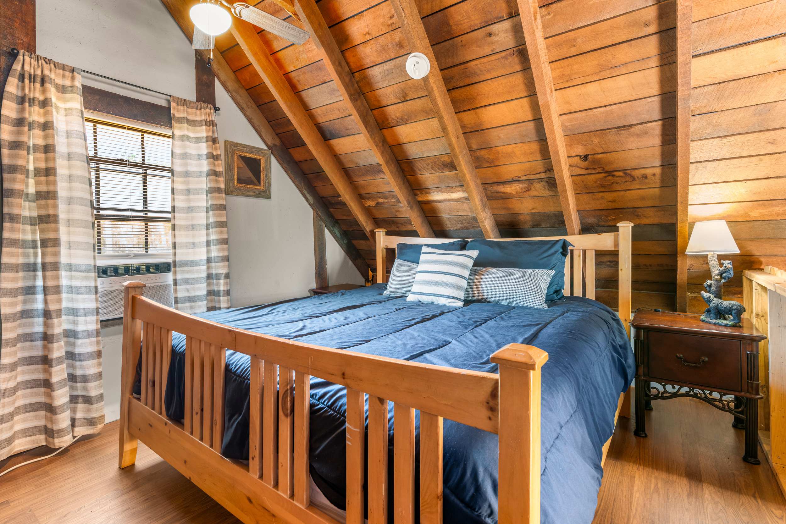 • Bedroom 2 (Loft): King bed; accessed via a steep ladder (not suitable for small children or guests with mobility issues)