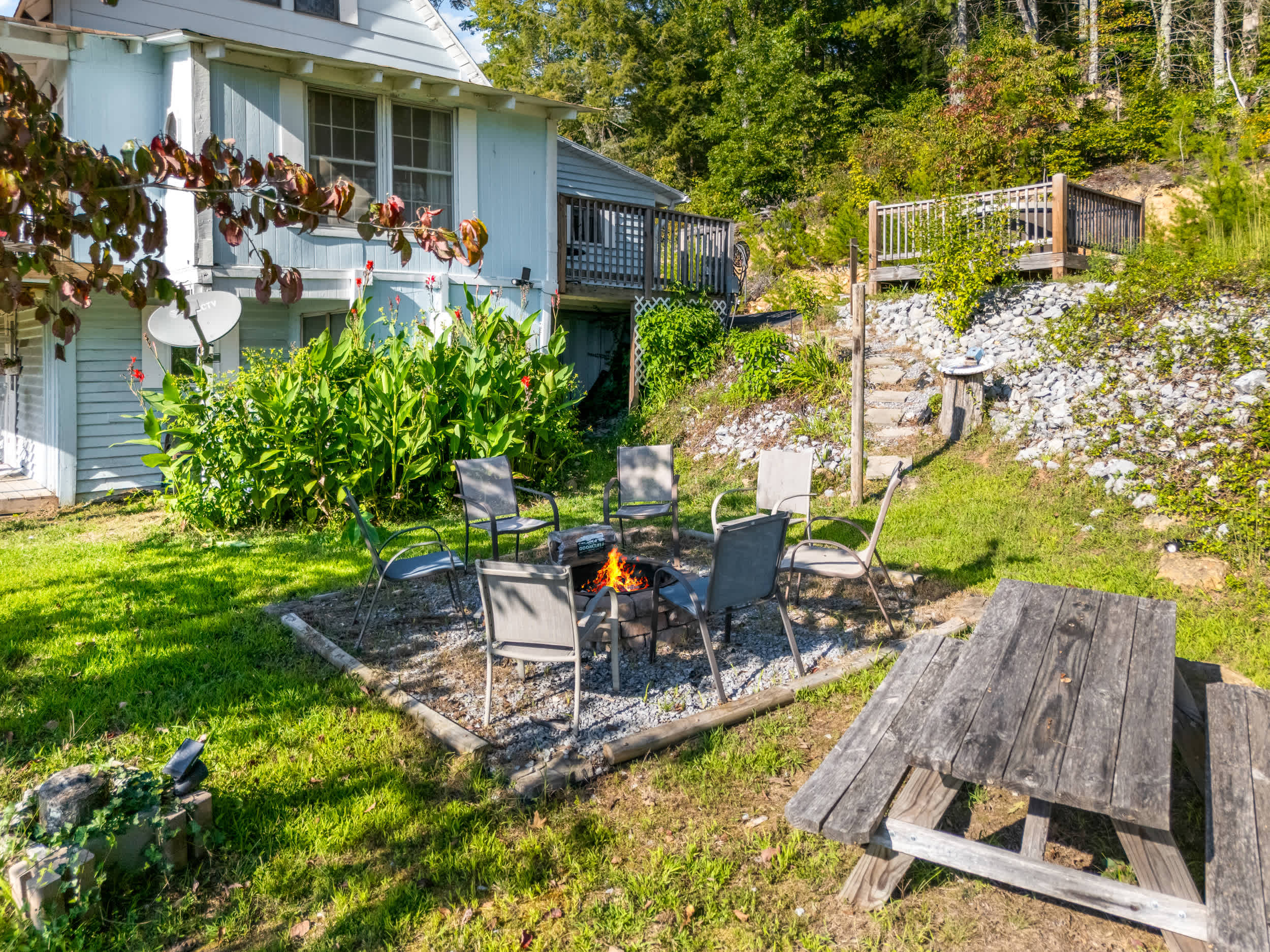 Spend evenings soaking in the private hot tub, roasting s’mores around the fire pit, or lounging on the outdoor seating. Downstairs, an open family suite offers extra space to spread out with a Smart TV—great for movie nights. You’ll also have a laptop-friendly workspace for checking in with work, plus a washer/dryer in the home for added convenience. Parking is simple with room for up to 4 vehicles in the private gravel/paved area.