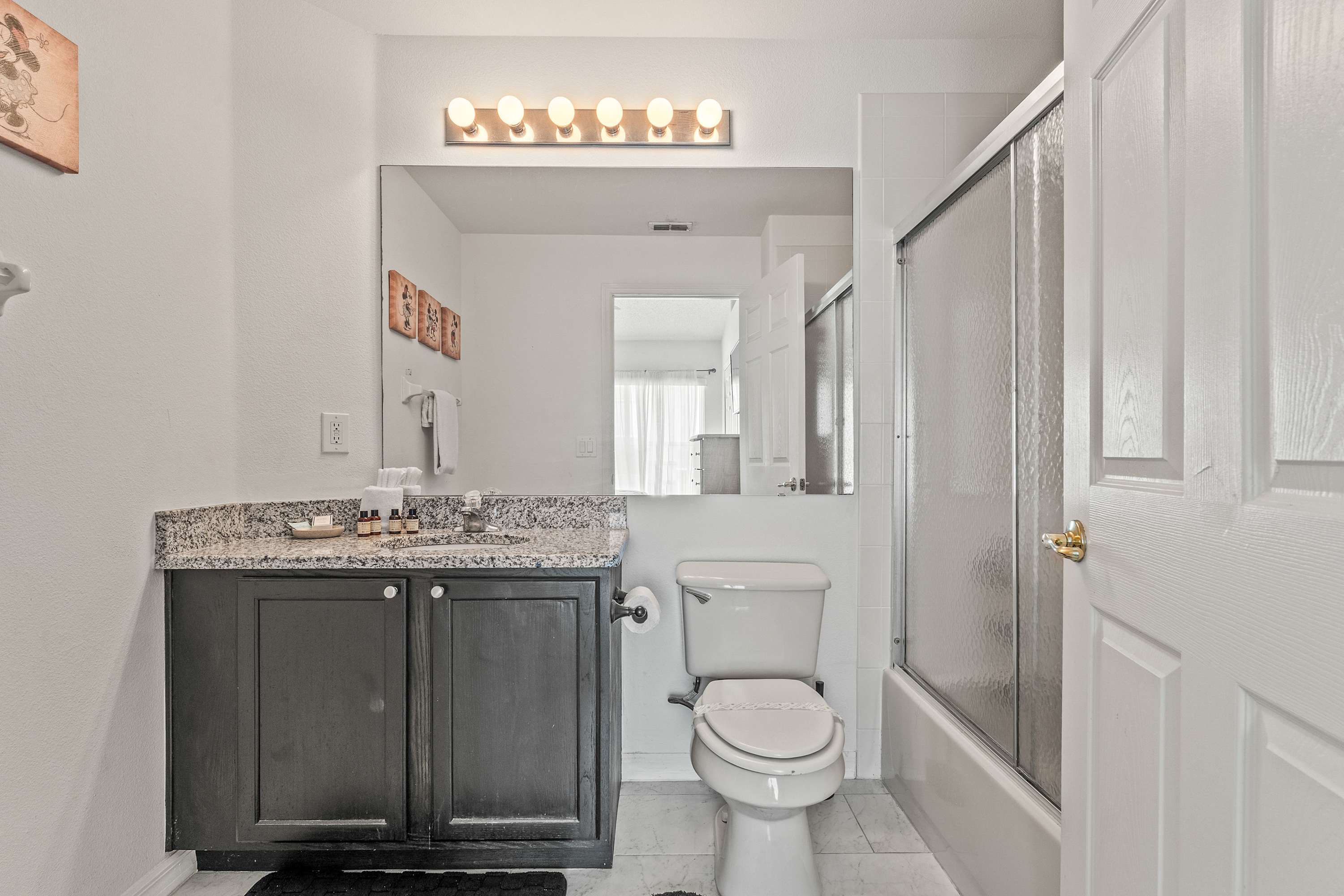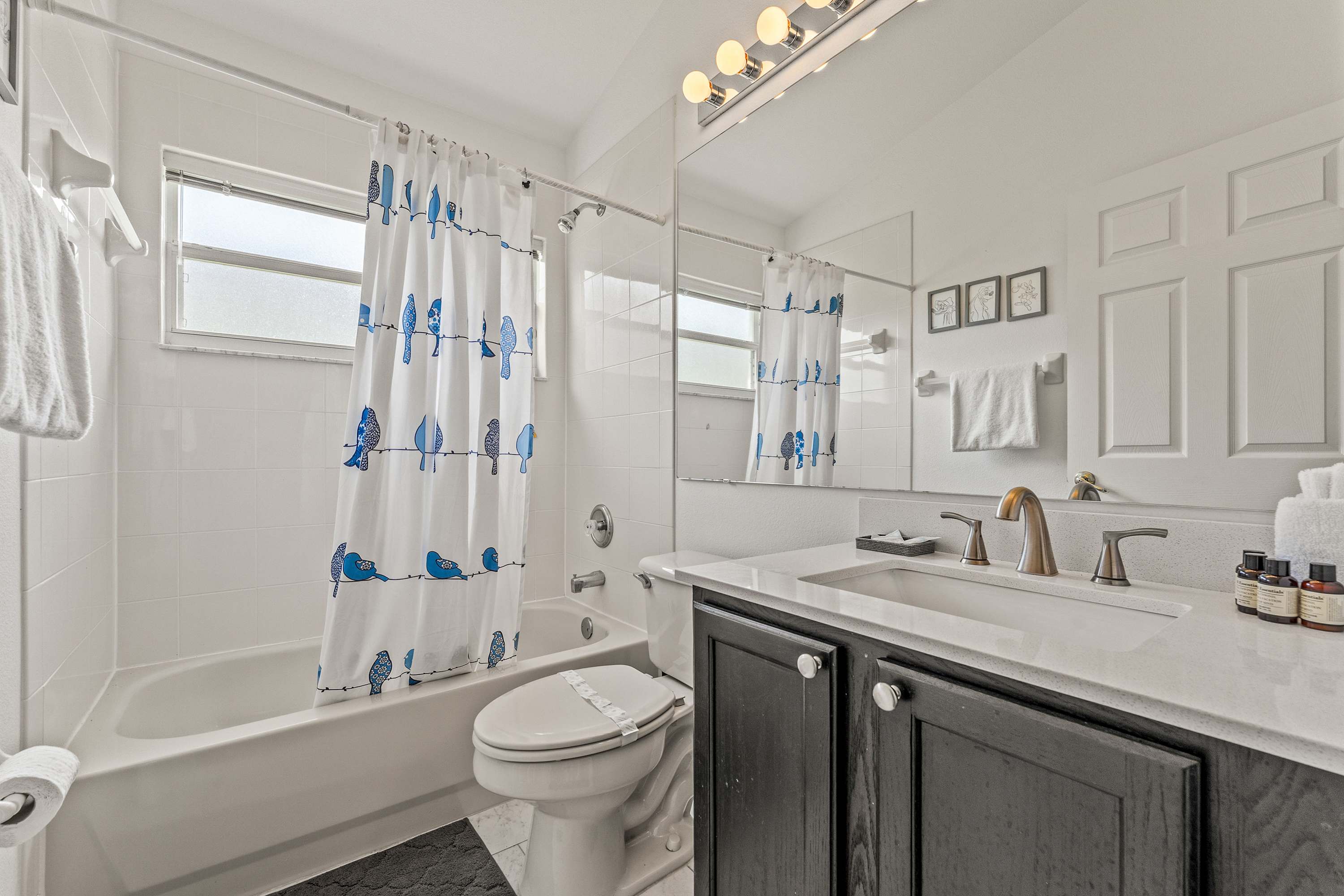 This home also includes an additional full guest bathroom with a single vanity and a shower/tub combo.