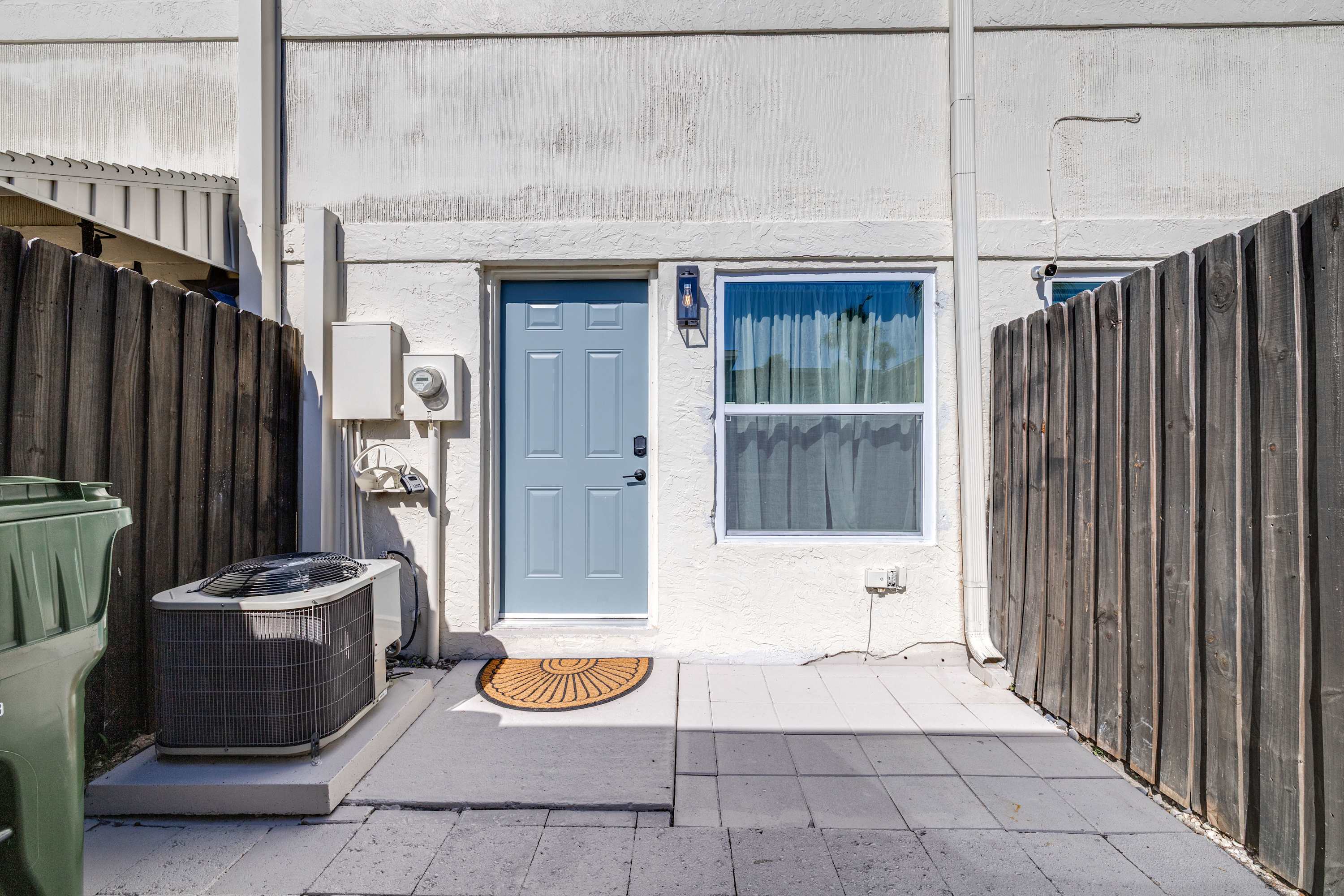 • 1 external camera is located outside of the back door monitoring entrance, backyard, back gate towards the parking lot.