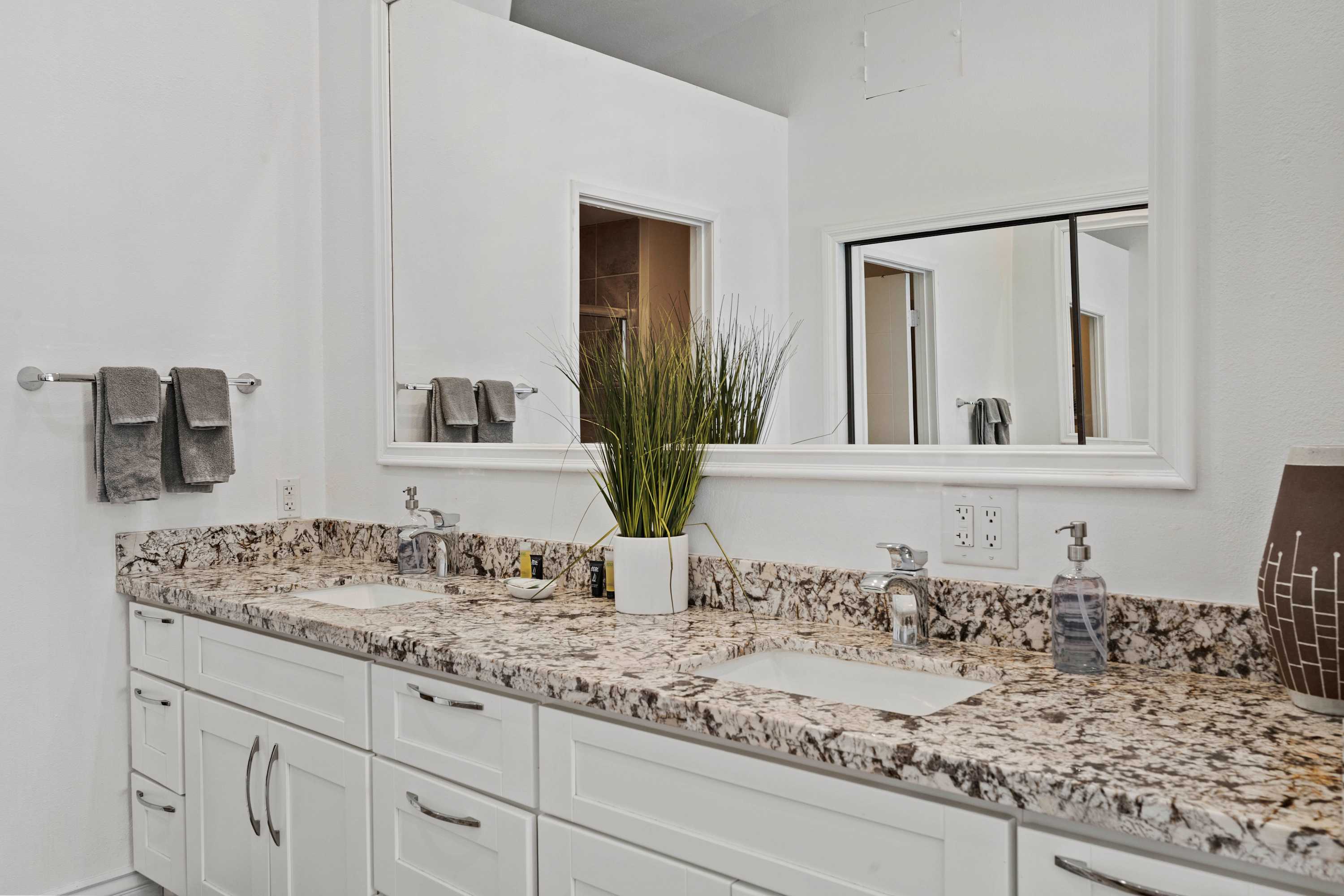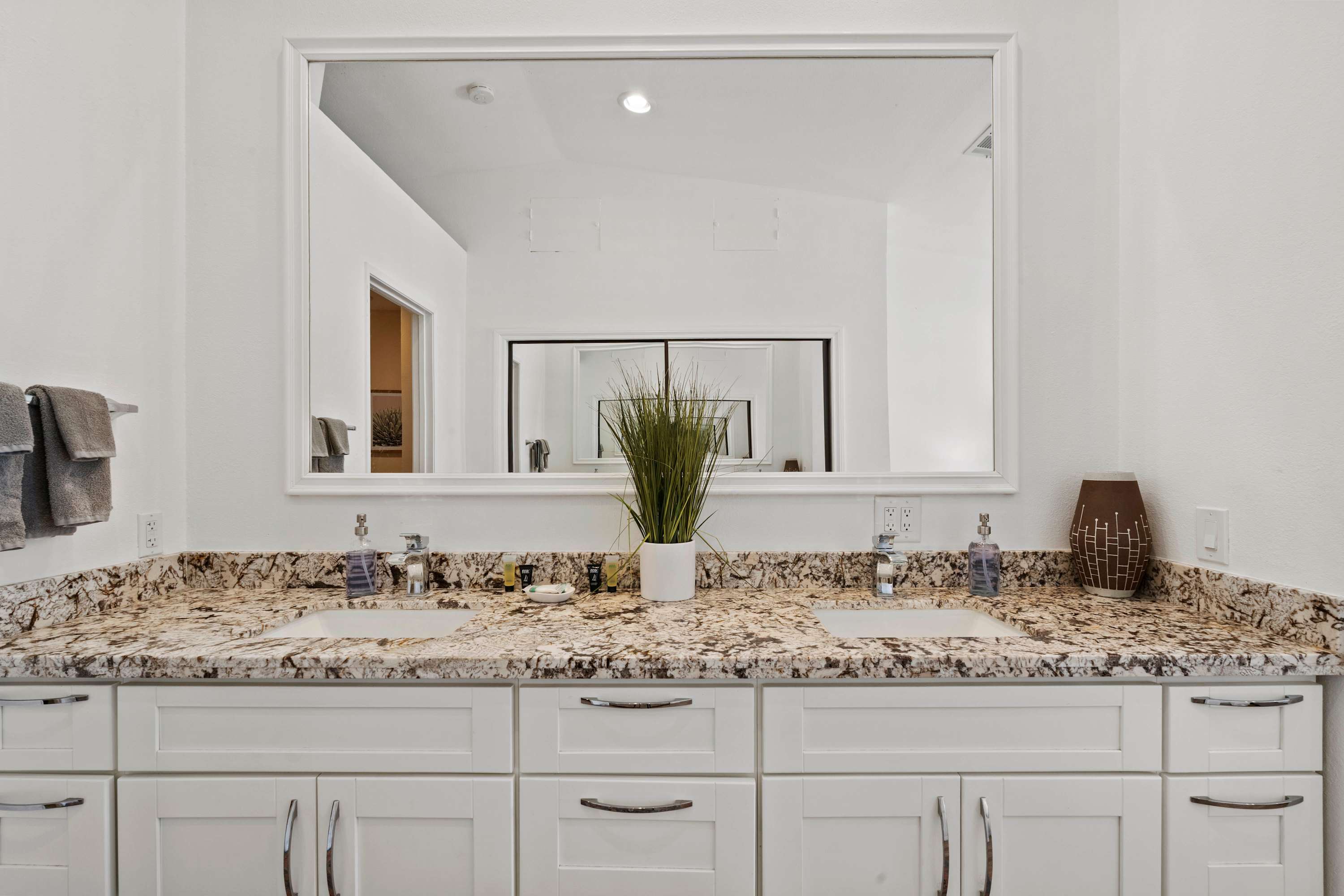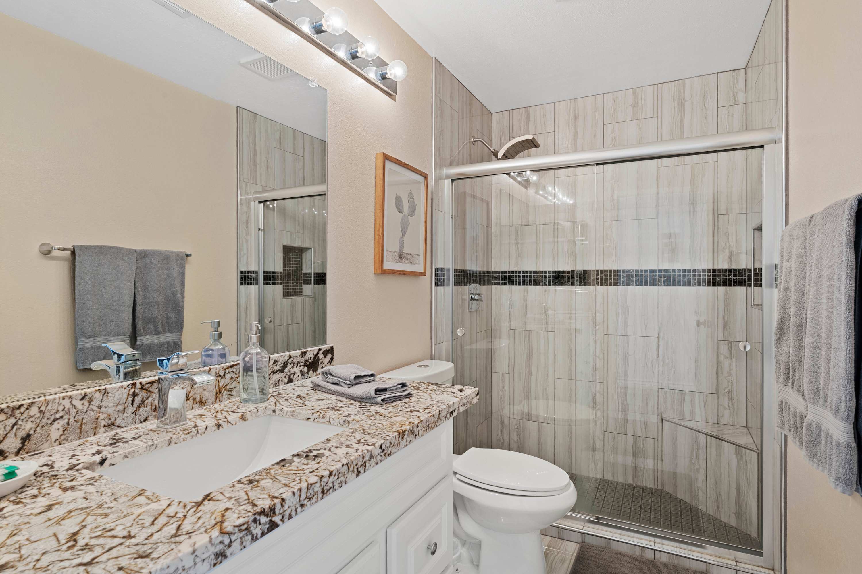 The home also includes an additional full guest bathroom with a single vanity and shower/tub combo.