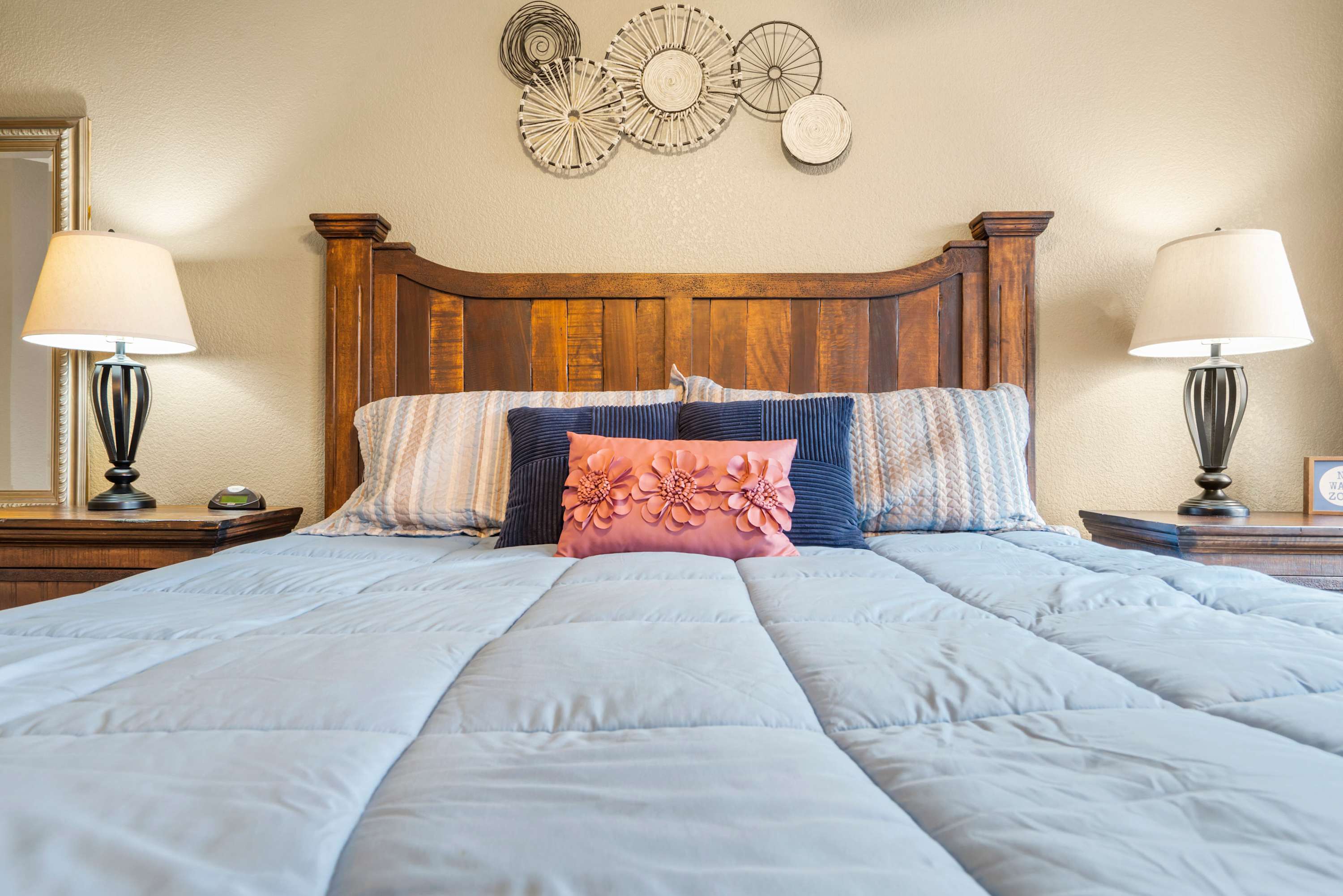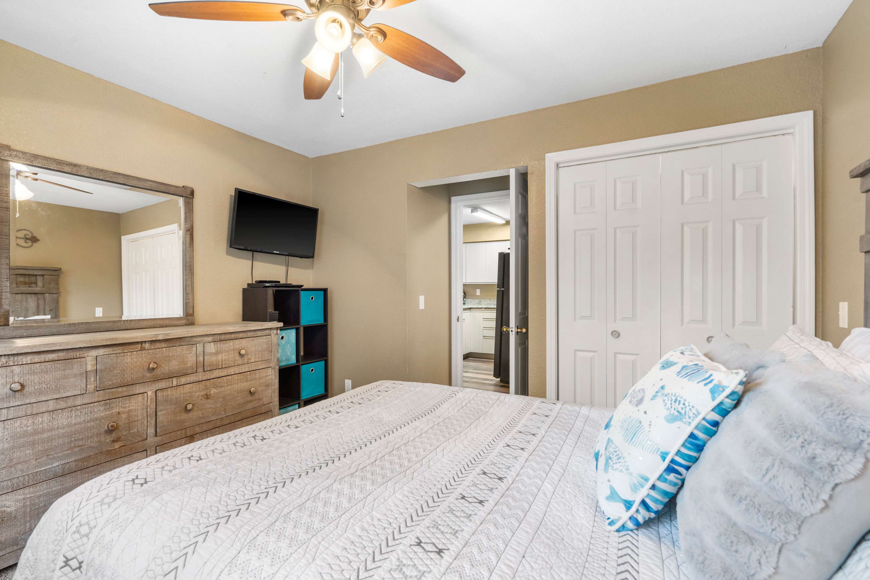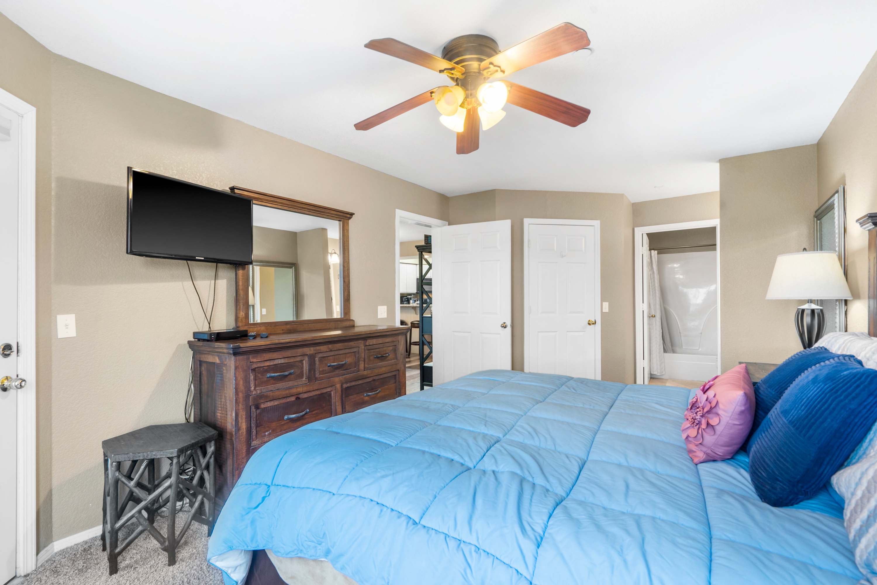 Bedroom #1 includes a queen size bed and a smart TV.