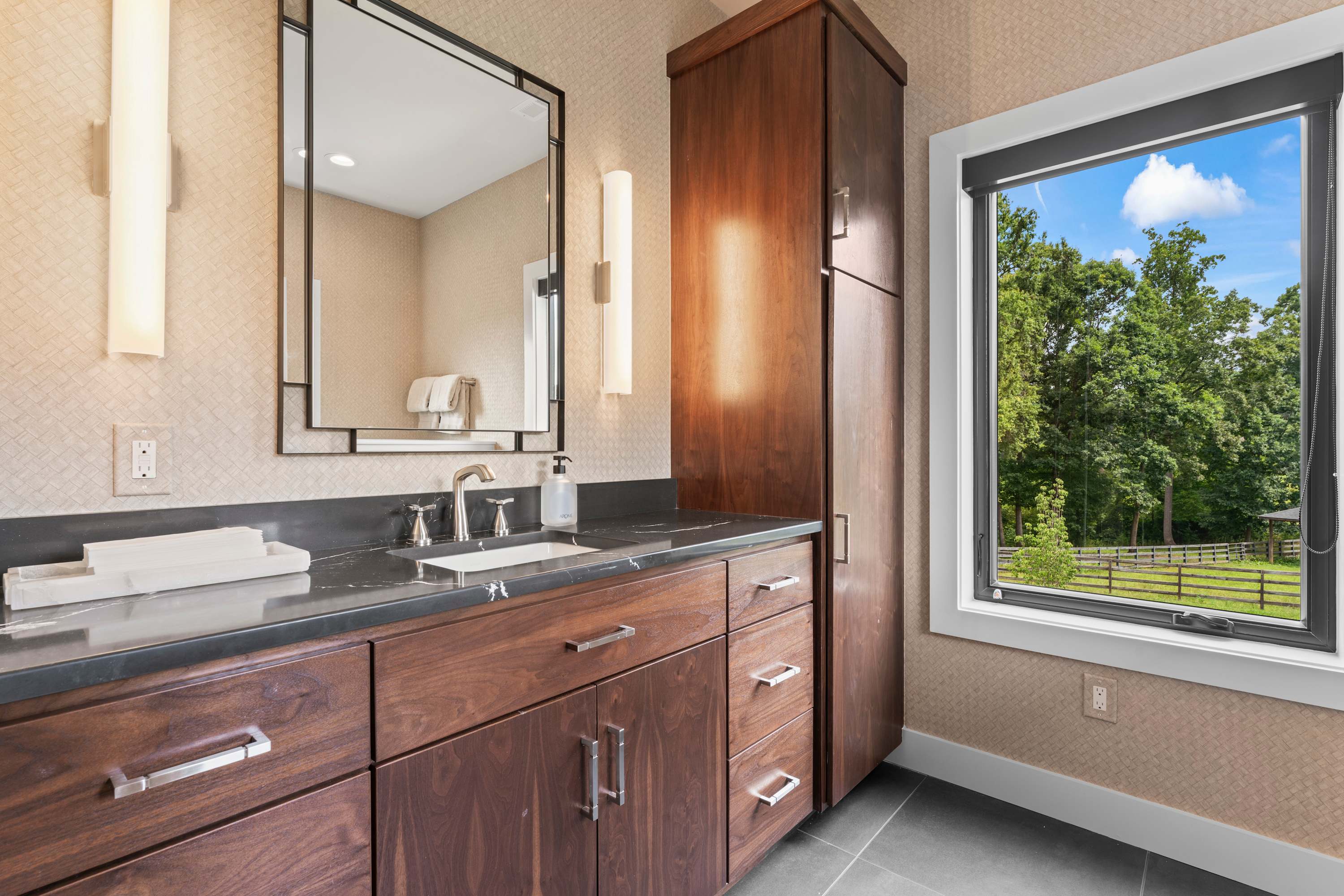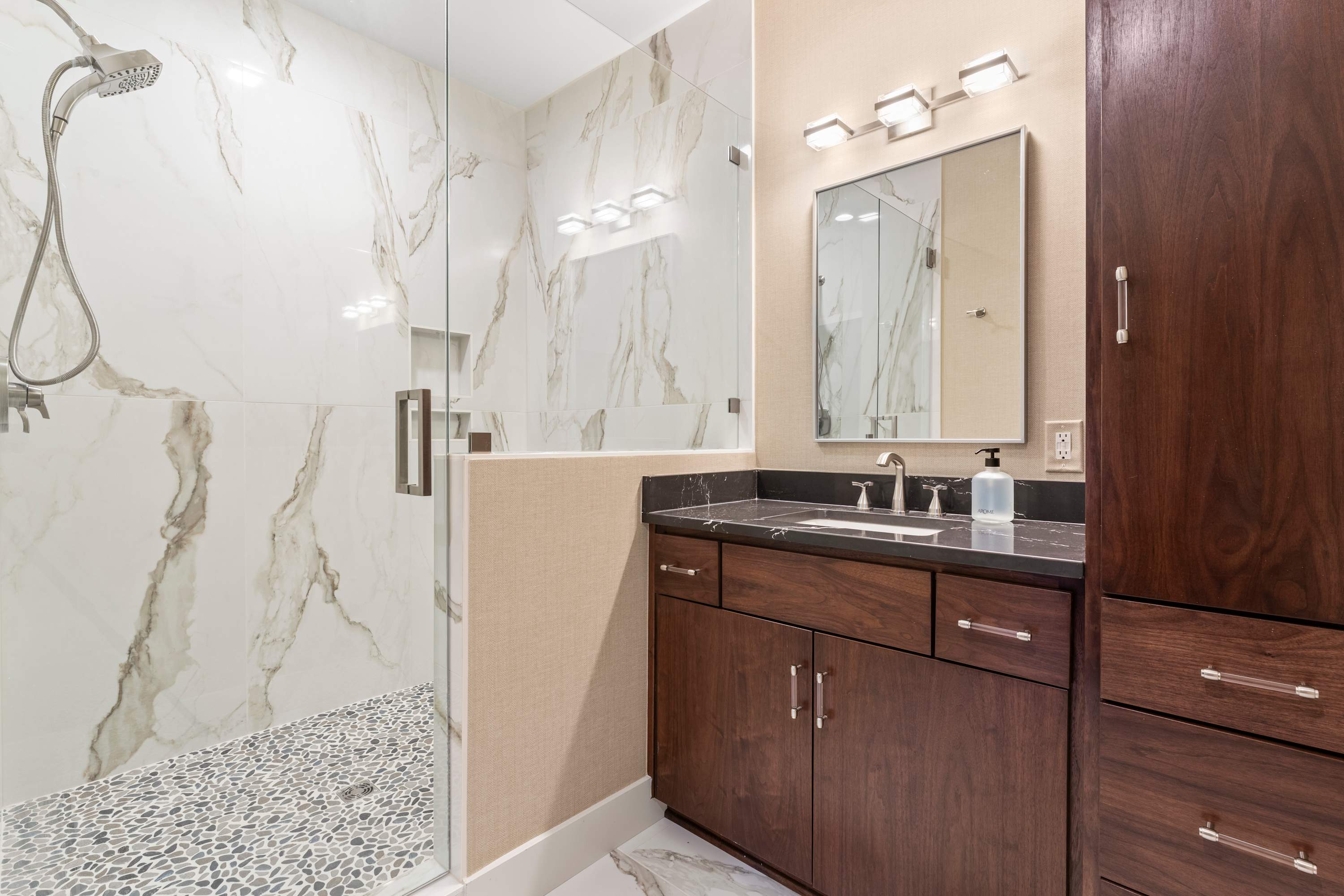 The home also includes a full guest bathroom with a single vanity and a walk-in shower.