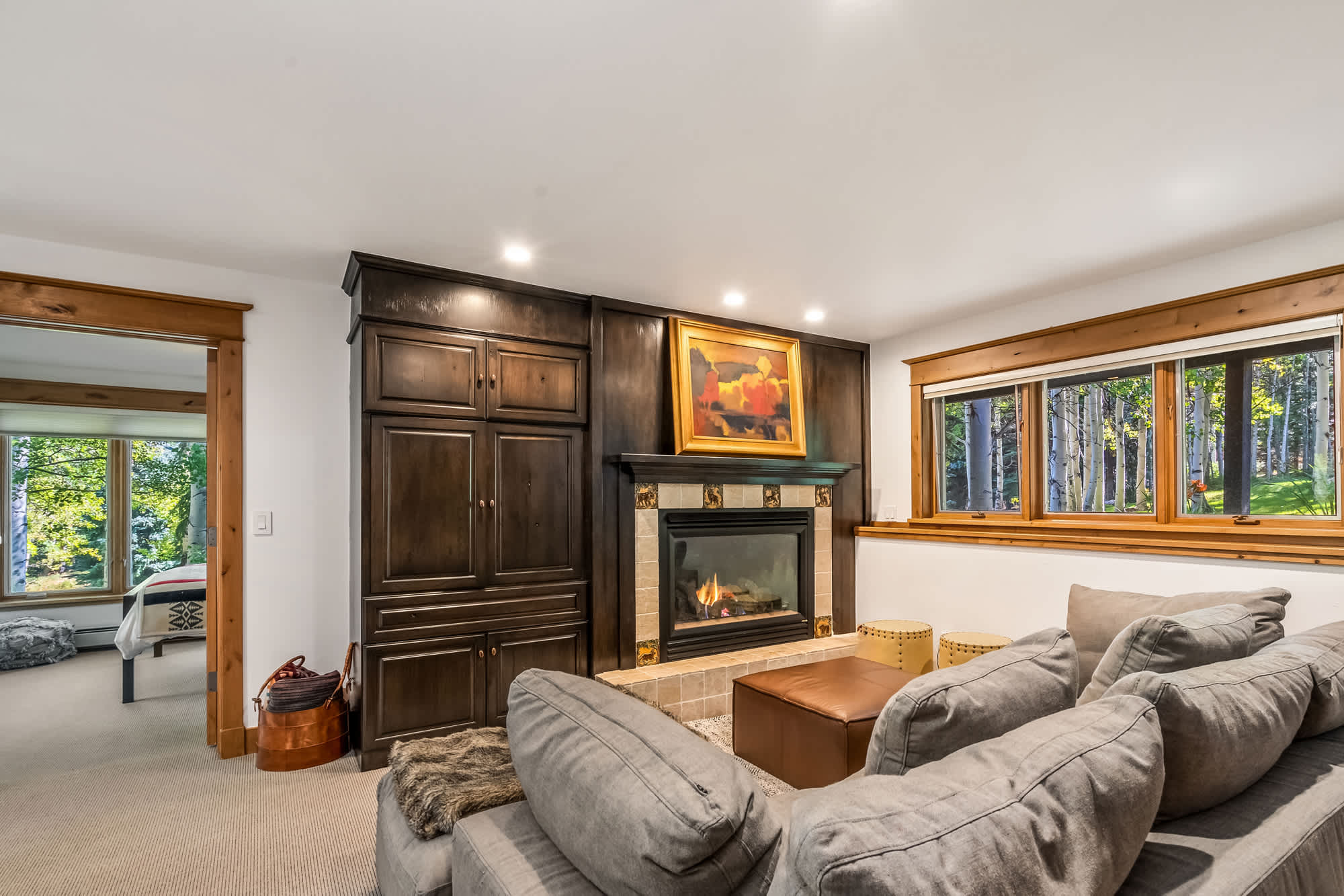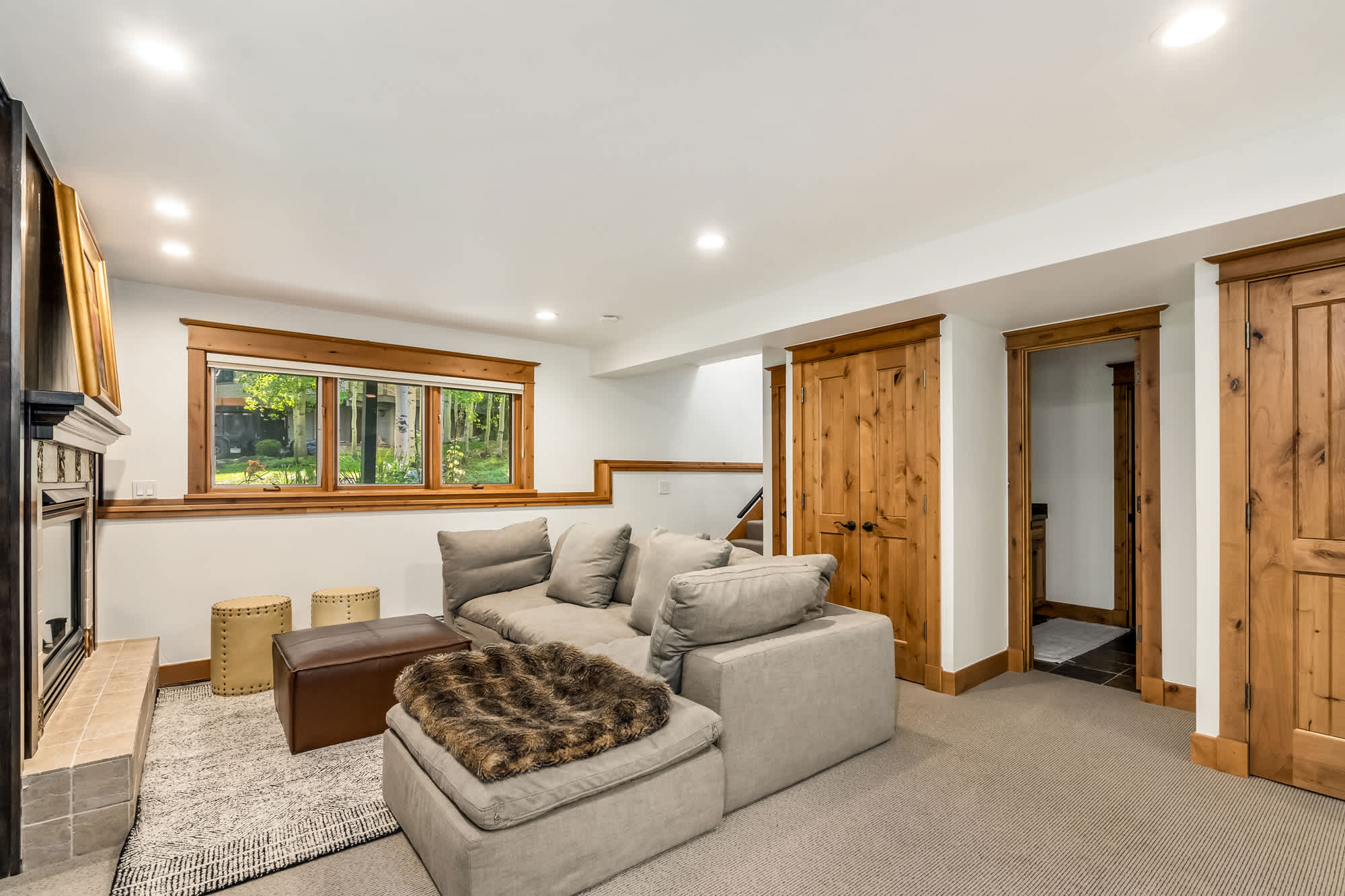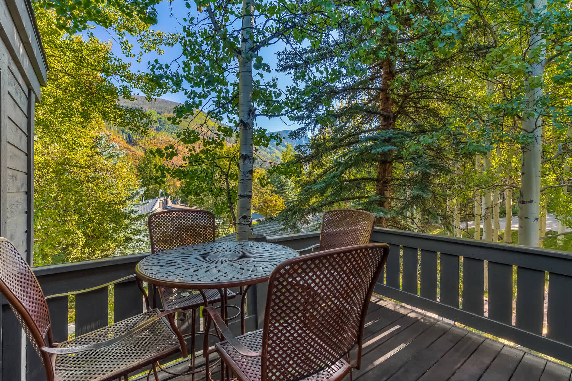 The fun continues in the game room, where a smart TV, board games, and an oversized couch set the stage for cozy movie nights by the fire. A wet bar with a mini refrigerator and microwave adds convenience, making this the ultimate hangout space. Step outside to take in the fresh mountain air on the deck, complete with multiple tables for alfresco dining and tree-lined views. After a day of exploring, unwind in the hot tub, fire up the grill, or simply relax under the stars—this home makes every moment in Vail memorable.