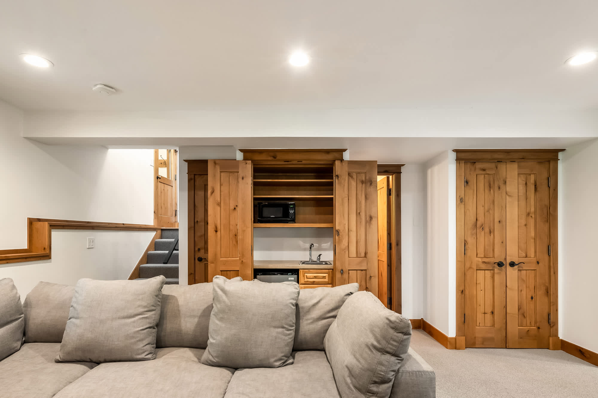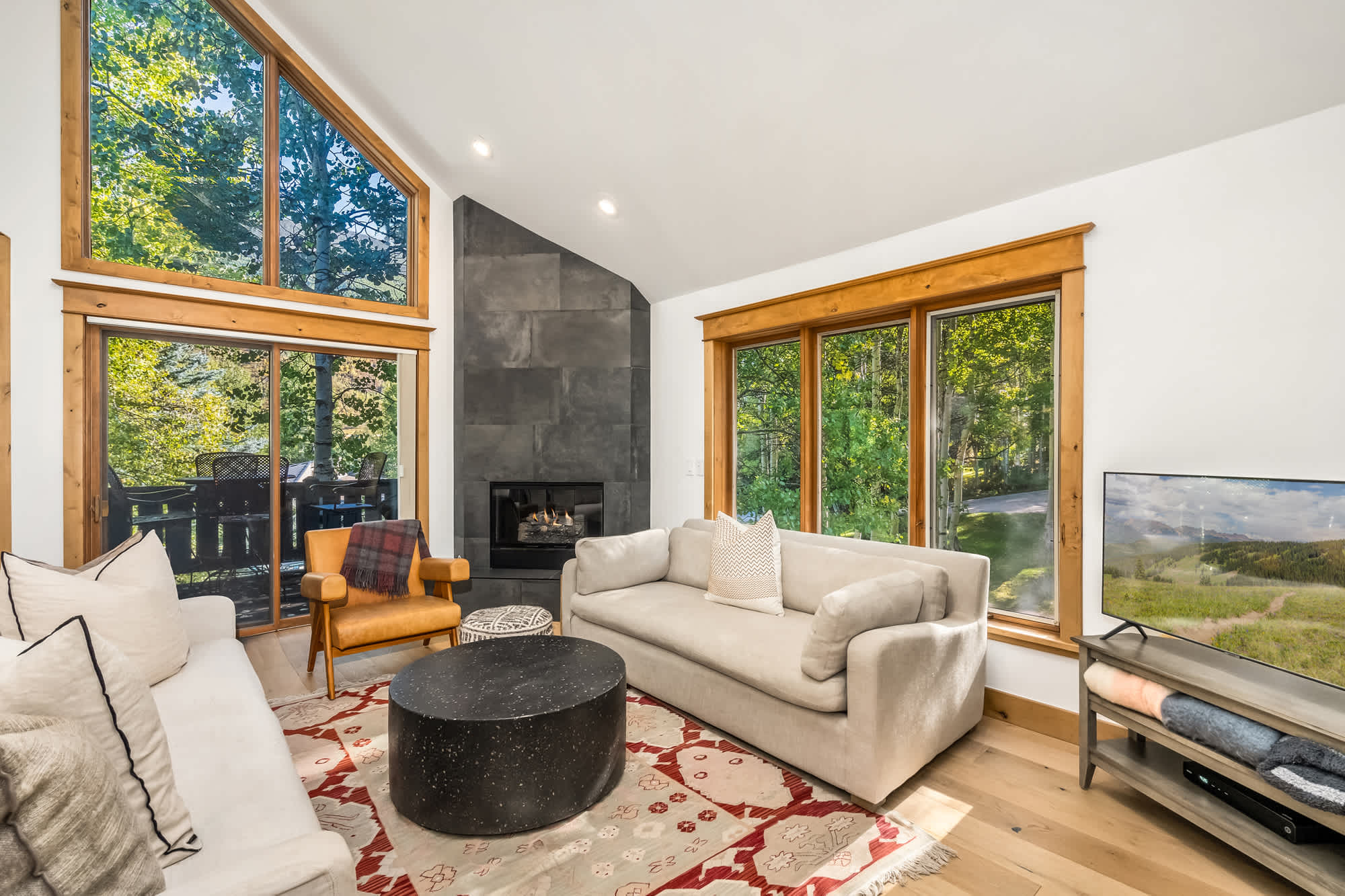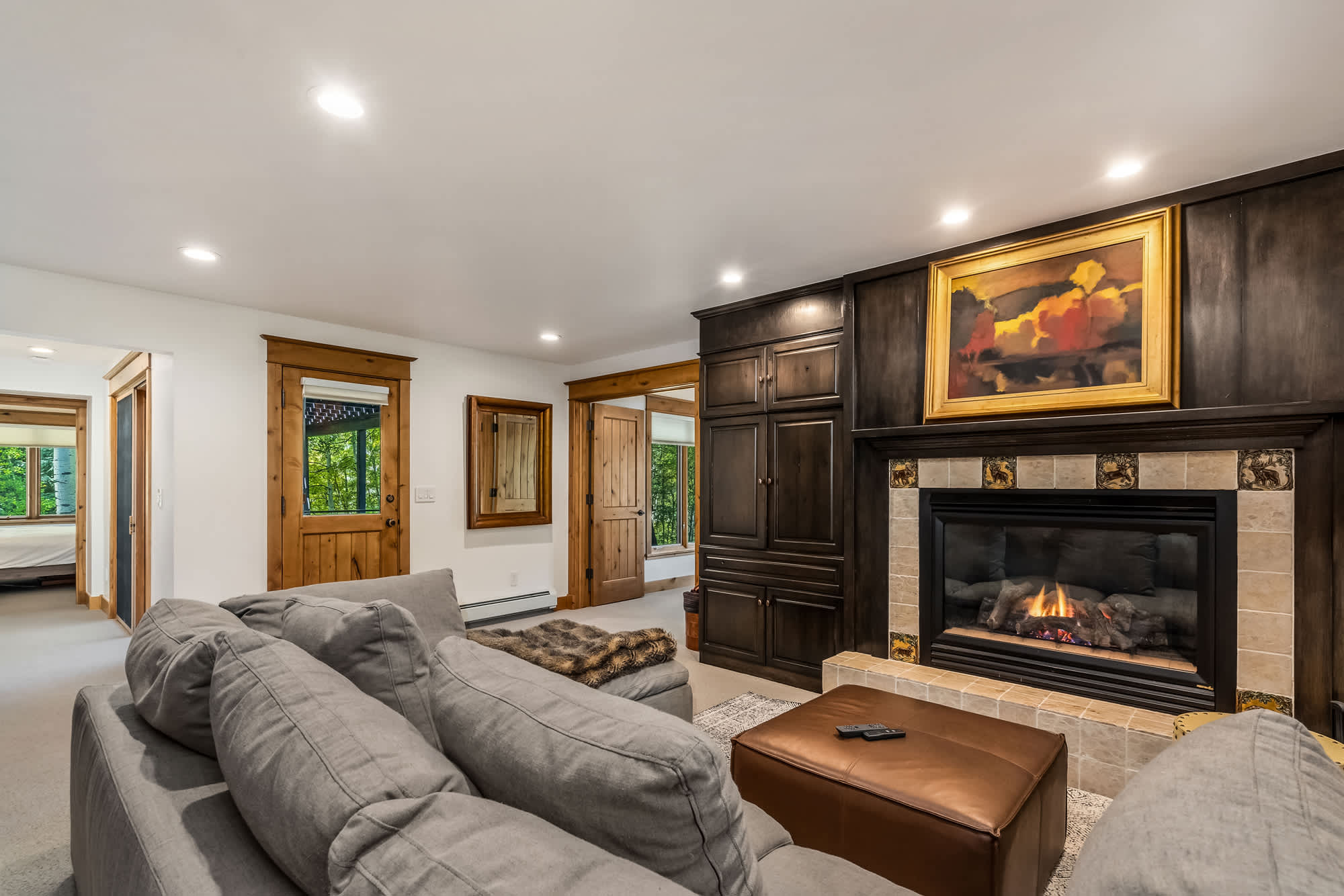 The fun continues in the game room, where a smart TV, board games, and an oversized couch set the stage for cozy movie nights by the fire. A wet bar with a mini refrigerator and microwave adds convenience, making this the ultimate hangout space. Step outside to take in the fresh mountain air on the deck, complete with multiple tables for alfresco dining and tree-lined views. After a day of exploring, unwind in the hot tub, fire up the grill, or simply relax under the stars—this home makes every moment in Vail memorable.