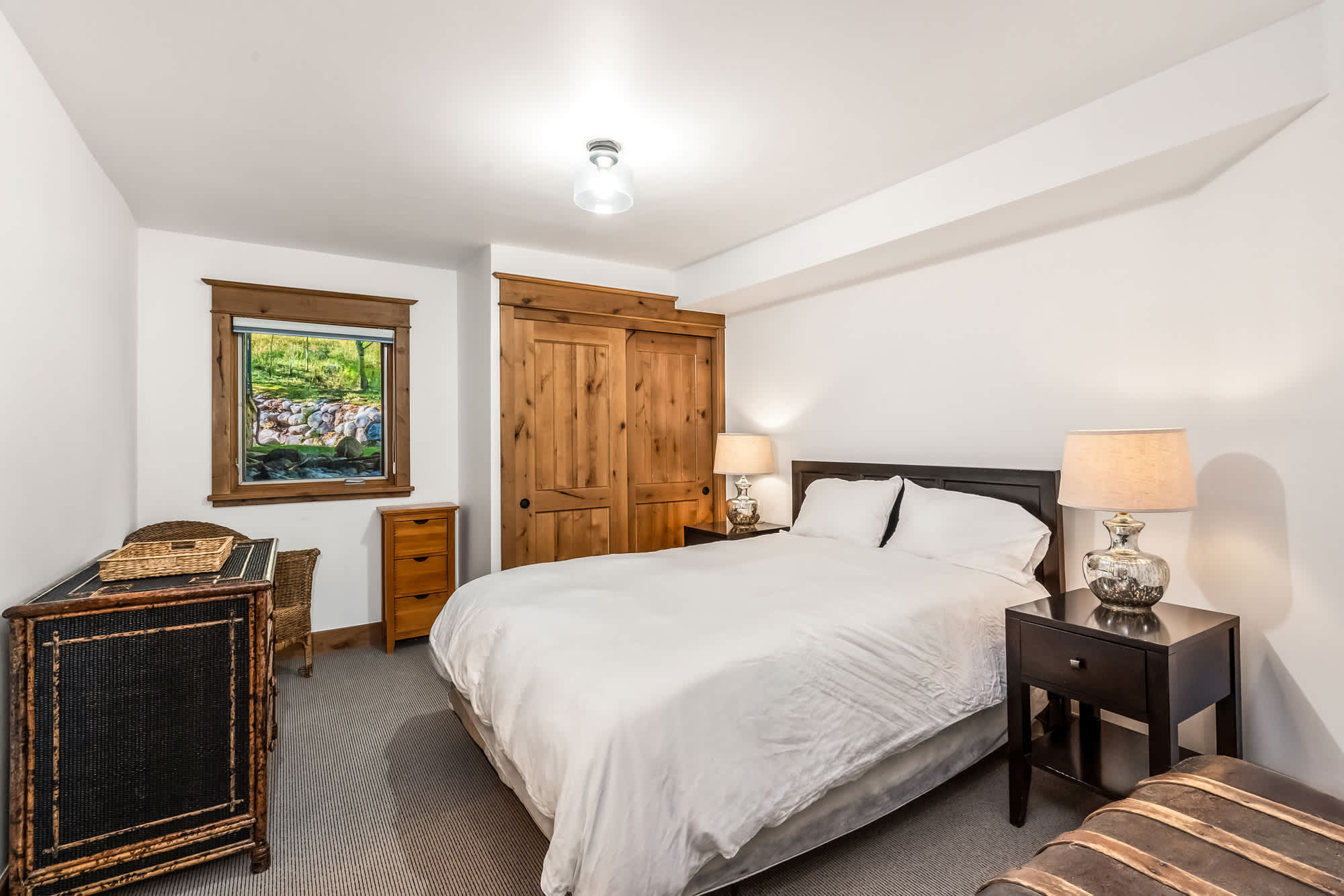 Flex room off of the lower level recreation/media room has a queen size bed.