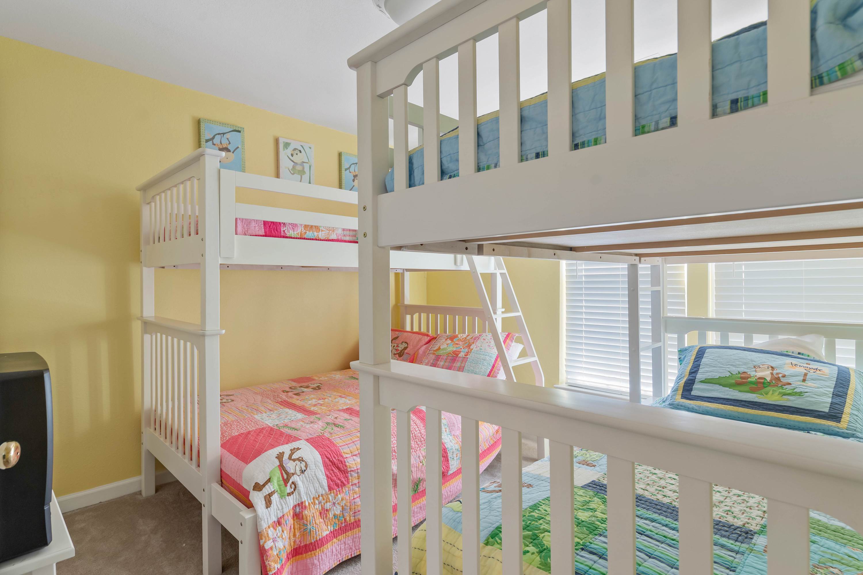 Bedroom #3 includes a set of twin-over-full bunk beds and a set of twin-over-twin bunk beds.