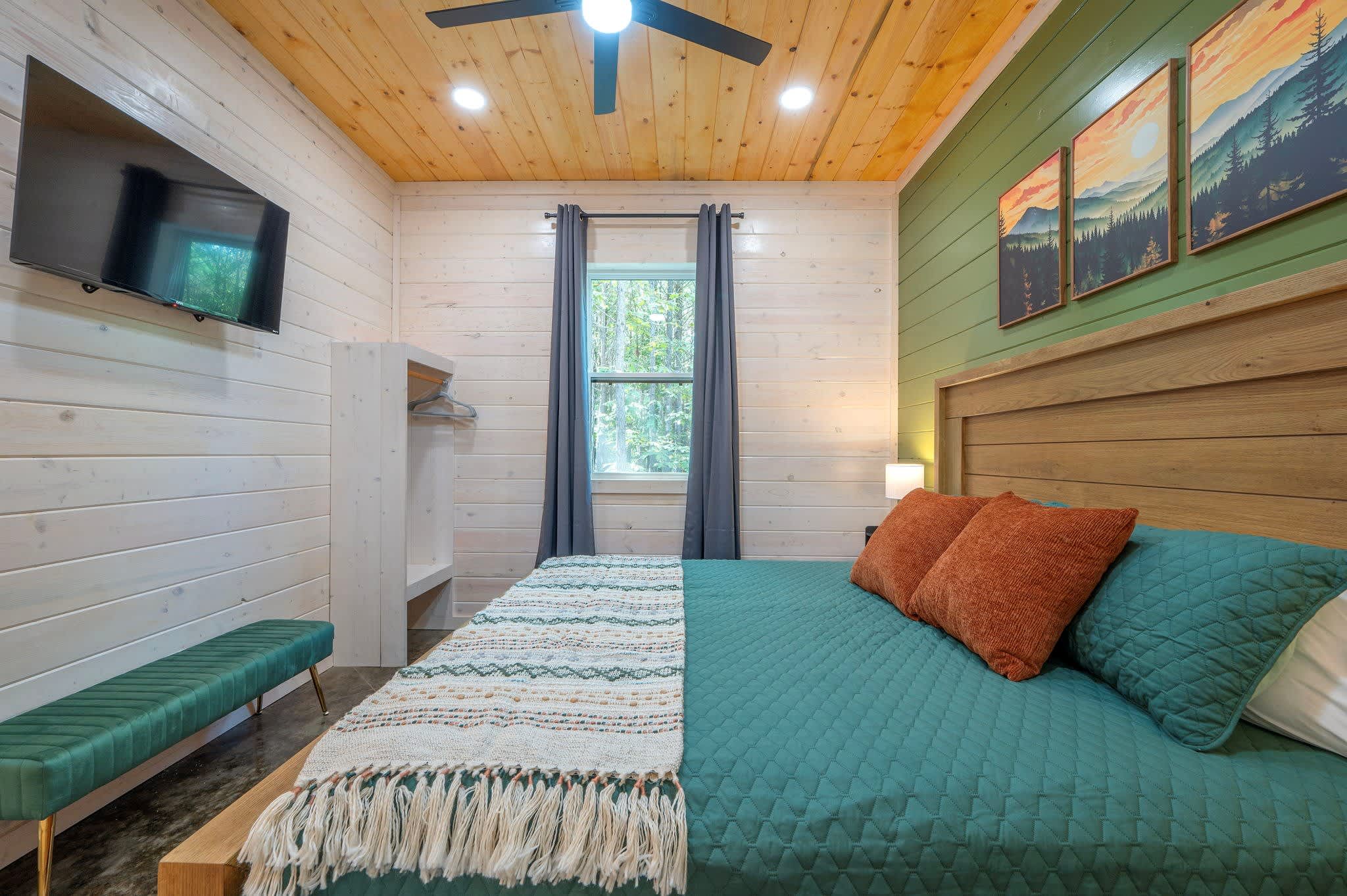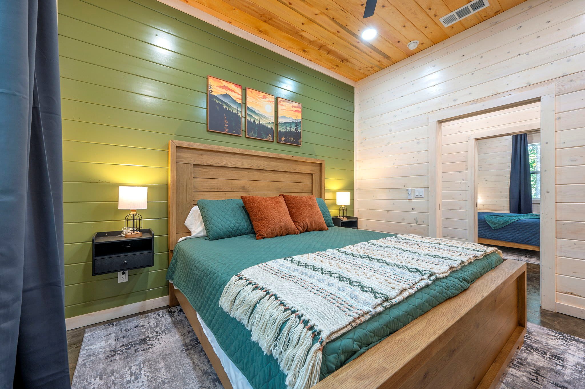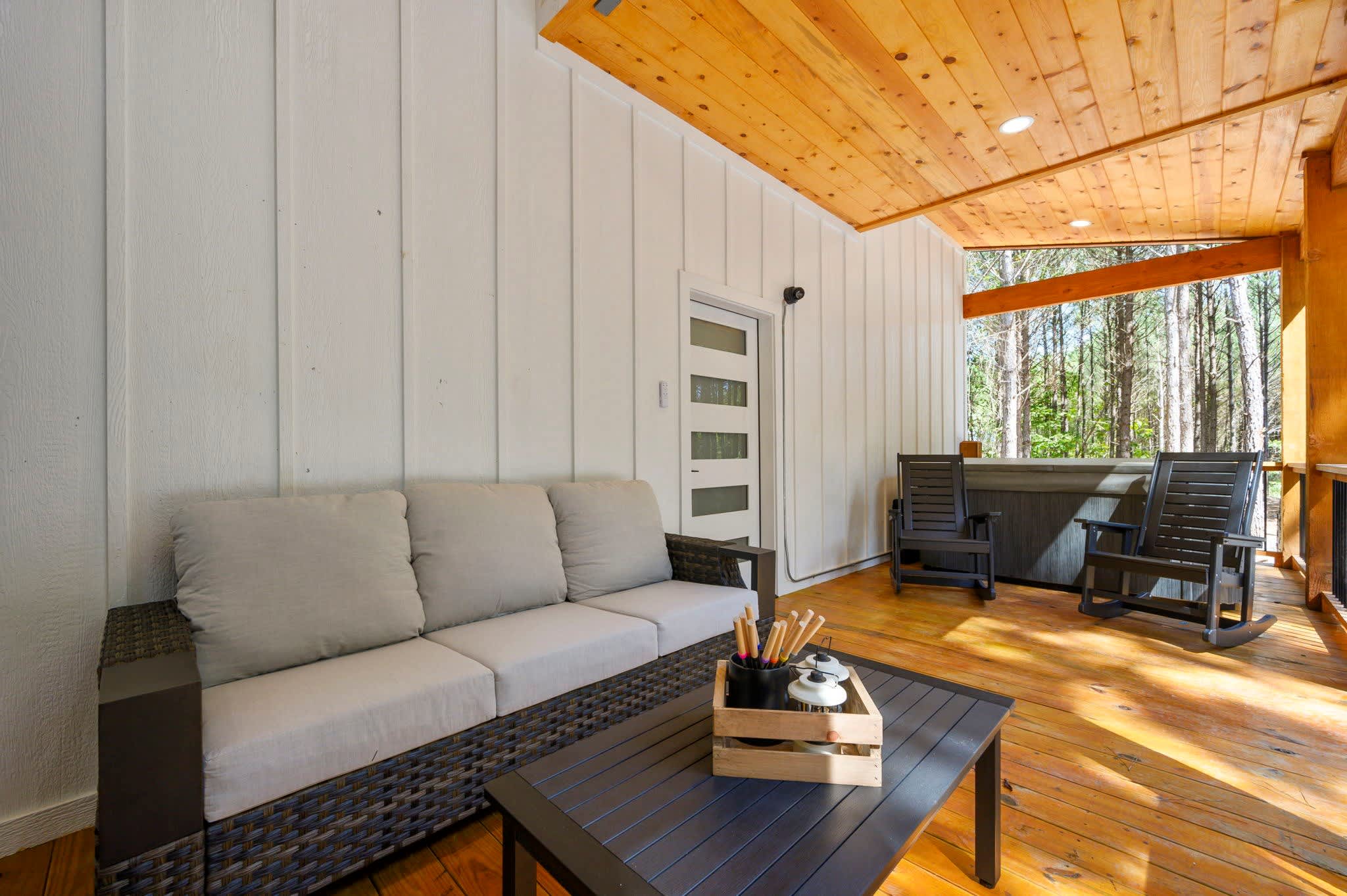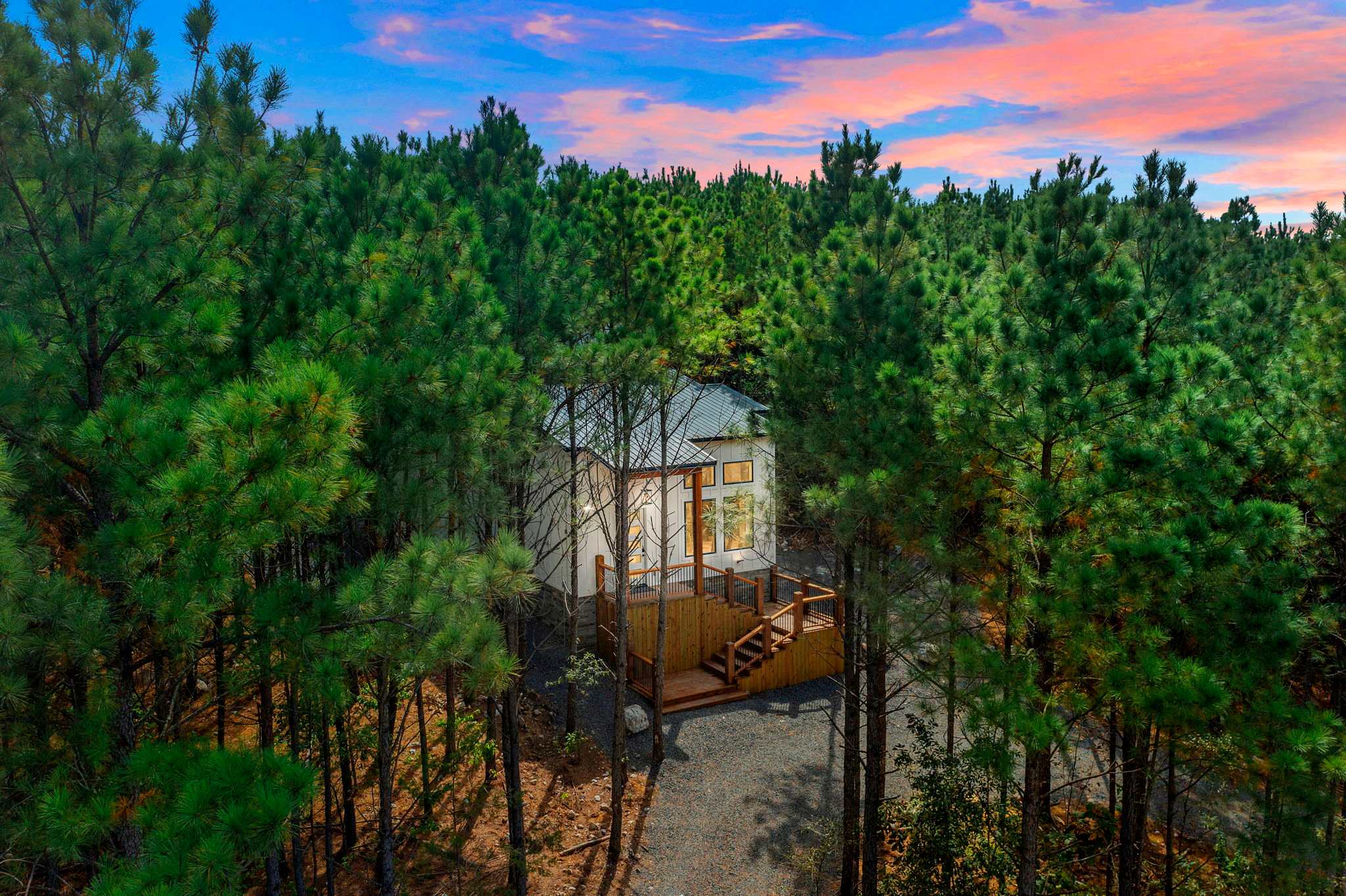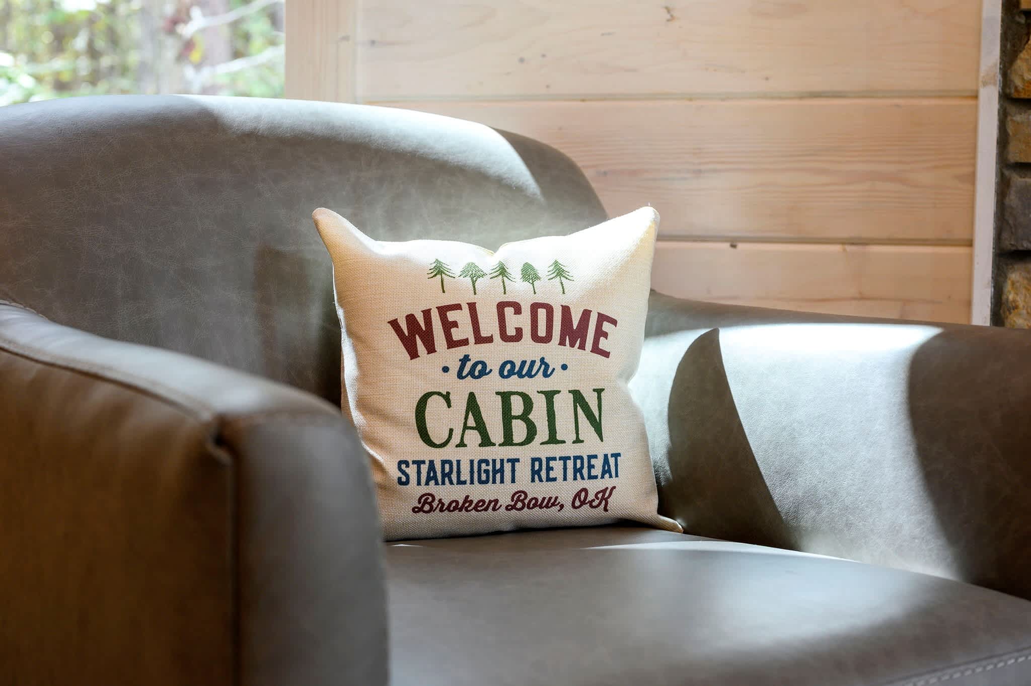 Nestled in the serene forests of Broken Bow, Oklahoma, the Starlight Retreat offers a peaceful escape in one of the area’s newest, most secluded developments. Surrounded by towering pines, this cabin places you close to the beauty of Beavers Bend State Park and Broken Bow Lake, where hiking, fishing, boating, and outdoor adventures await. After exploring local wineries, breweries, and restaurants just a short drive away, you’ll love returning to your private hideaway.